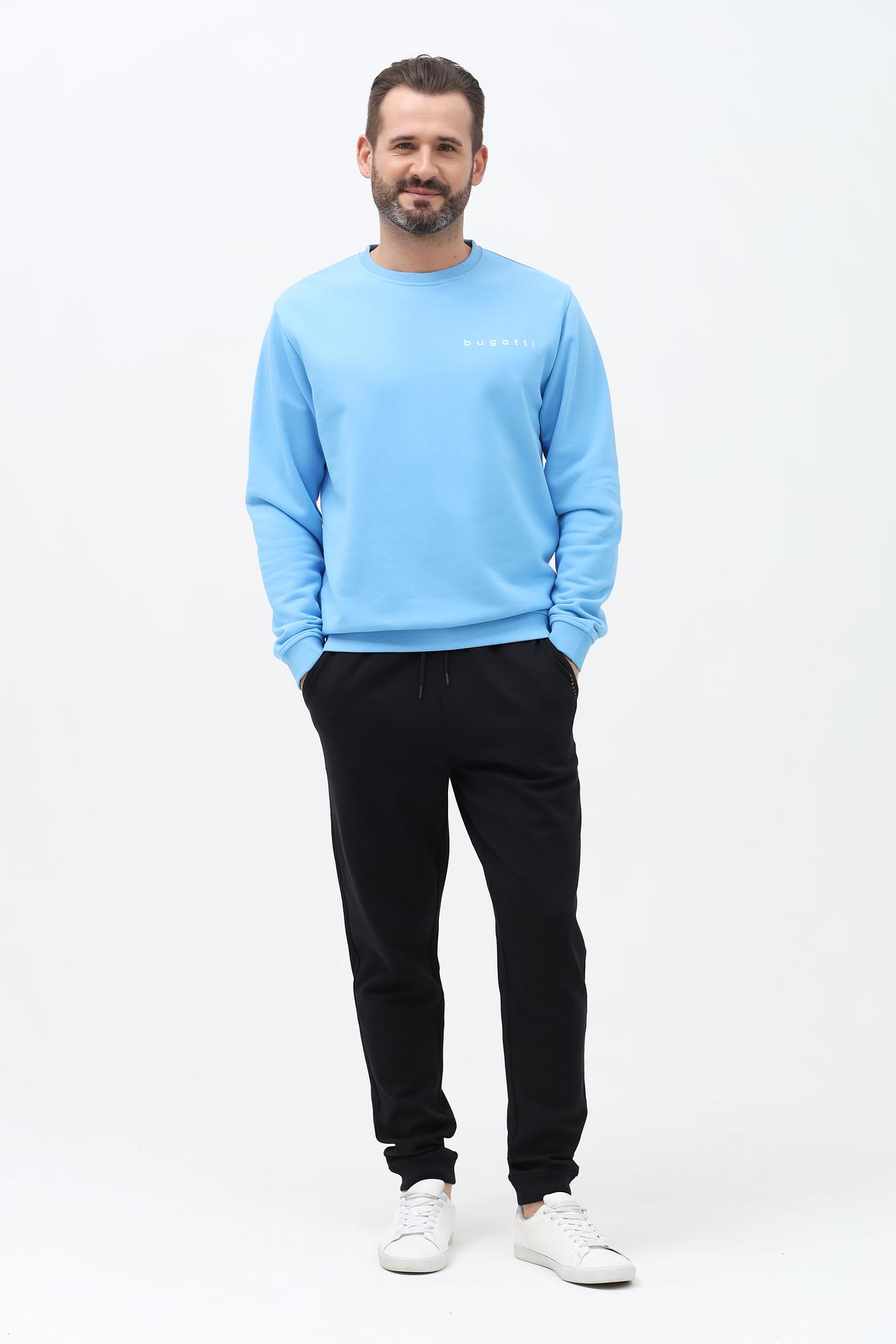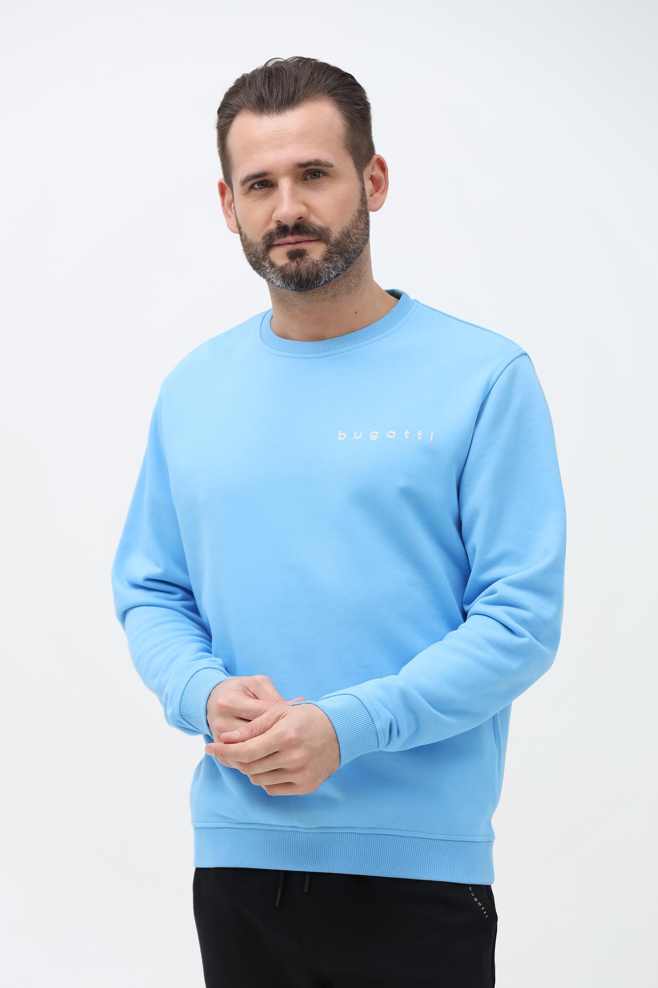 - Классический дизайн: Свитшот выполнен в актуальном голубом цвете с минималистичным логотипом Bugatti на груди, что придает изделию узнаваемость и элегантность. Универсальный крой с круглым вырезом горловины и эластичными манжетами обеспечивает идеальную посадку.