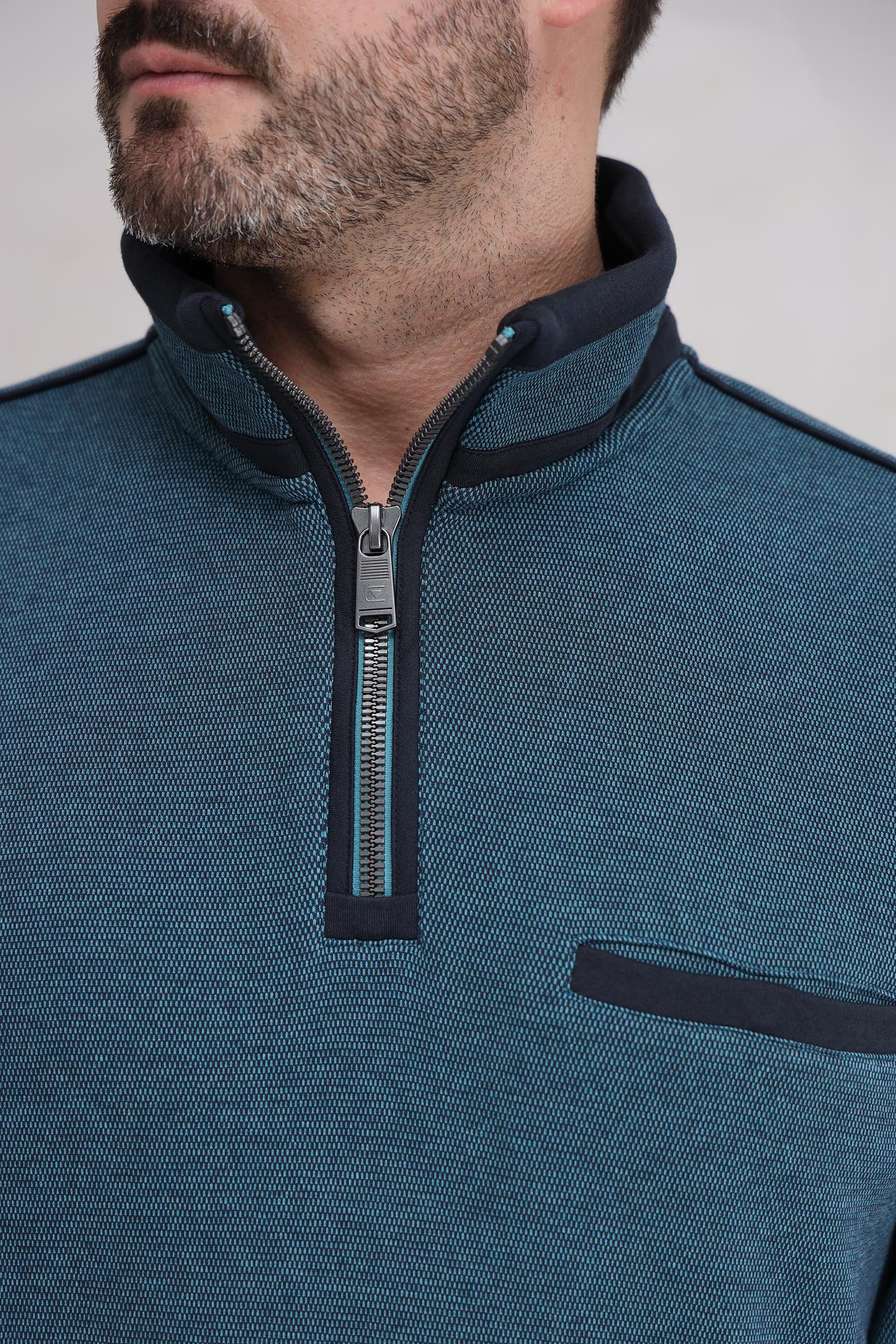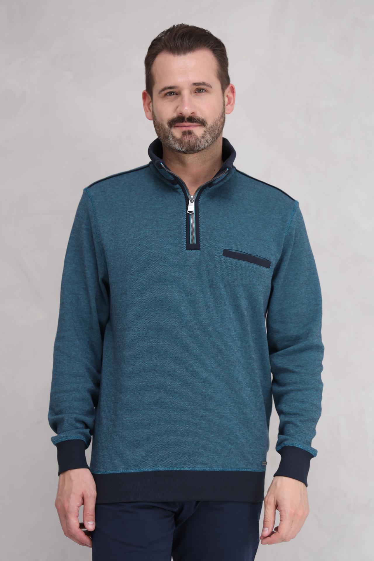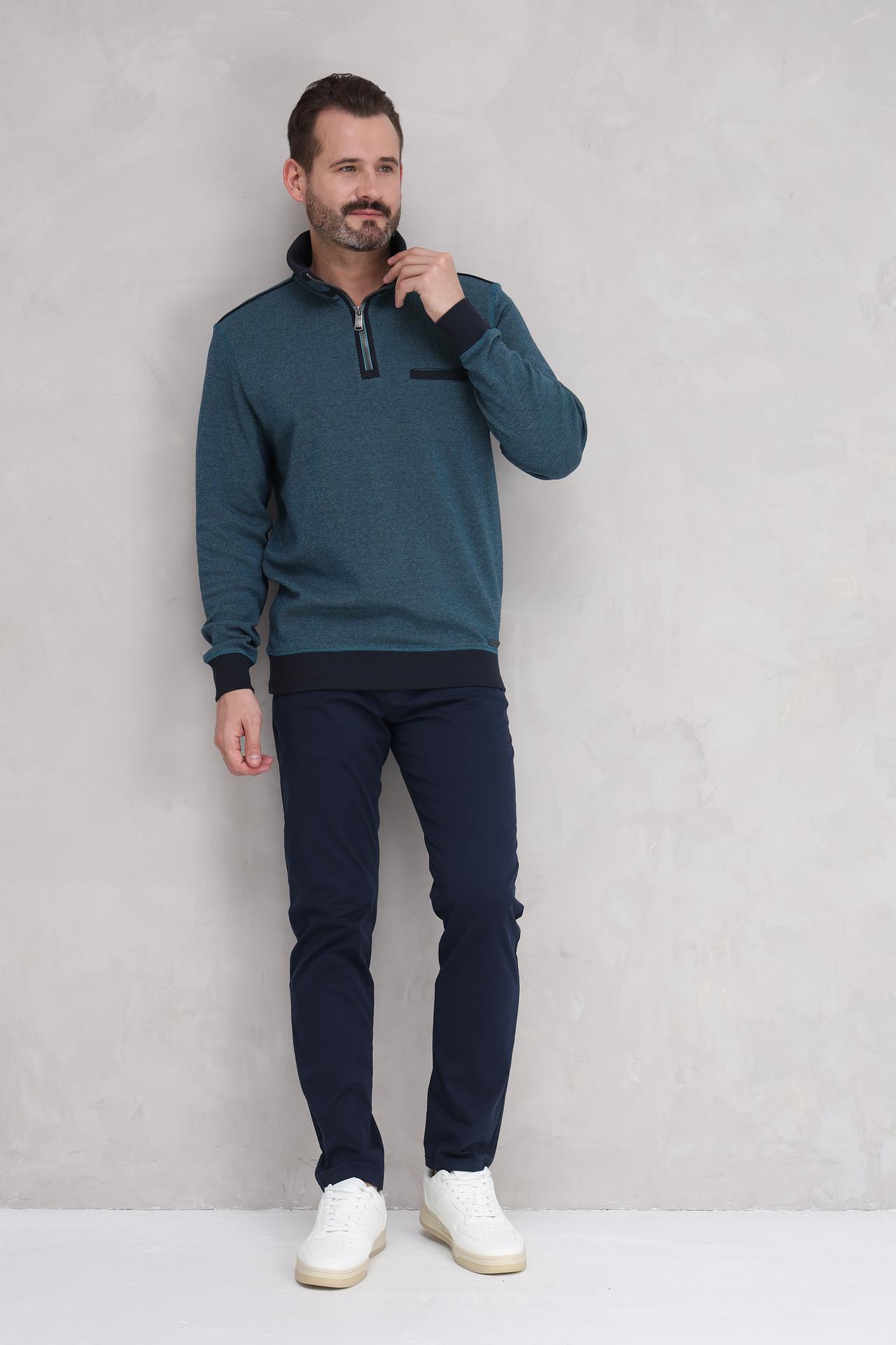 Мужской джемпер Casa Moda темно-бирюзовый с молнией и контрастными деталями