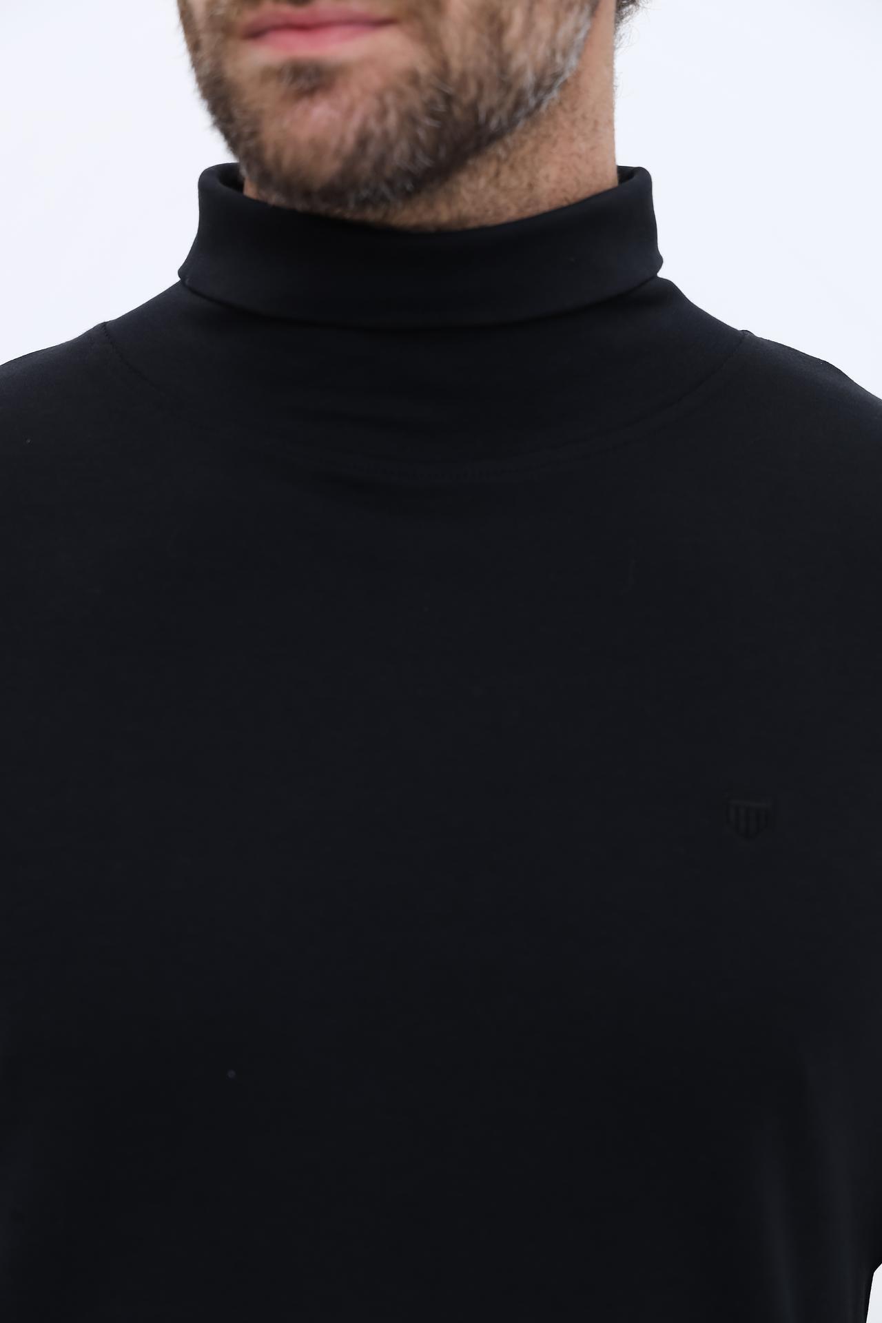Классический крой и минималистичный дизайн делают эту водолазку универсальной, подходящей как для повседневной носки, так и для создания более официальных ансамблей. Глубокий чёрный цвет и аккуратный логотип бренда на груди придают изделию элегантность.