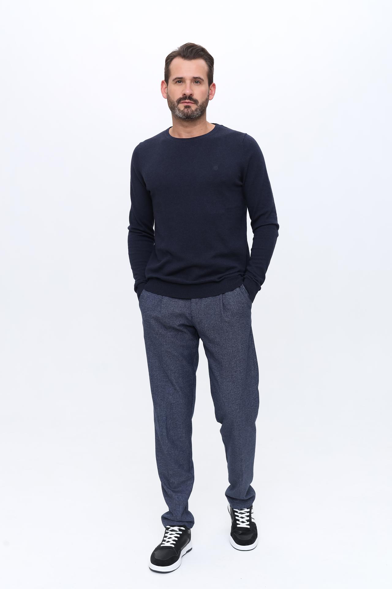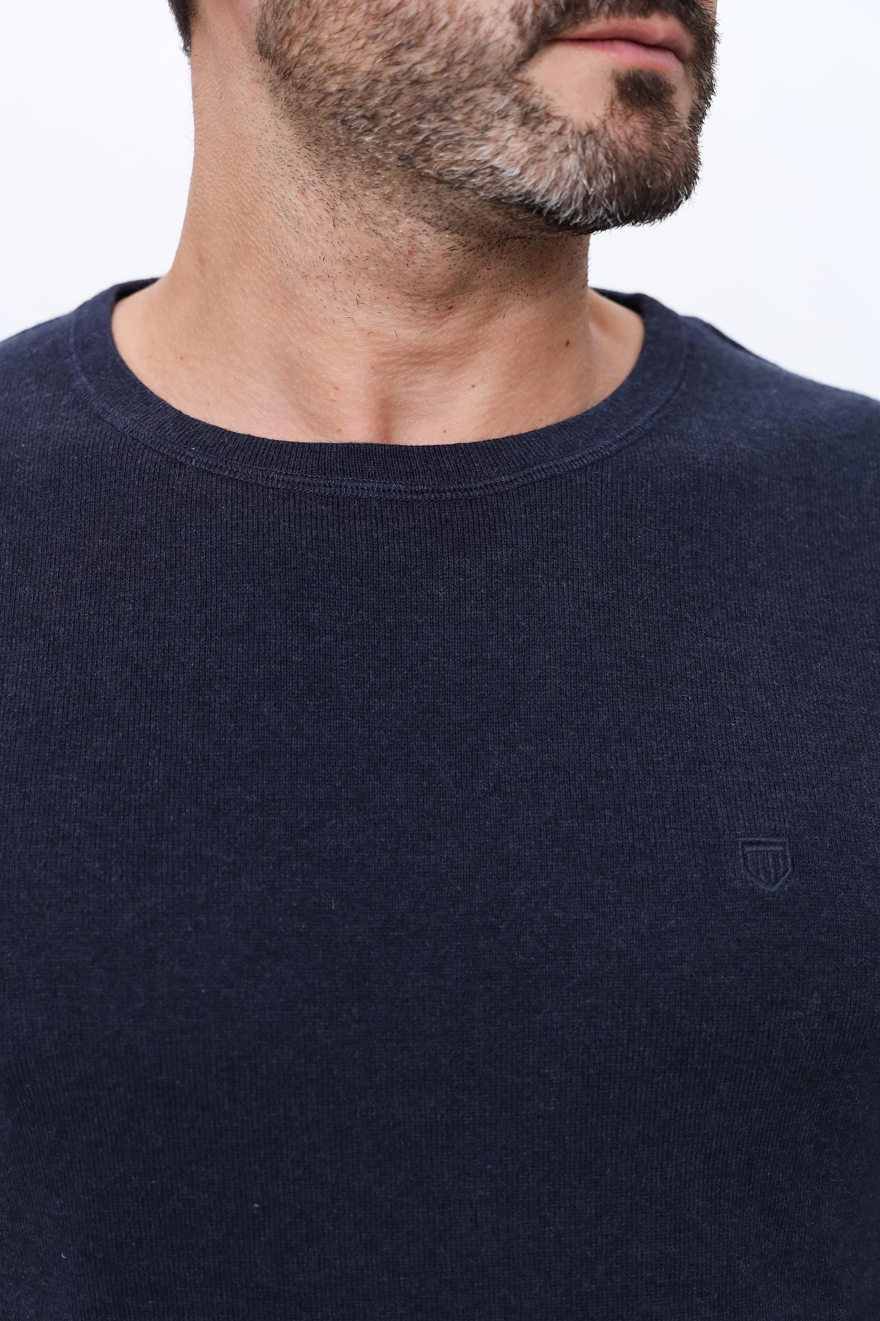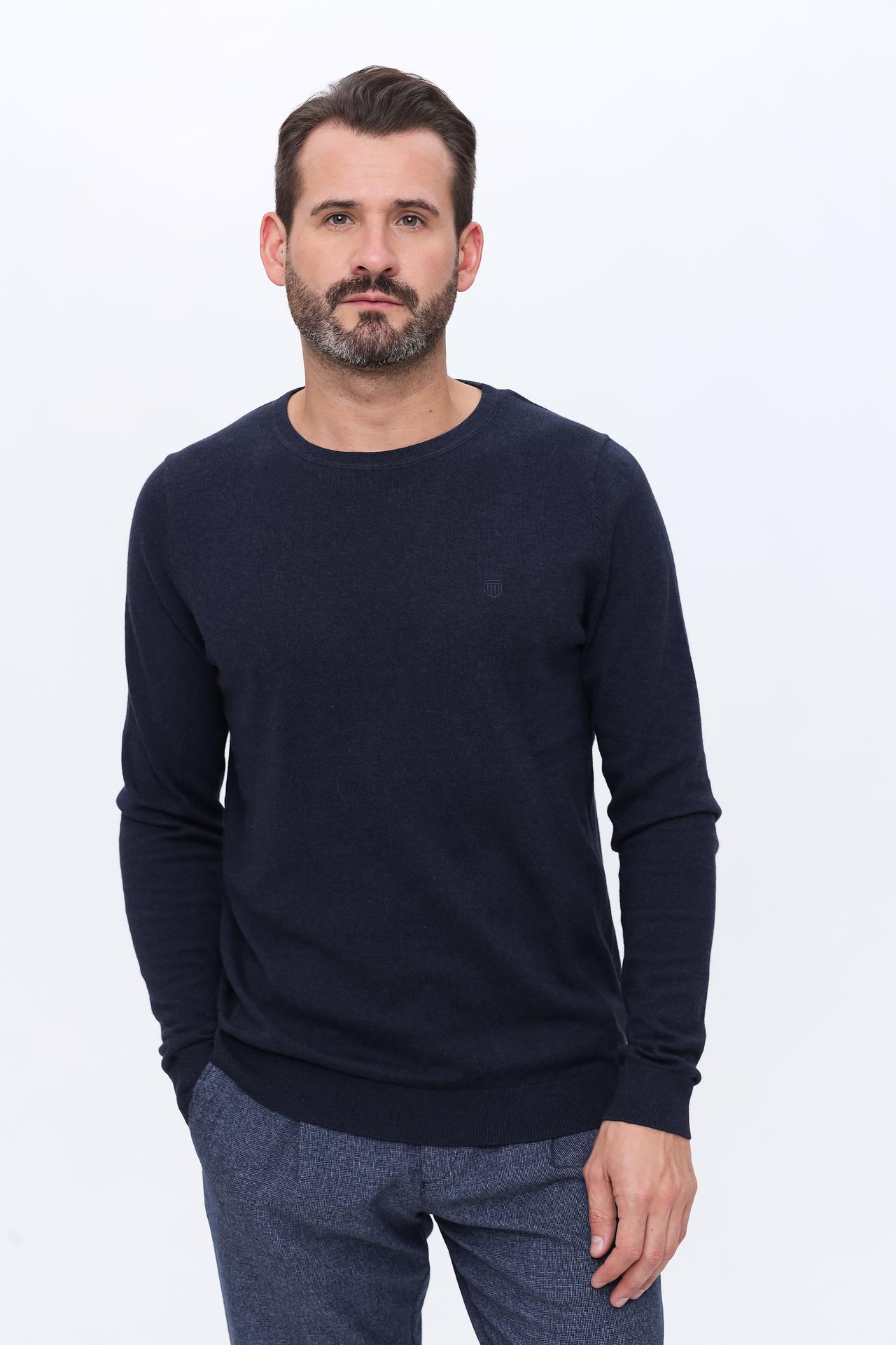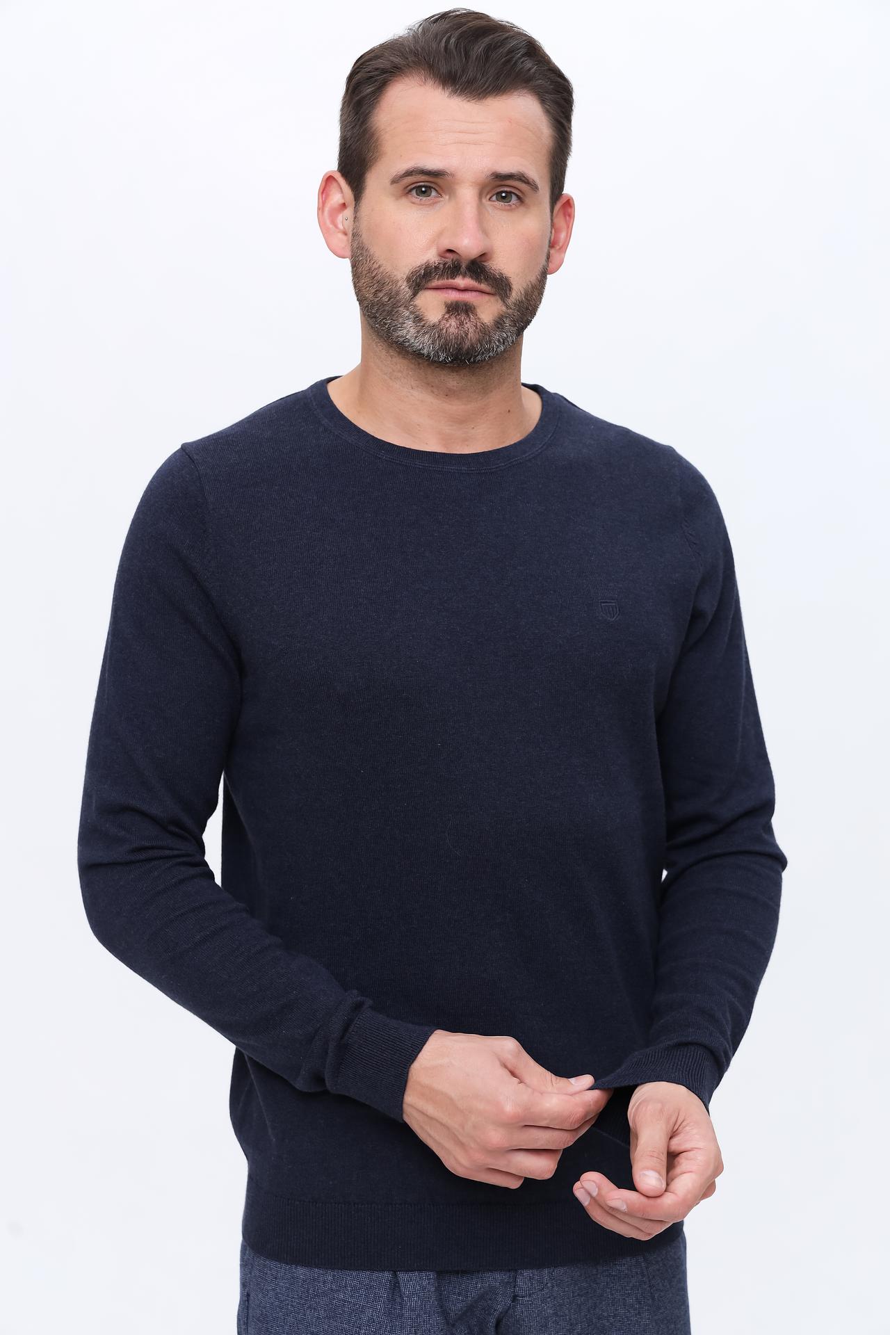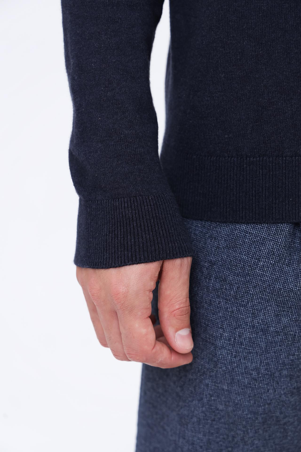 Классический темно-синий цвет легко сочетается с различными предметами одежды, а лаконичный дизайн с небольшим логотипом бренда добавляет изысканности. Этот пуловер подойдет для мужчин, ценящих качество и удобство.