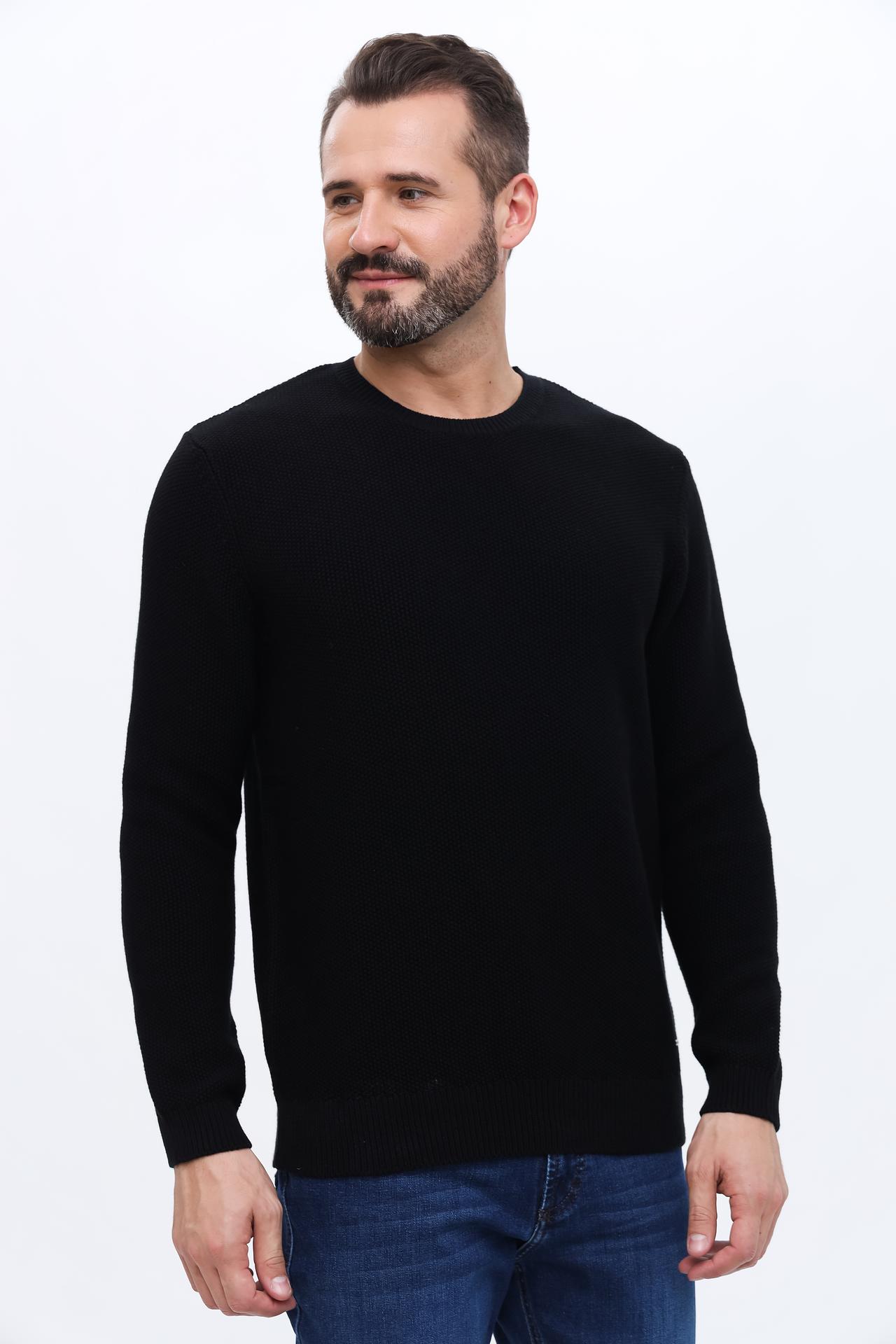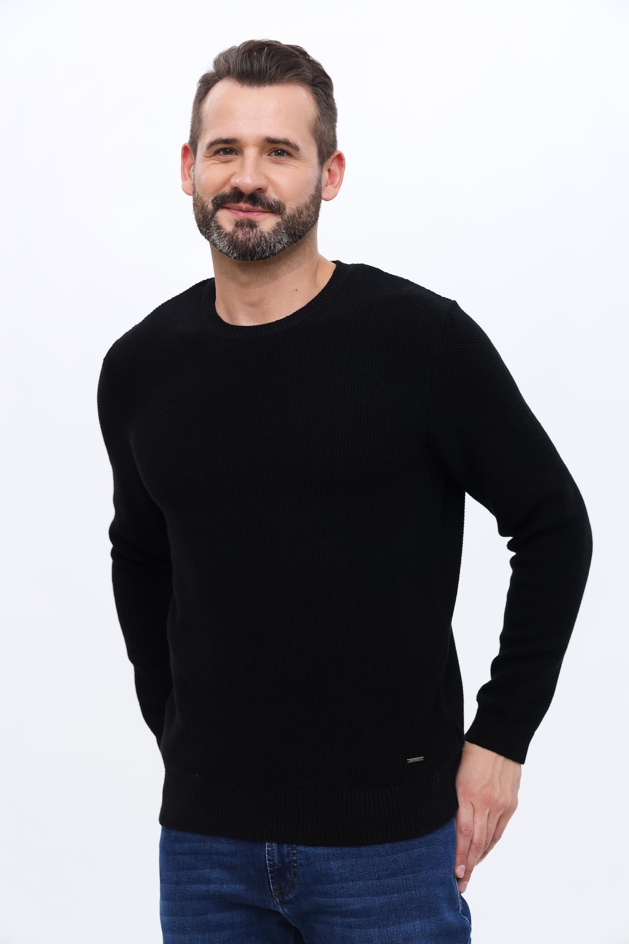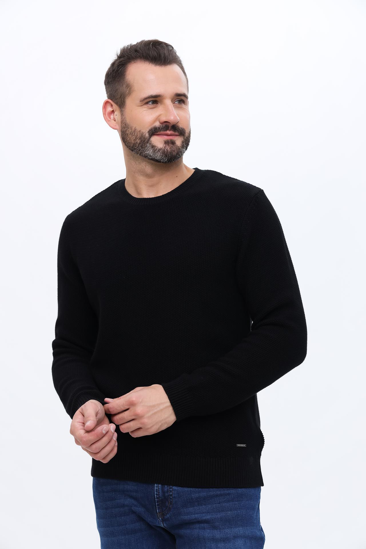 - Универсальный дизайн: Классический чёрный цвет и минималистичный круглый вырез делают этот пуловер незаменимым элементом классического мужского гардероба, легко сочетающимся с различными стилями от повседневного до полуофициального.