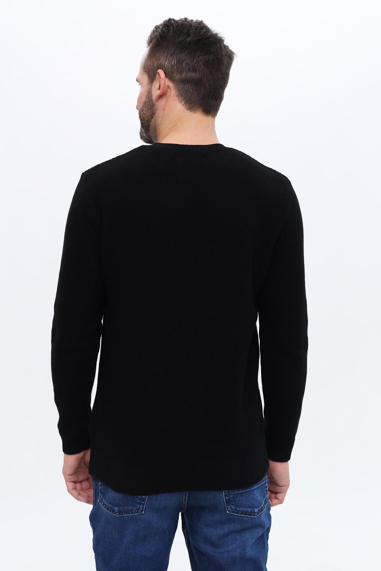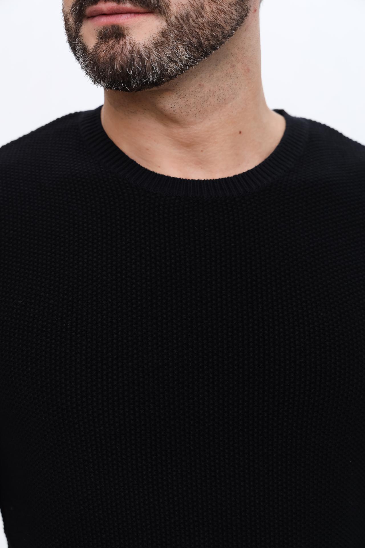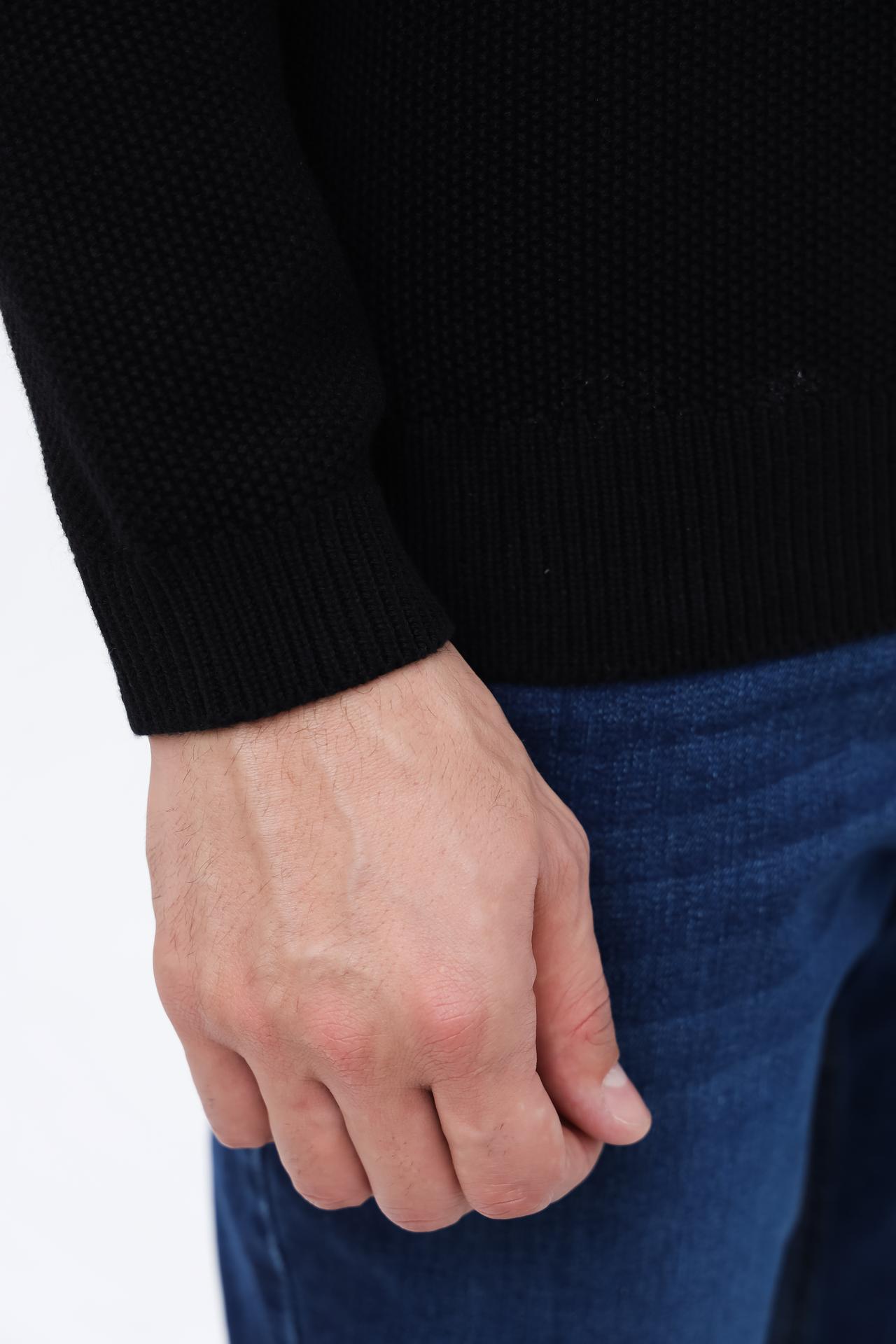 - Универсальный дизайн: Классический чёрный цвет и минималистичный круглый вырез делают этот пуловер незаменимым элементом классического мужского гардероба, легко сочетающимся с различными стилями от повседневного до полуофициального.