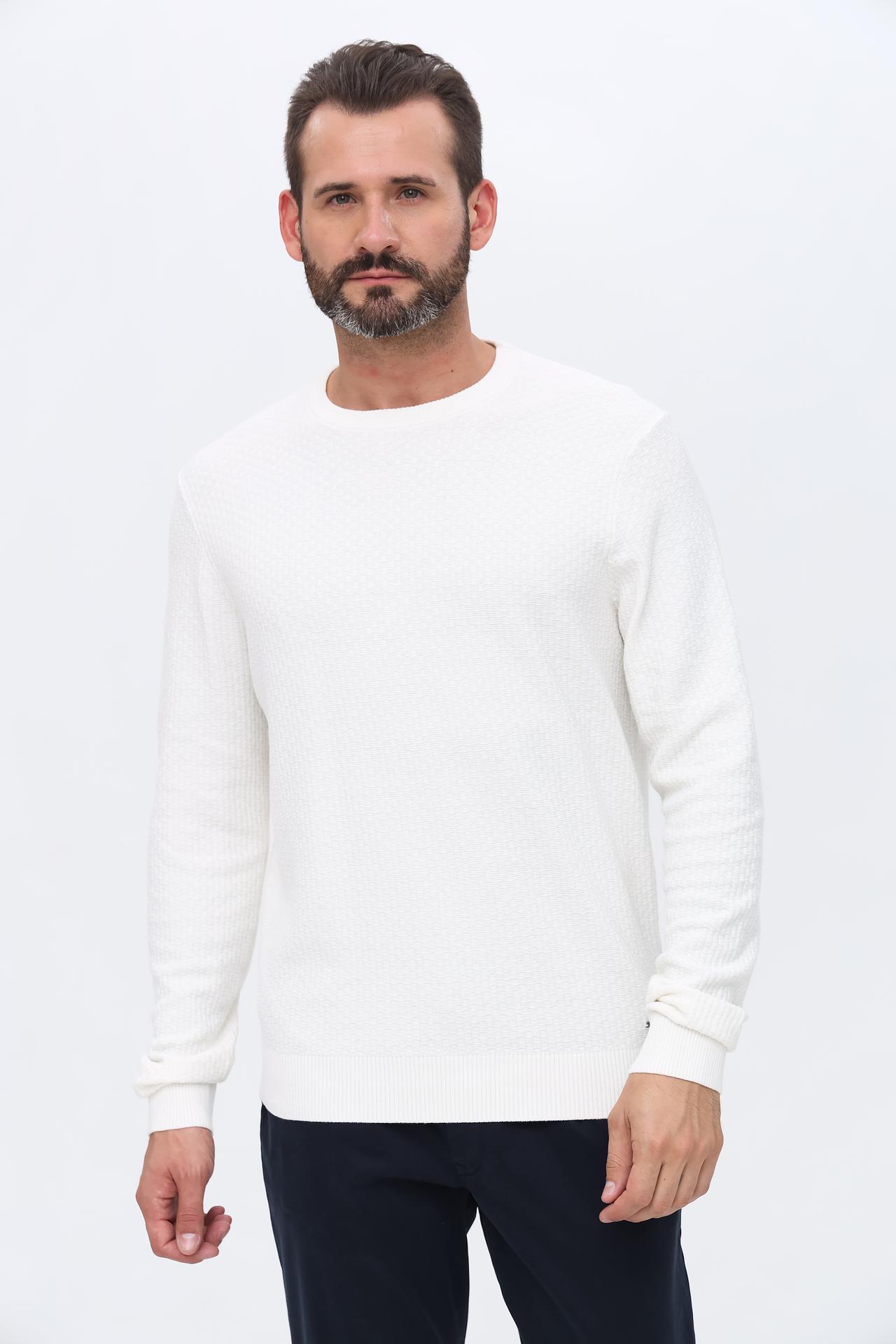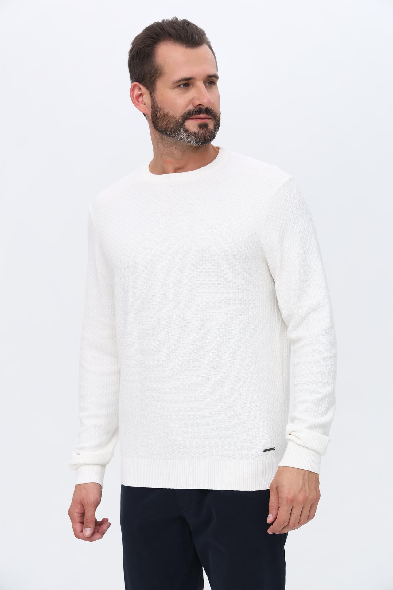 Джемпер Bugatti мужской белый фактурный хлопок с кашемиром