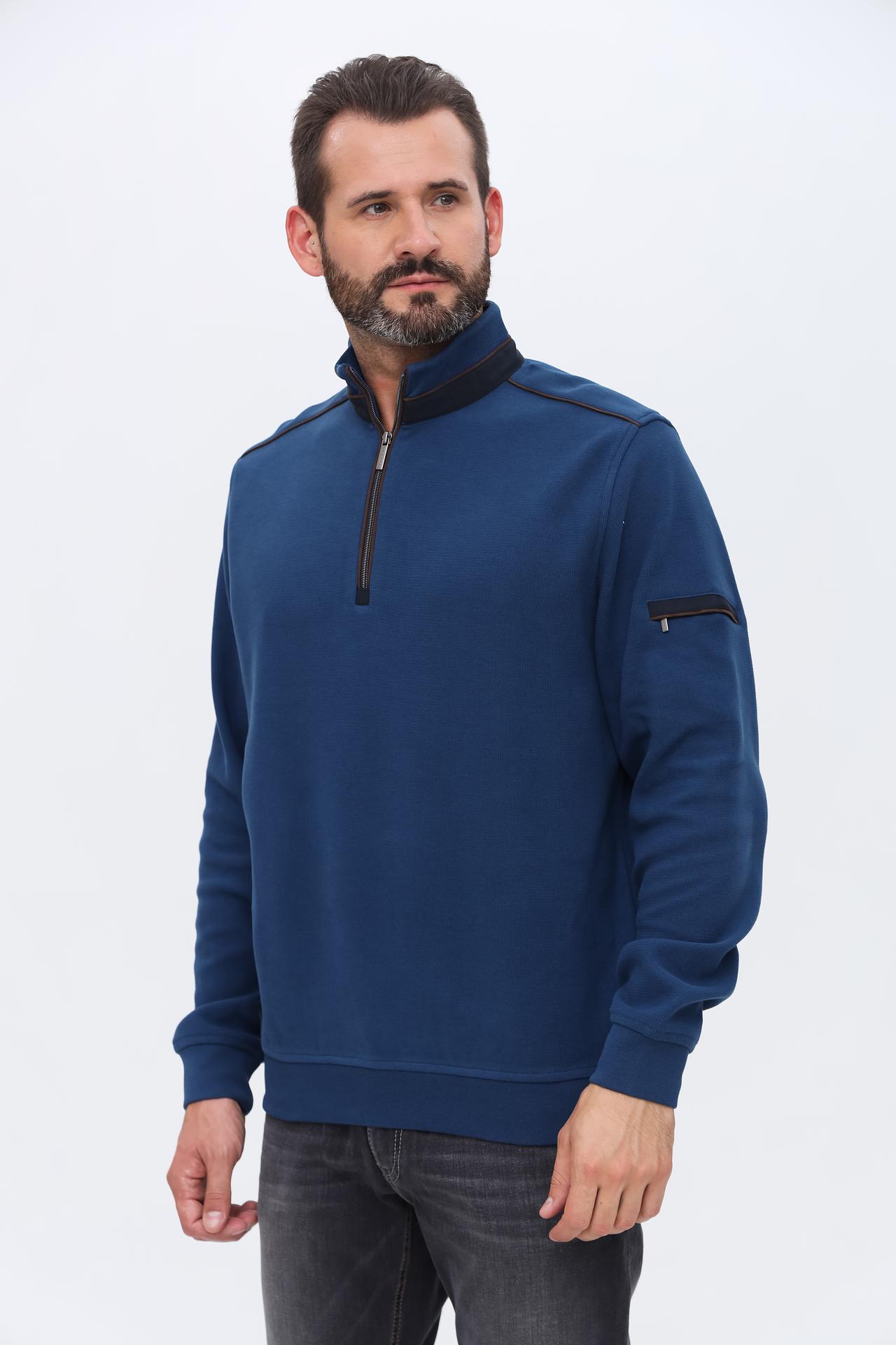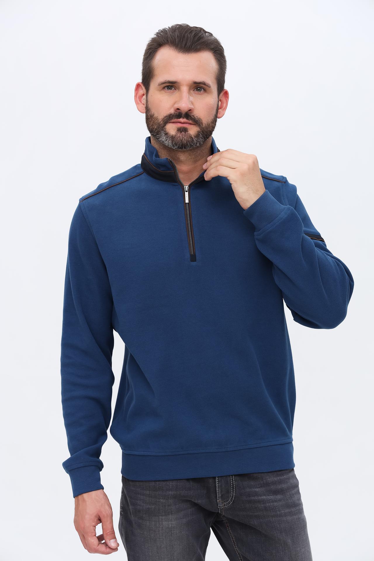 Джемпер Bugatti синего цвета с контрастной отделкой