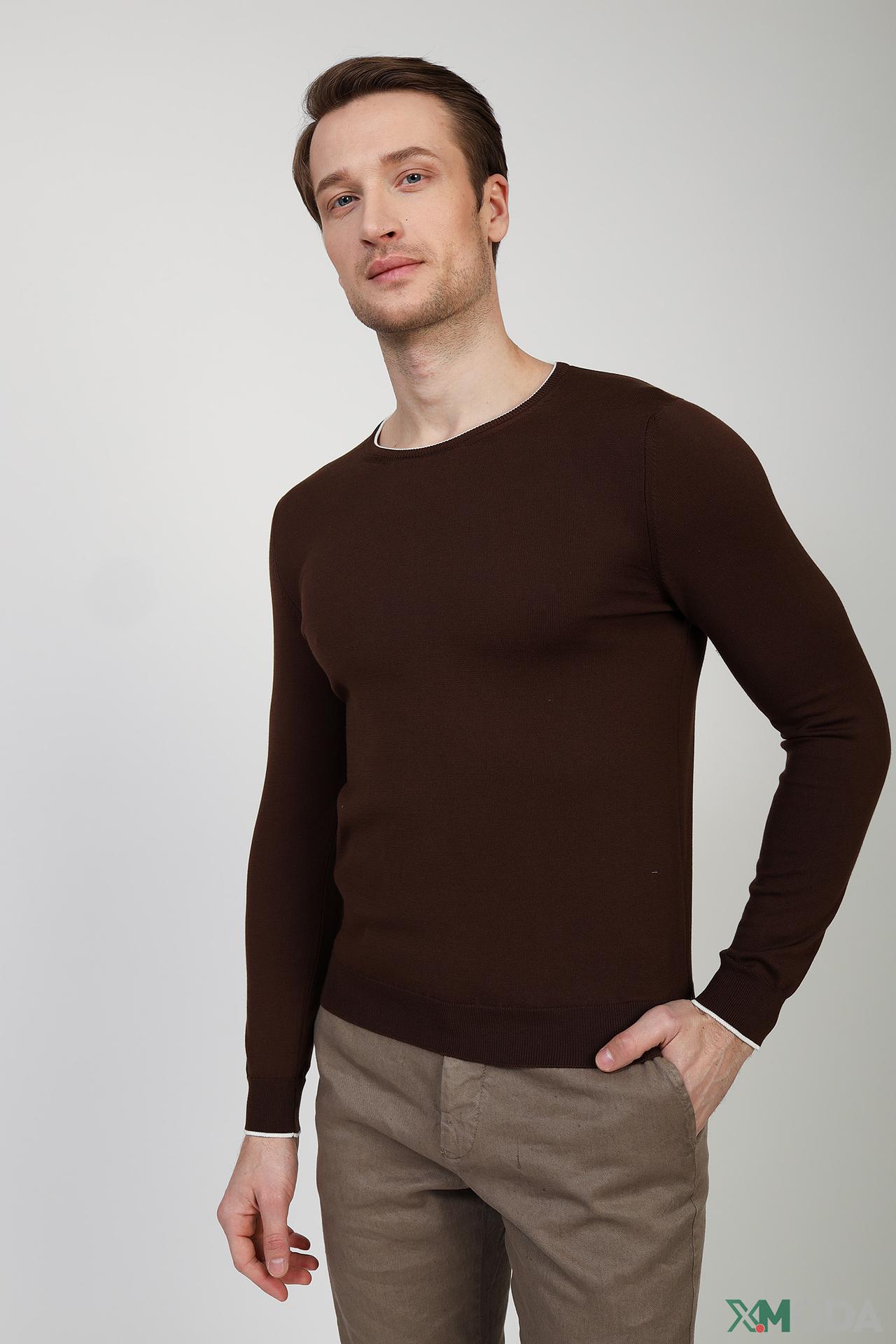 Мужской пуловер Radi Perugia коричневый с белой отделкой