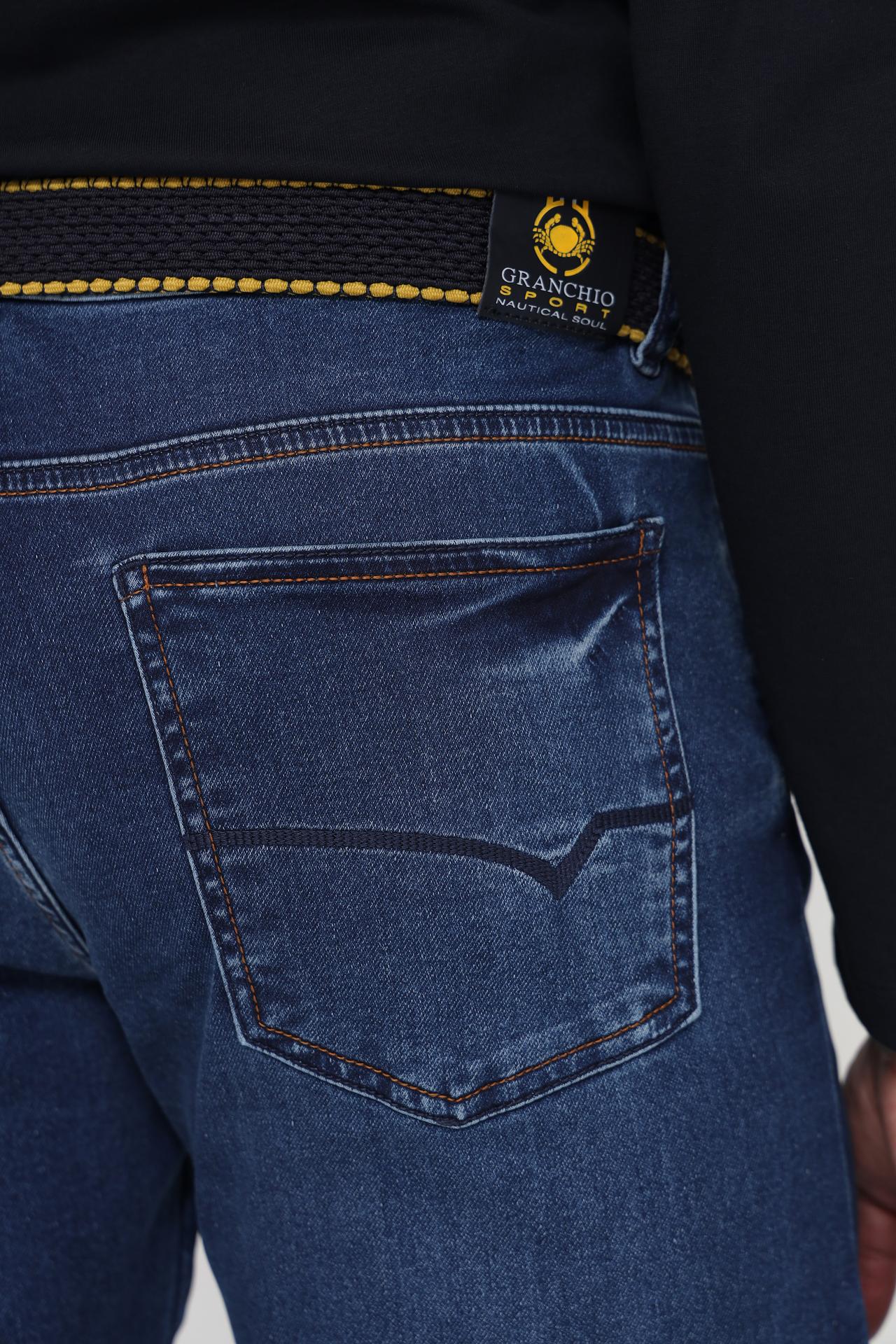 Мужские джинсы Granchio в классическом синем цвете. Изготовлены из высококачественного денима, состоящего из 87% хлопка, 11% полиэстера и 2% эластана. Модель обеспечивает комфортную посадку и оптимальную свободу движений благодаря эластичному материалу.