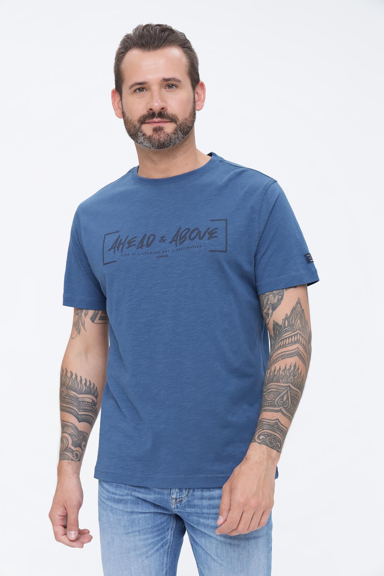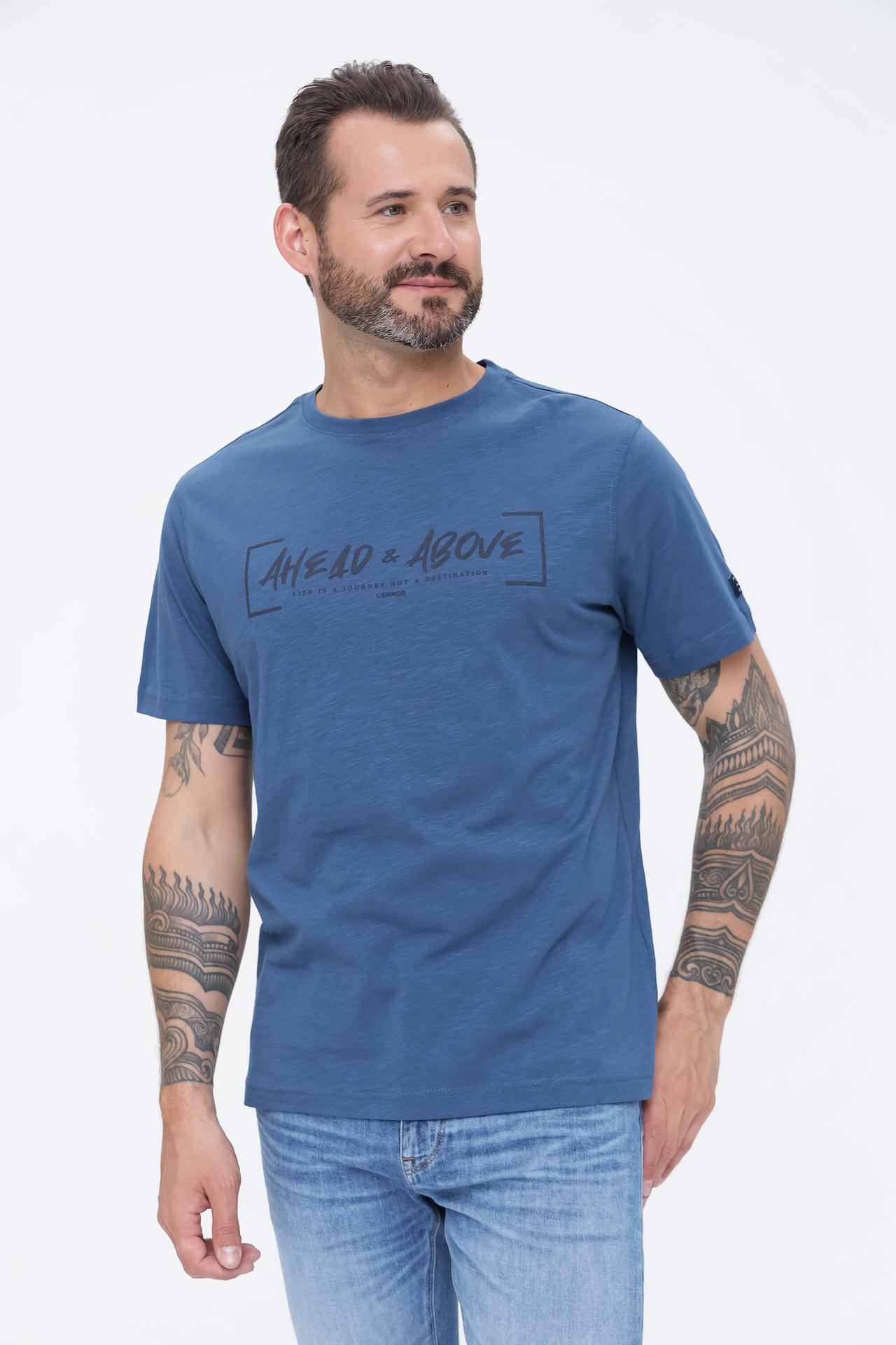 Стильная мужская футболка синего цвета с оригинальным принтом – отличный выбор для создания непринужденного образа. Эта футболка идеально подойдет для повседневной носки, прогулок или встреч с друзьями. Комфортный крой и качественный материал обеспечат удобство в течение всего дня.