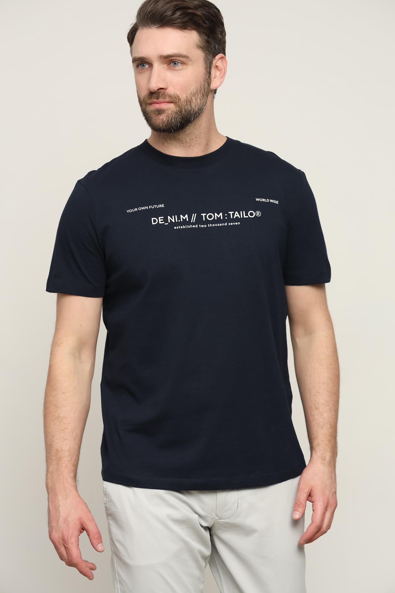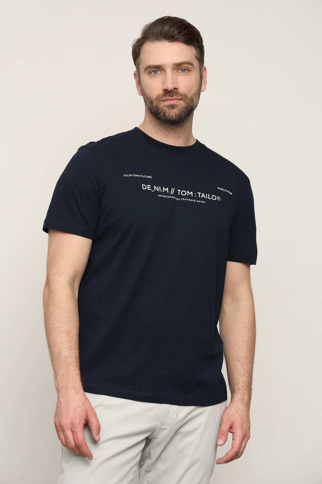 Мужская футболка Tom Tailor синего цвета — это идеальное сочетание стиля и комфорта для вашего повседневного гардероба. Модель прямого кроя с коротким рукавом и круглым вырезом горловины выполнена из натурального 100% хлопка, что обеспечивает приятные тактильные ощущения и позволяет коже дышать в течение всего дня. Лаконичный текстовый принт на груди добавляет образу современный акцент.