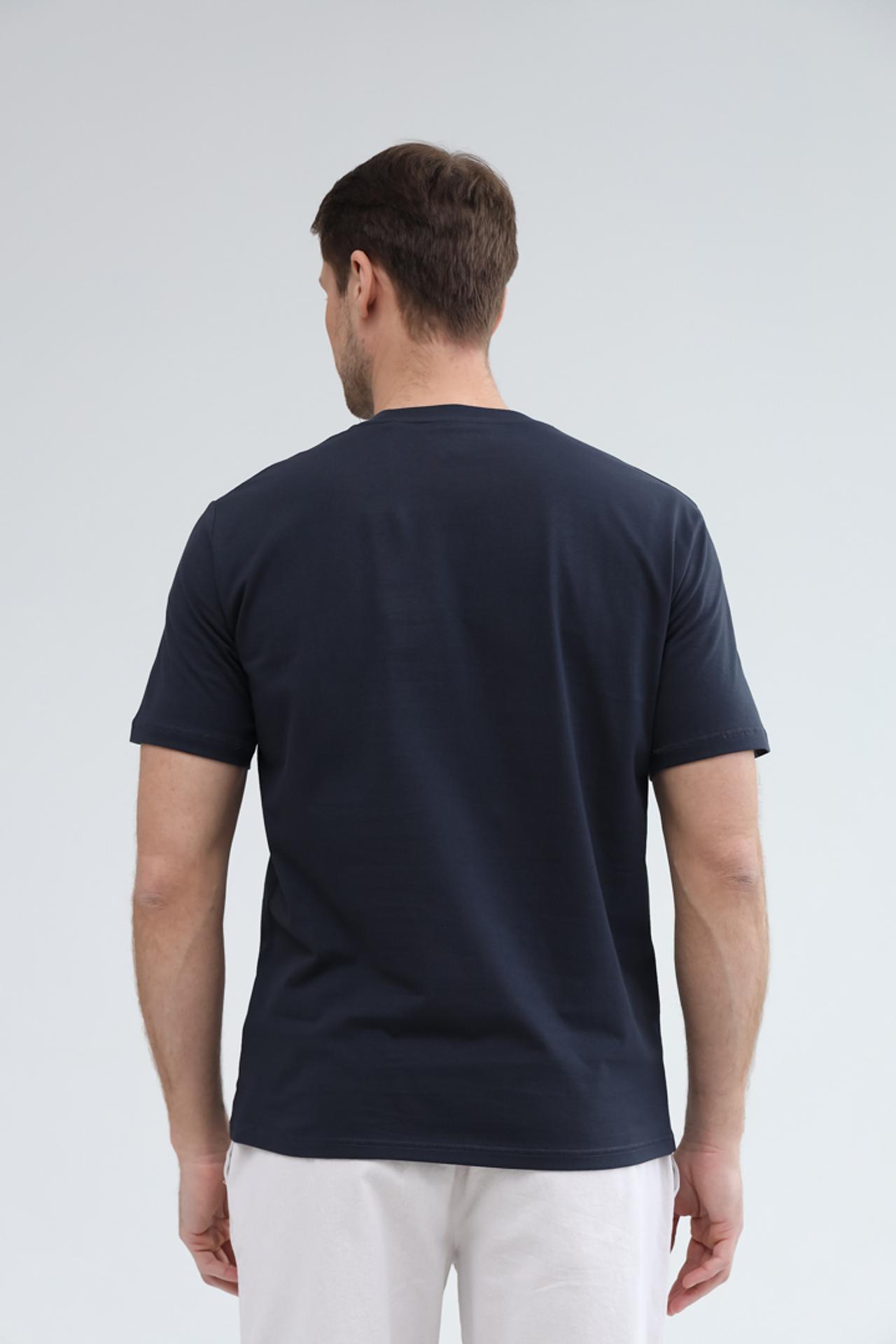 - Универсальный дизайн: Тёмно-синий цвет и классический крой позволяют легко сочетать футболку с любой одеждой.