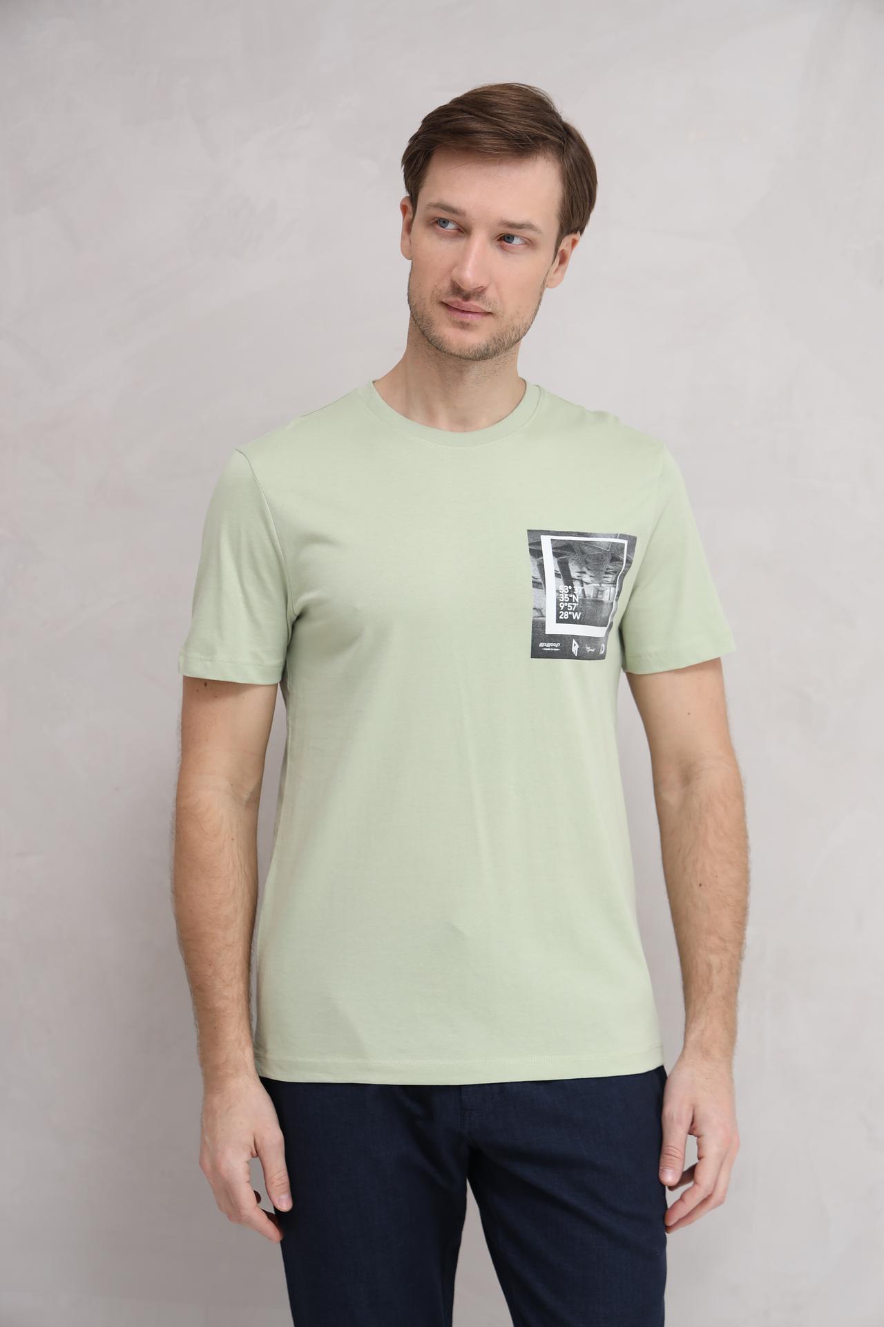 Футболка Tom Tailor мужская, зелёная, с принтом на груди