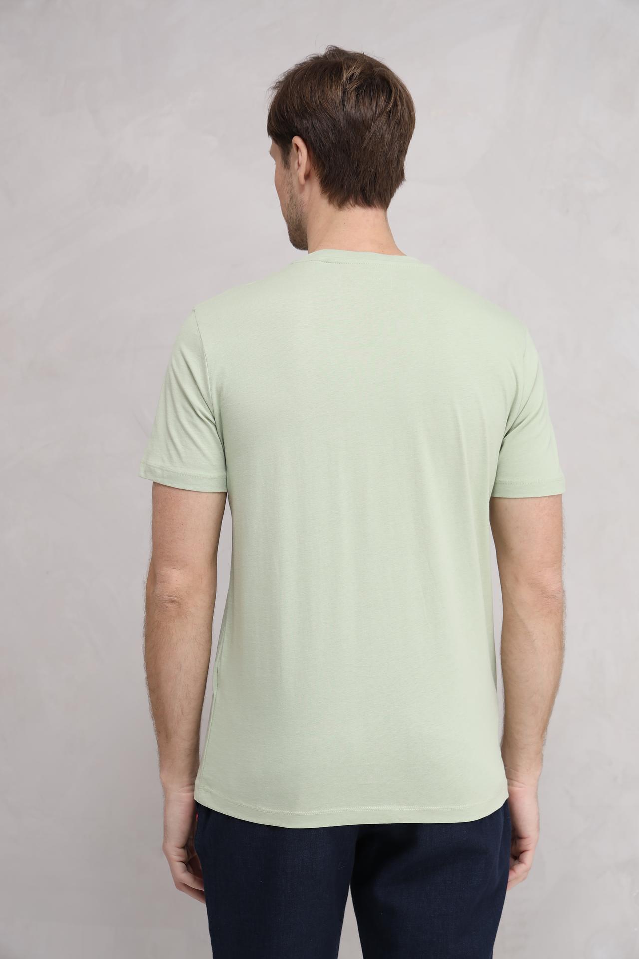 Классическая мужская футболка Tom Tailor, выполненная из высококачественного 100% хлопка, станет незаменимой основой вашего повседневного гардероба. Эта комфортная футболка прямого кроя в освежающем светло-зелёном оттенке идеально подходит для создания стильных и расслабленных образов.