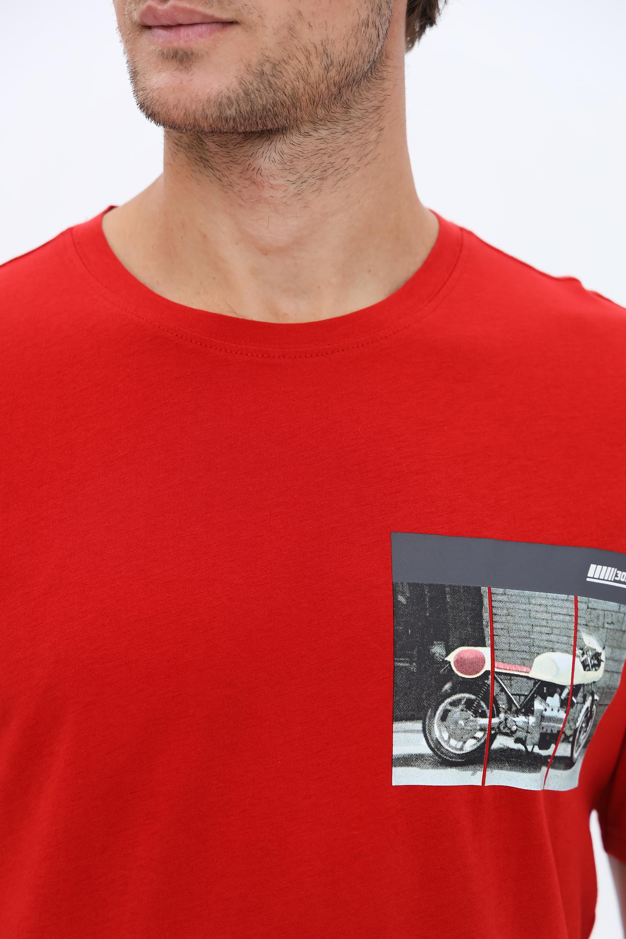 - Цвет. Красный цвет футболки притягивает взгляды и легко сочетается с различной одеждой.