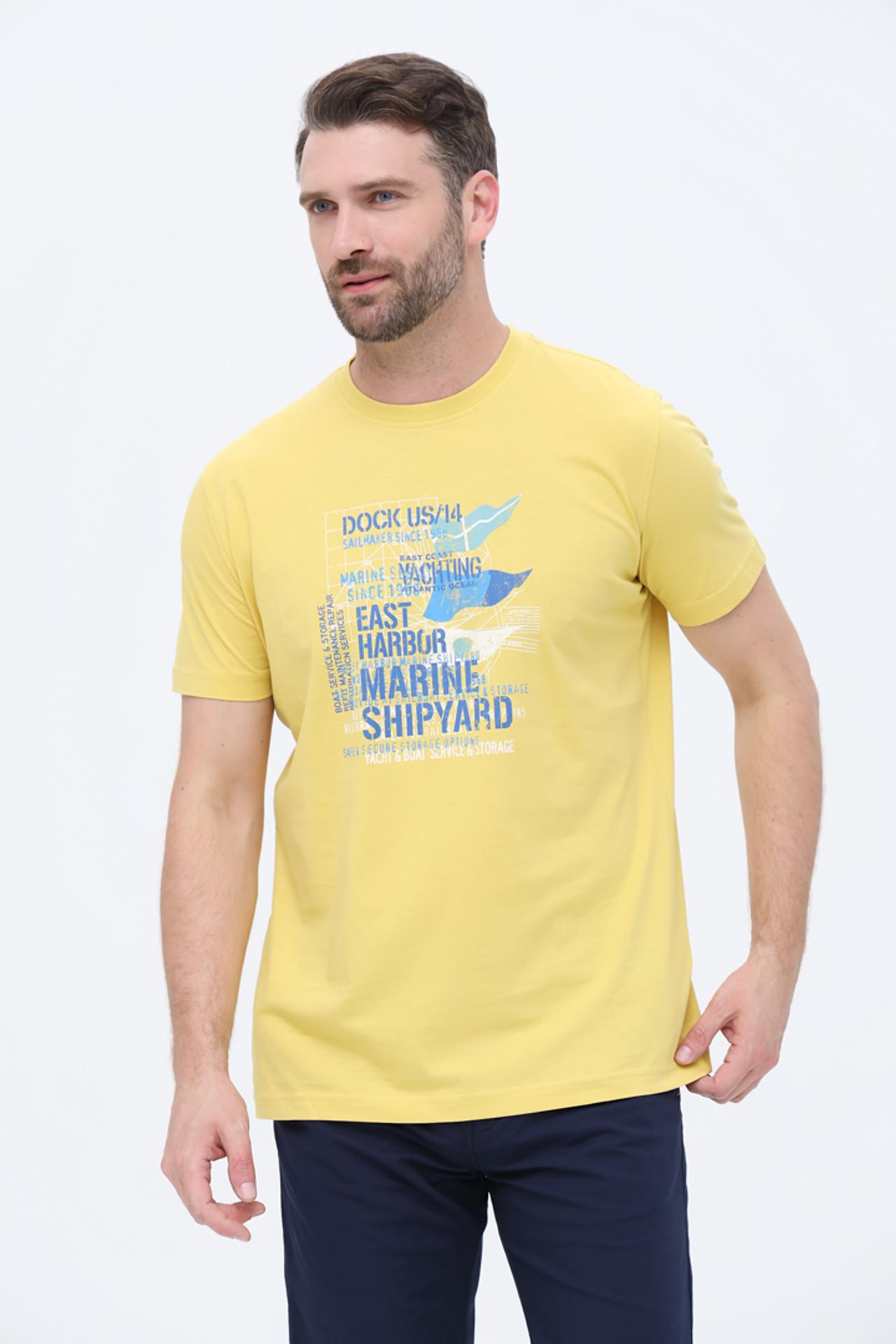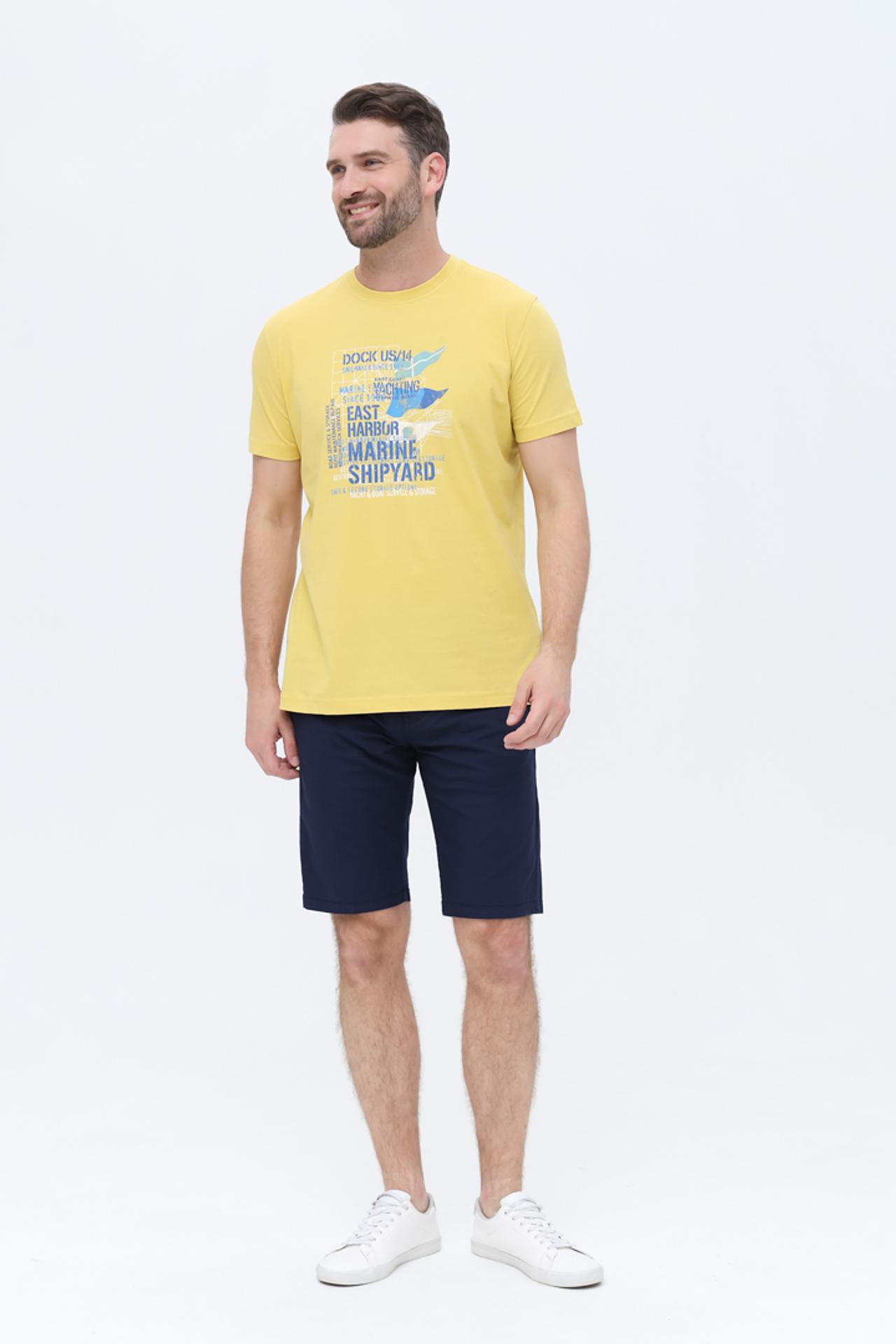 Изделие выделяется ярким графическим принтом на груди в морском стиле, добавляя уникальности и динамичности дизайну. Текст и символы, связанные с морской тематикой, придают футболке особый характер, подчёркивая вашу индивидуальность.