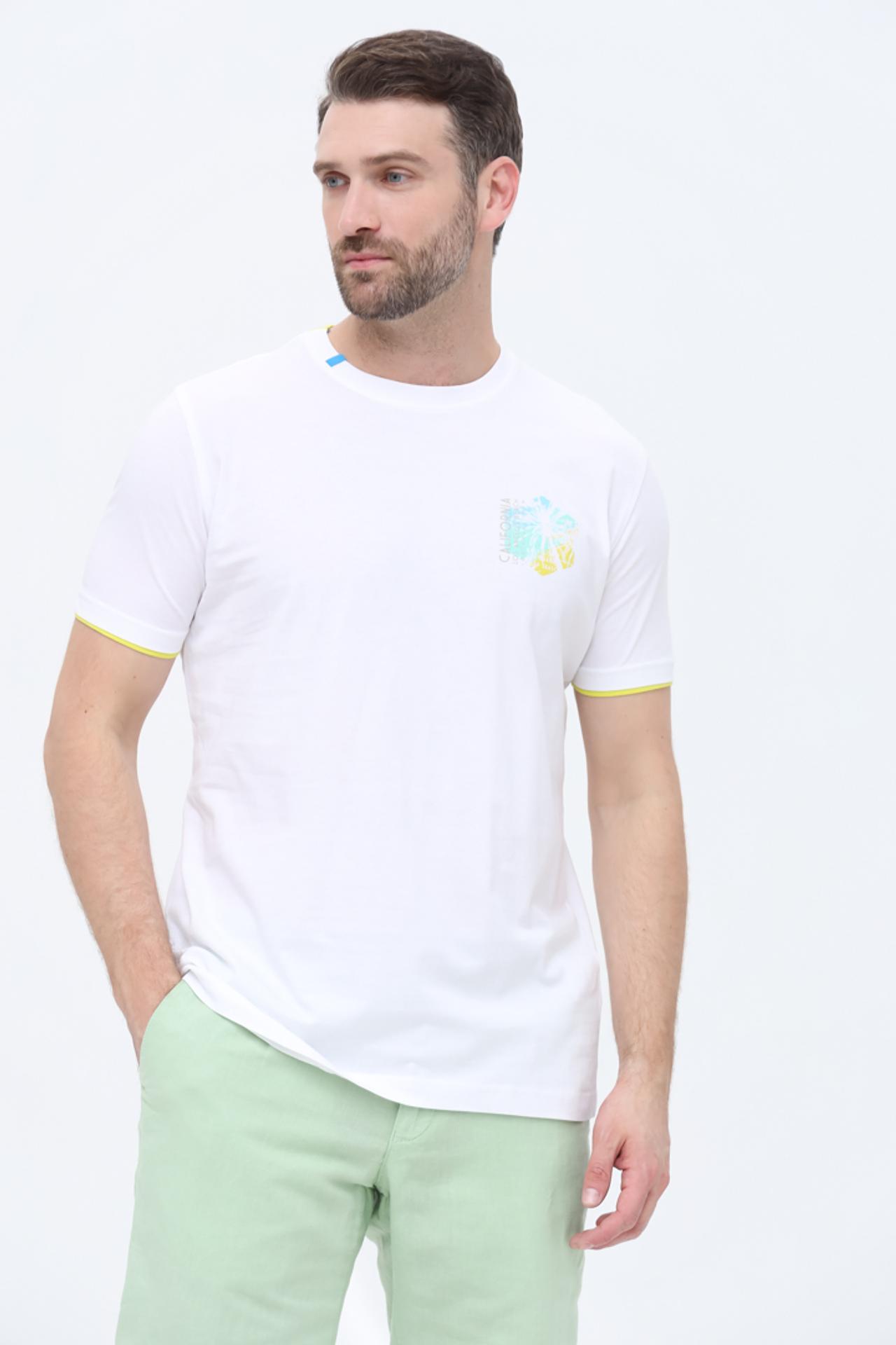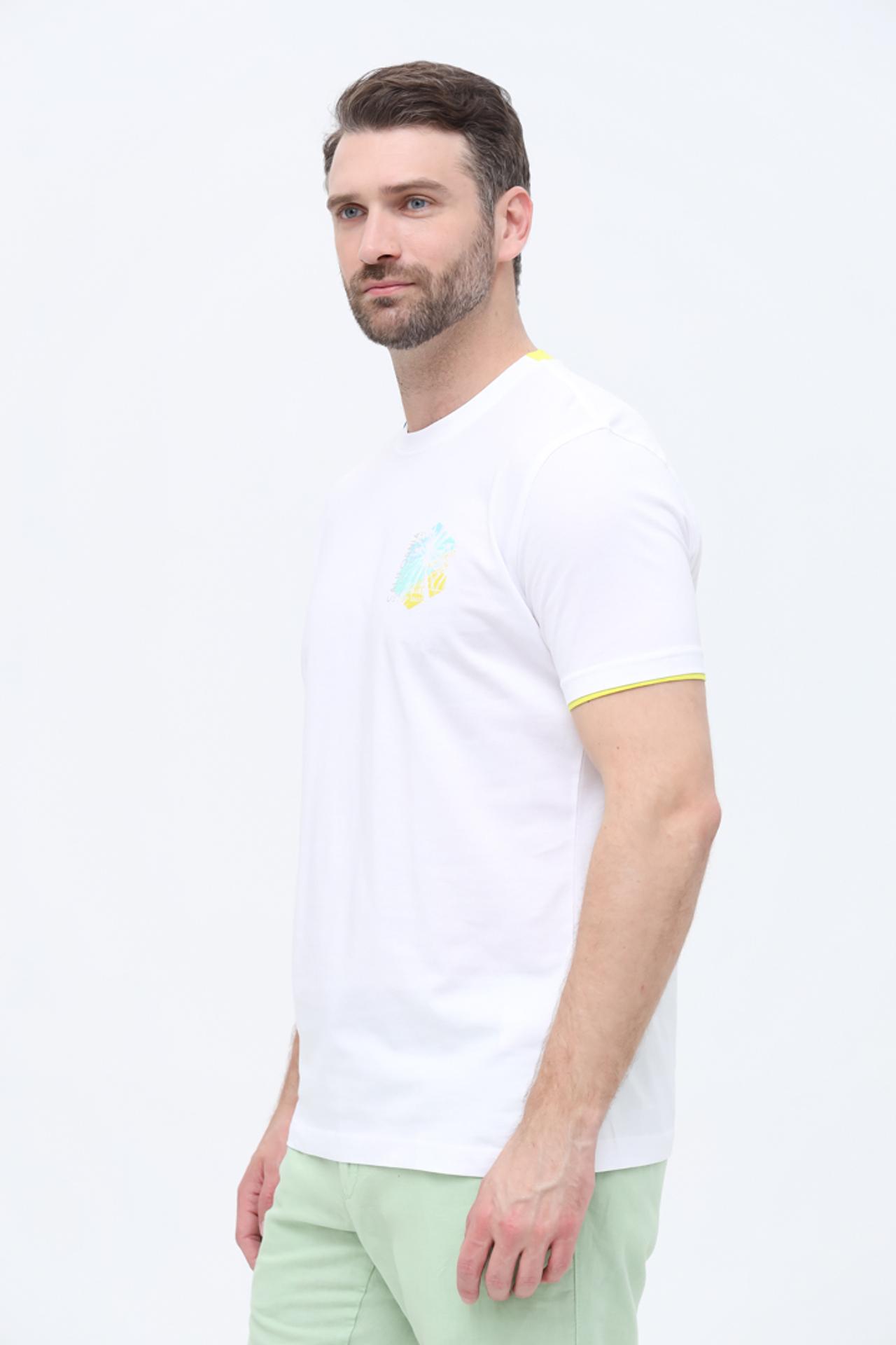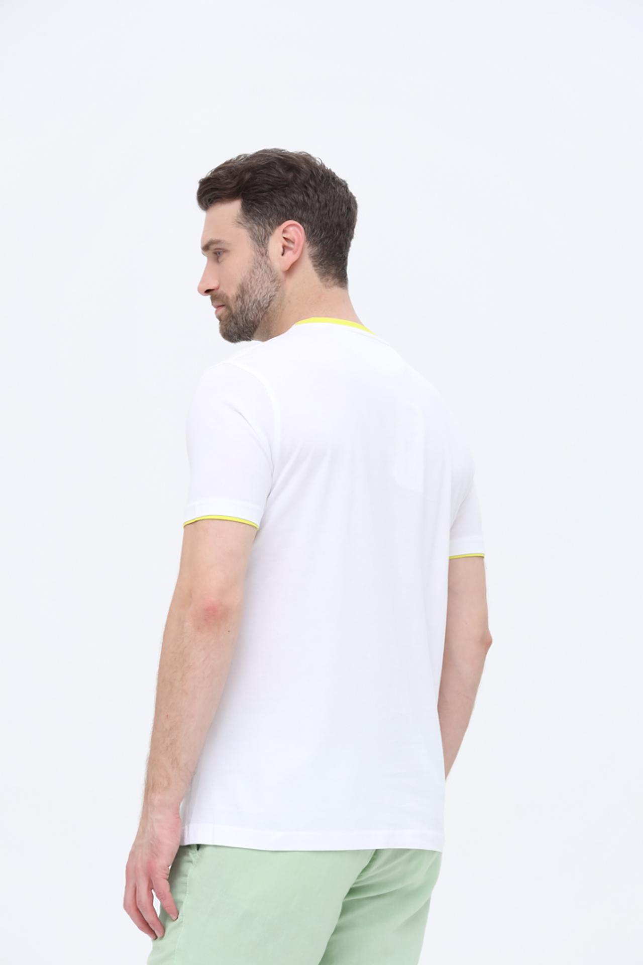 Изготовлена из 100% хлопка, что обеспечивает максимальный комфорт при носке, позволяя коже дышать и оставаясь мягкой на ощупь. Футболка доступна в белом цвете, который легко сочетается с любым низом.