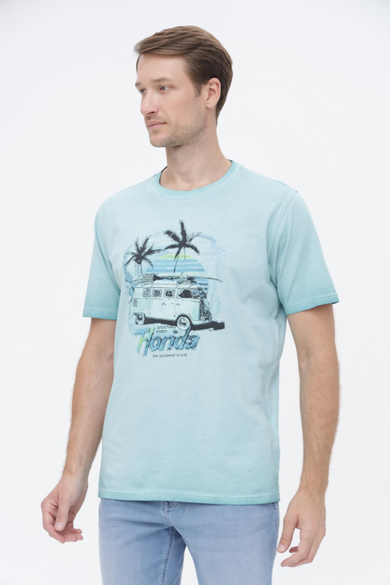 Базовая футболка от Casa Moda, выполненная из 100% хлопка, станет отличным дополнением вашего повседневного гардероба. Модель украшена ярким принтом в стиле ретро с изображением винтажного микроавтобуса и пальм, передающим атмосферу солнечной Флориды.