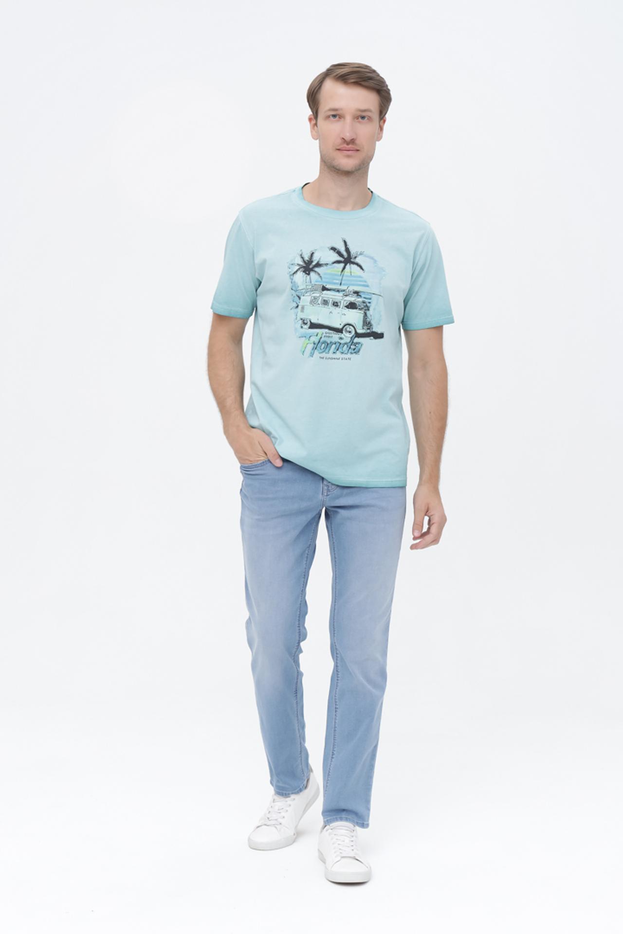 Эта футболка идеально подходит для создания непринужденных образов в стиле casual. Мягкий и дышащий материал обеспечит комфорт в течение всего дня, а качественный принт сохранит свой вид даже после многочисленных стирок. Классический крой и приятный голубой цвет делают эту модель универсальной и легко сочетаемой с джинсами, шортами или брюками.