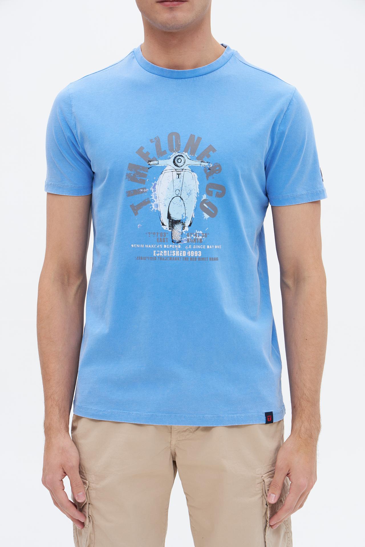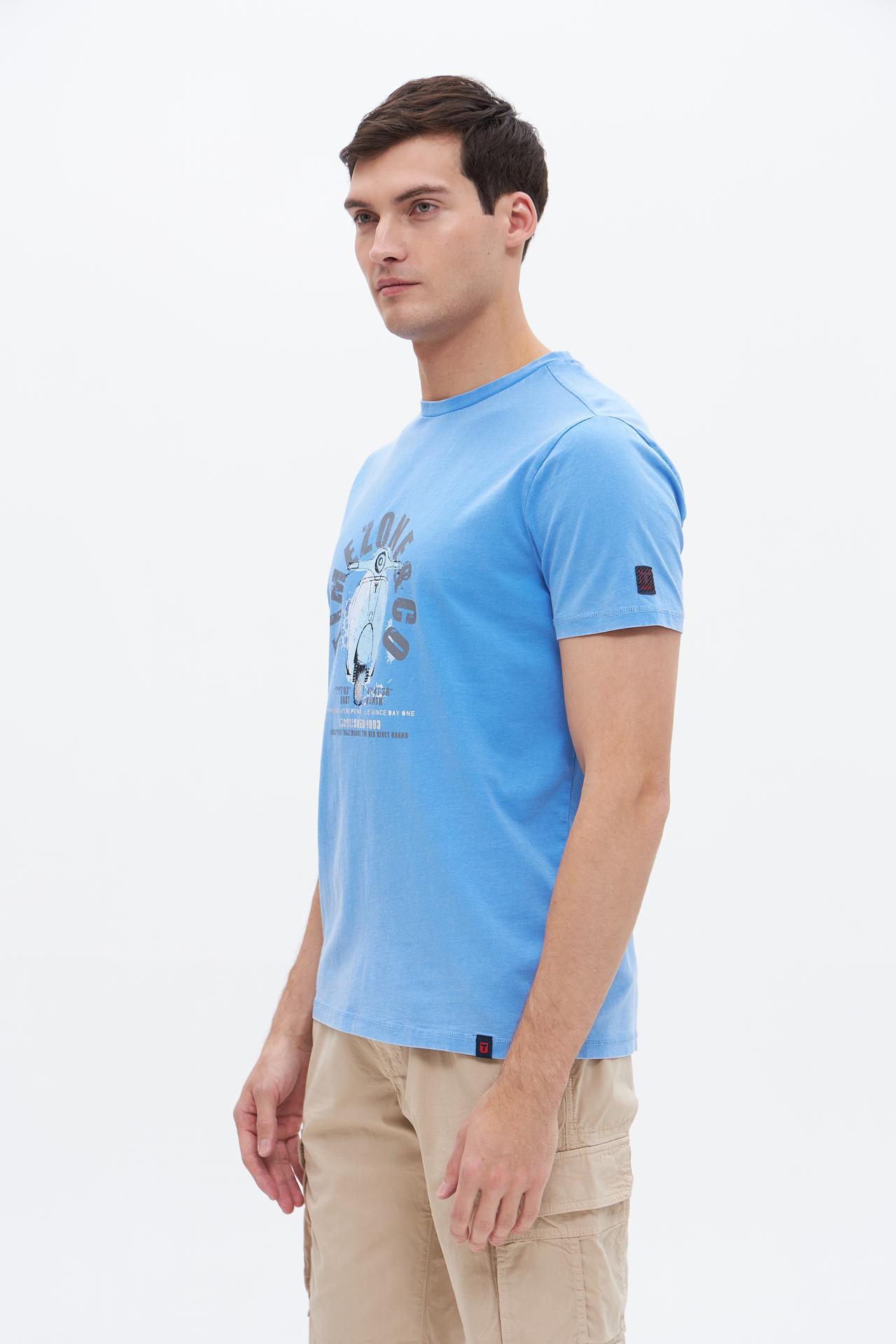Футболка украшена оригинальным принтом, который добавляет образу индивидуальность и делает его запоминающимся. Голубой цвет освежает и легко сочетается с различными элементами гардероба, позволяя создавать стильные и актуальные образы.