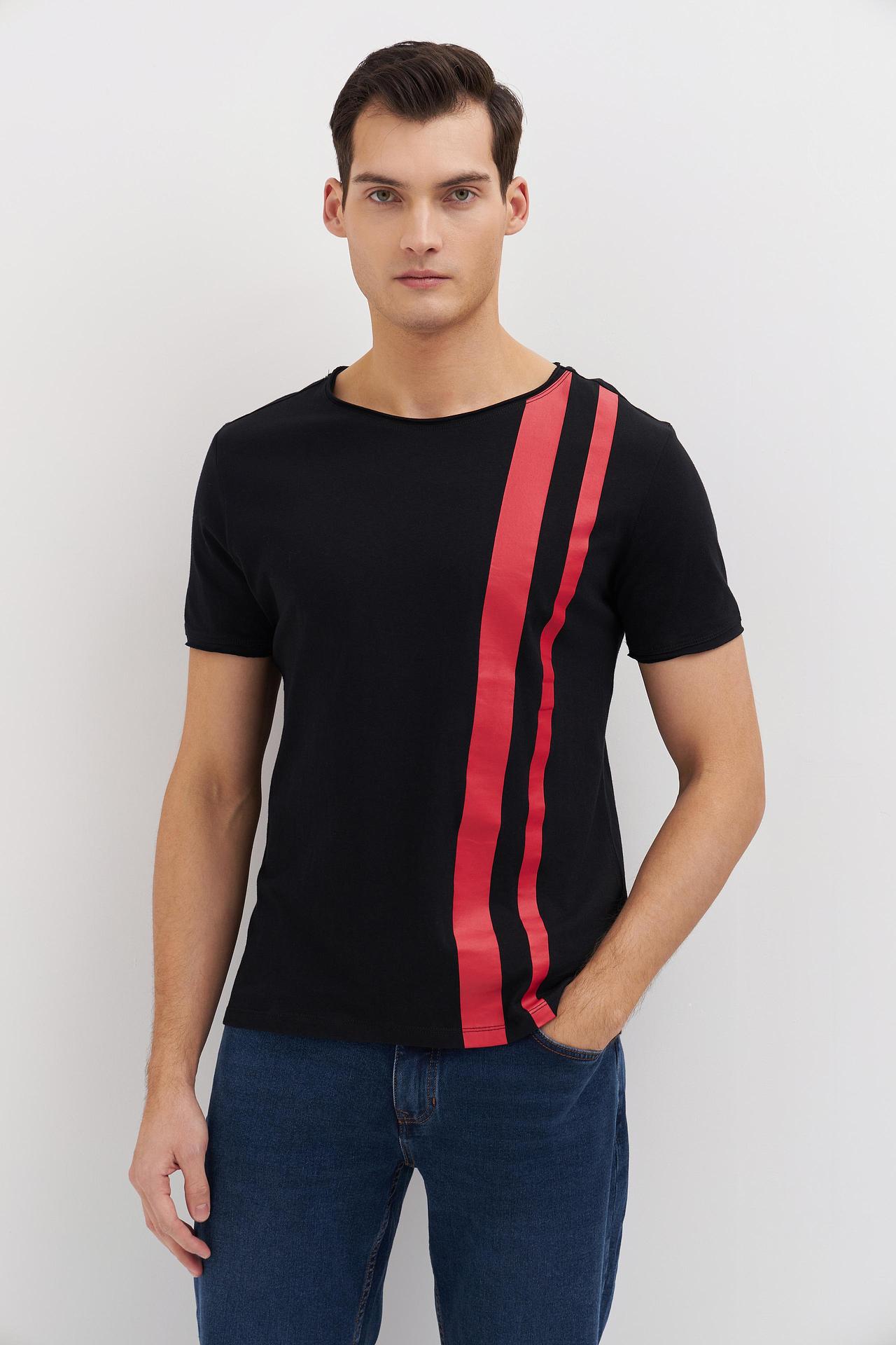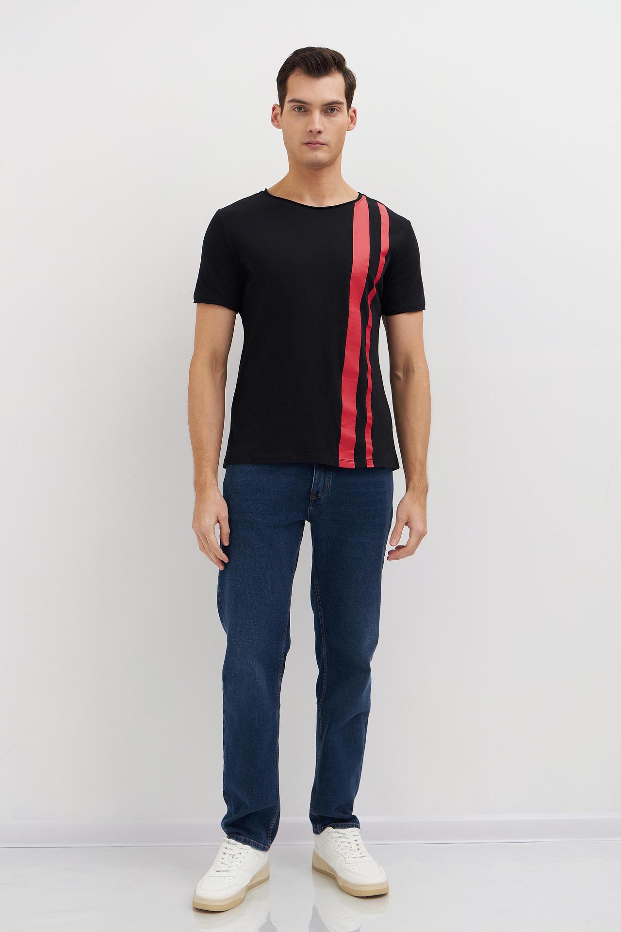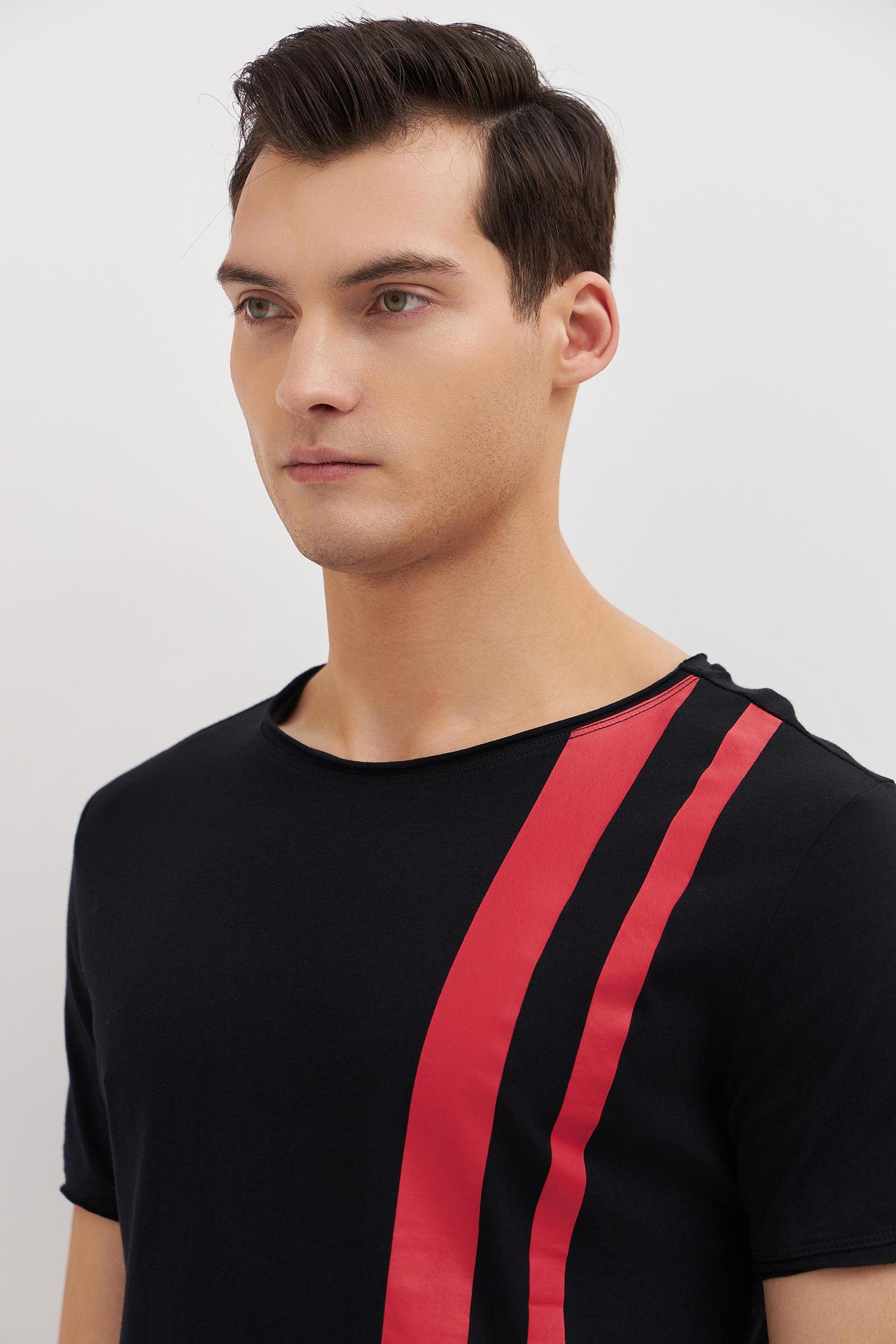 Футболка от бренда Just Valeri — это стильное решение для современного мужского гардероба. Модель выполнена в классическом чёрном цвете и дополнена контрастными вертикальными красными полосами, которые придают образу динамичность и оригинальность. Оригинальный дизайн горловины добавляет изюминку, делая эту футболку отличным выбором для тех, кто ценит уникальность в каждой детали.
