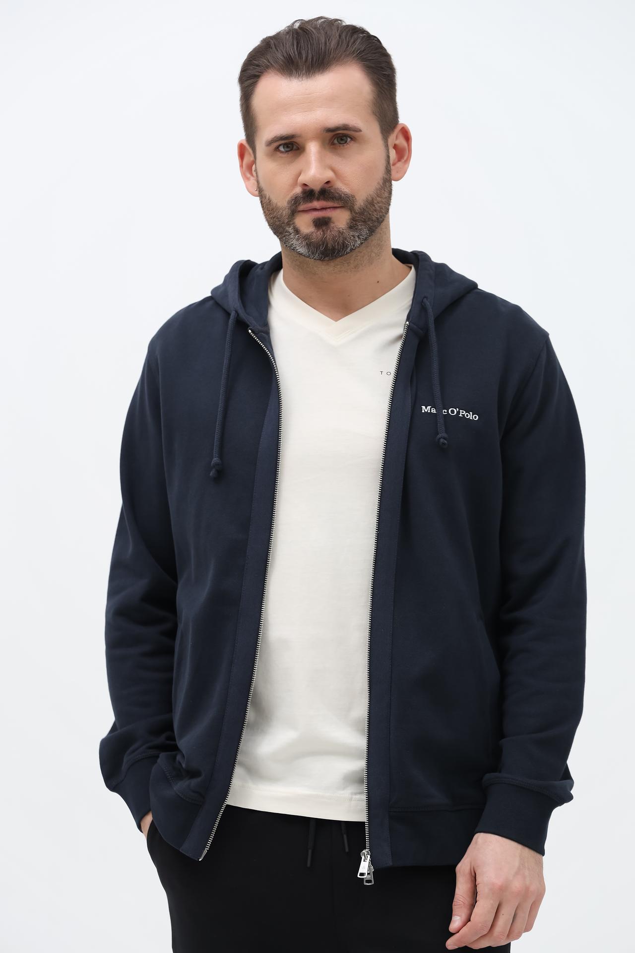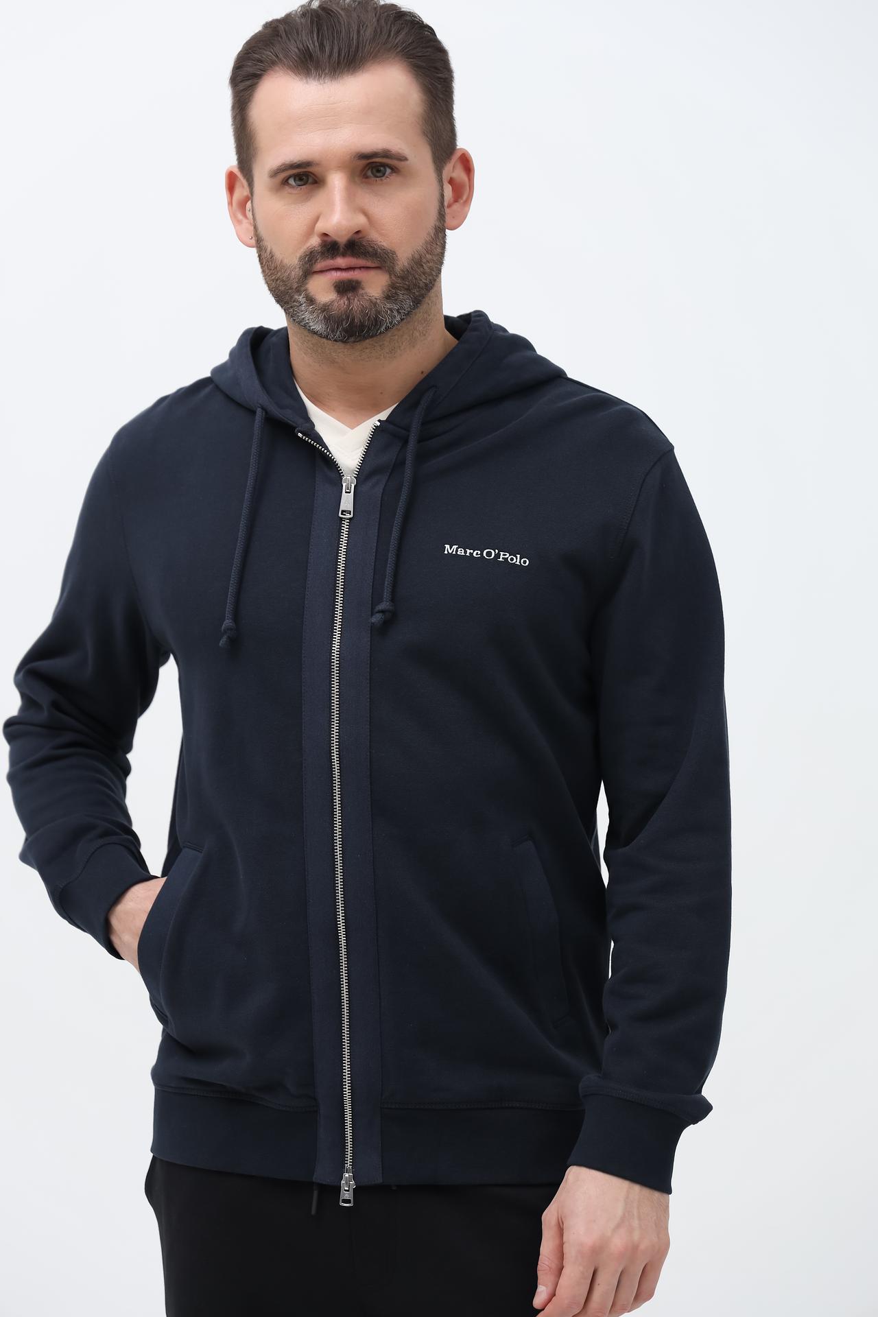 Стильный мужской кардиган от Marc O'Polo — идеальный выбор для создания комфортных и модных образов. Выполненный из 100% хлопка, он обеспечивает превосходную воздухопроницаемость и приятные тактильные ощущения на протяжении всего дня. Классический темно-синий цвет и минималистичный дизайн делают эту модель универсальной, легко сочетающейся как с повседневной, так и с более формальной одеждой. Кардиган застегивается на молнию и оснащен удобным капюшоном, который можно регулировать с помощью шнурков. Практичные боковые карманы добавляют функциональности.