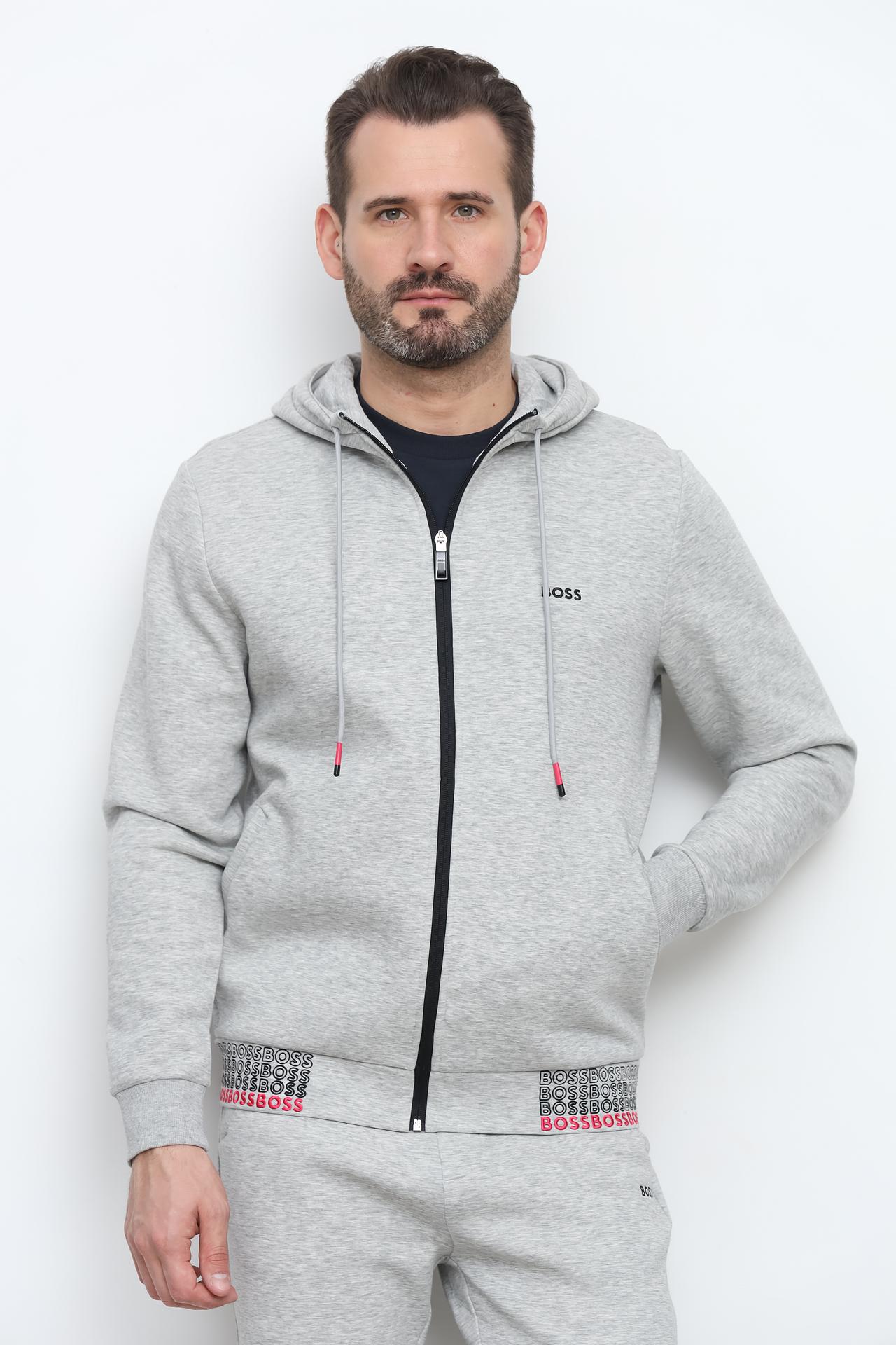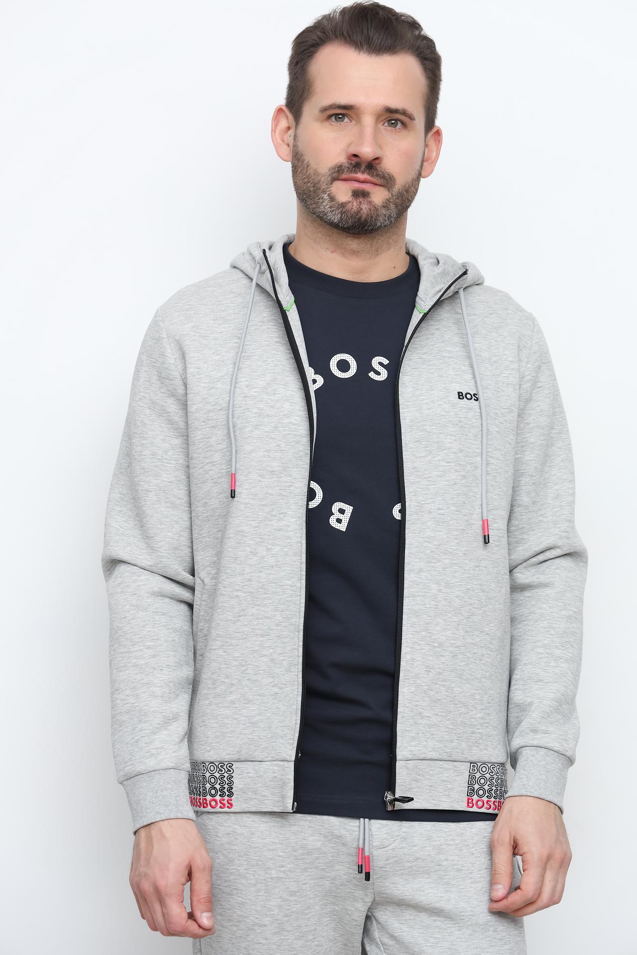 - Оригинальные детали: Нижний край кардигана декорирован контрастной тесьмой с повторяющимся логотипом BOSS, а шнурки капюшона оснащены яркими акцентами, добавляющими изделию уникальности и узнаваемости бренда.