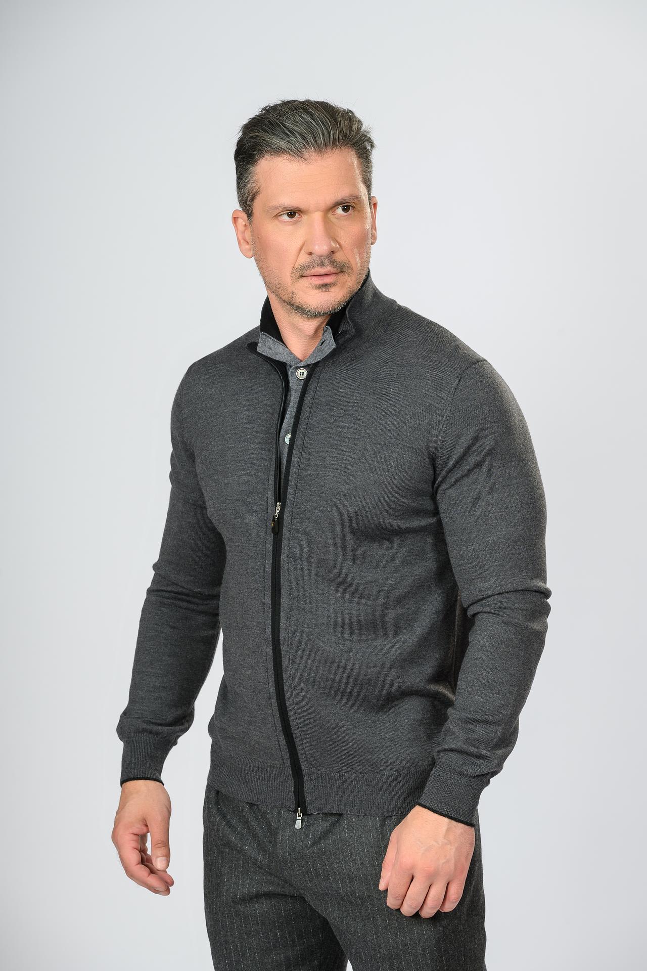 Кардиган Gran Sasso серый на молнии, 100% шерсть