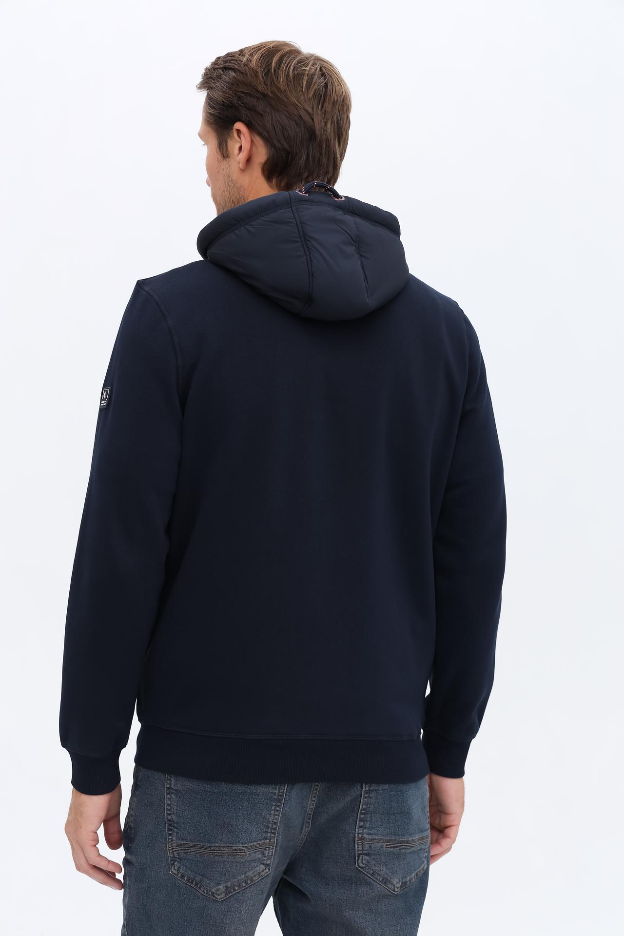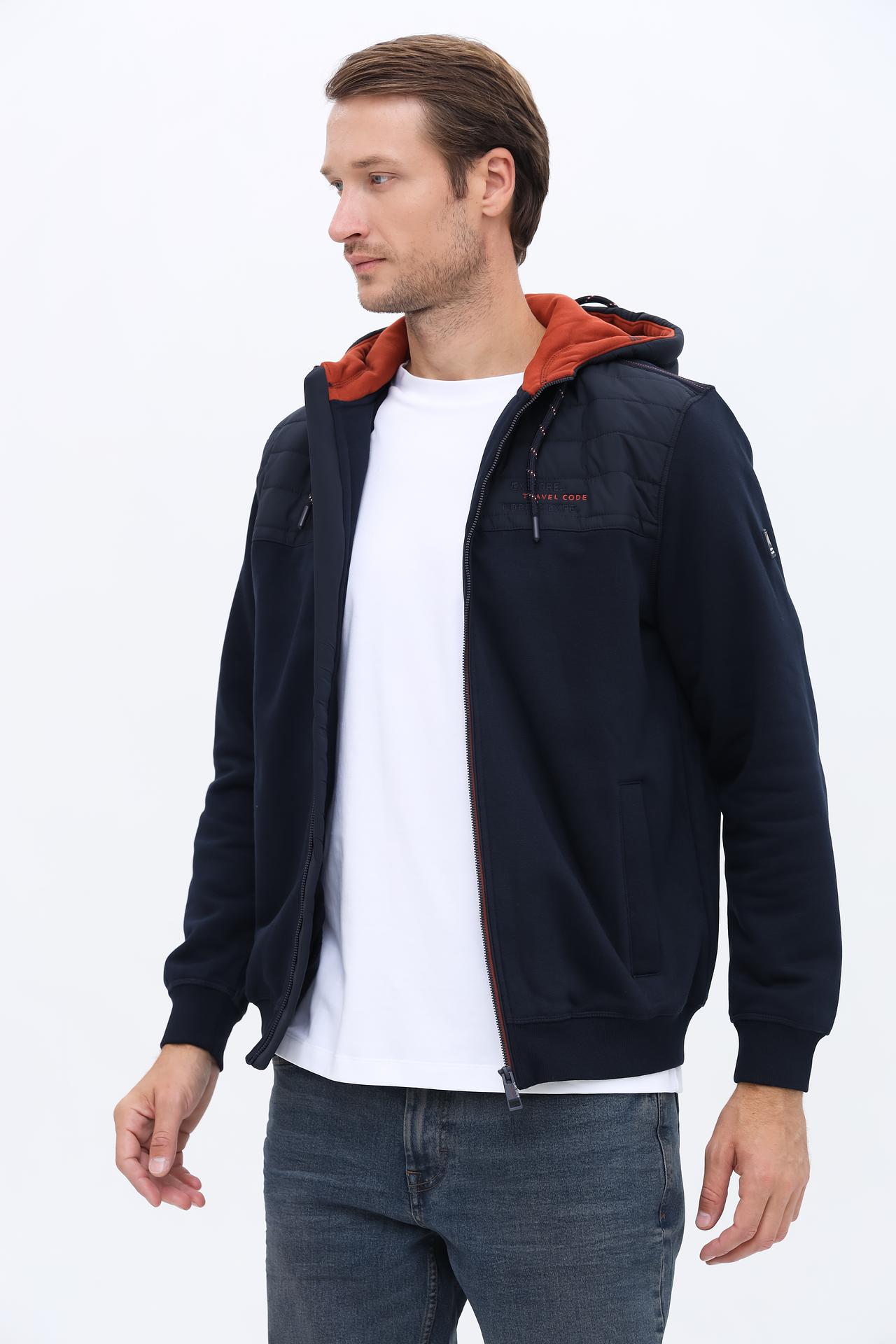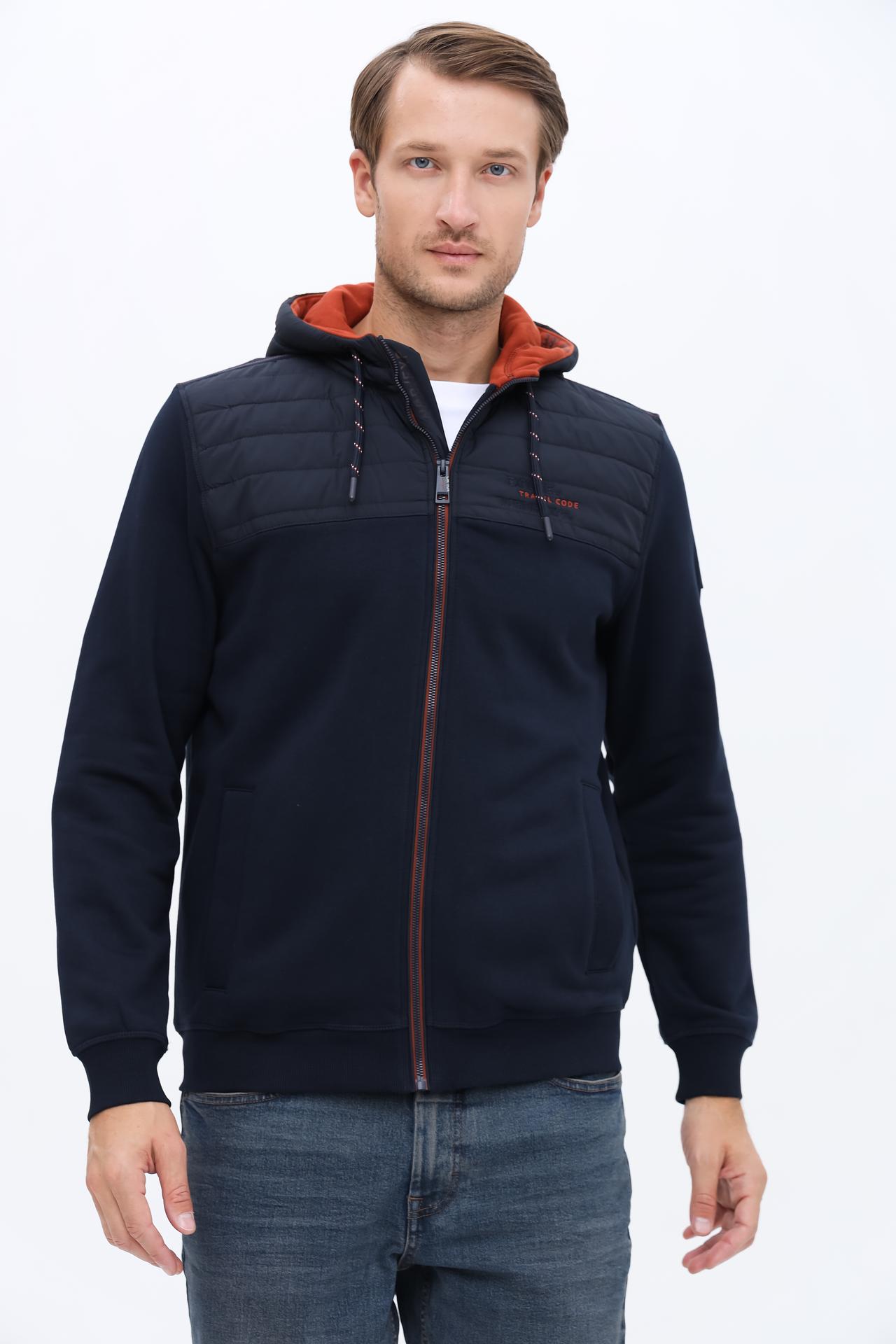 Прямой крой кардигана обеспечивает свободу движений, а капюшон защитит от ветра. Застежка-молния добавляет функциональности, позволяя регулировать уровень тепла. Декоративные элементы в виде стеганых вставок и брендинга создают интересный дизайн.
