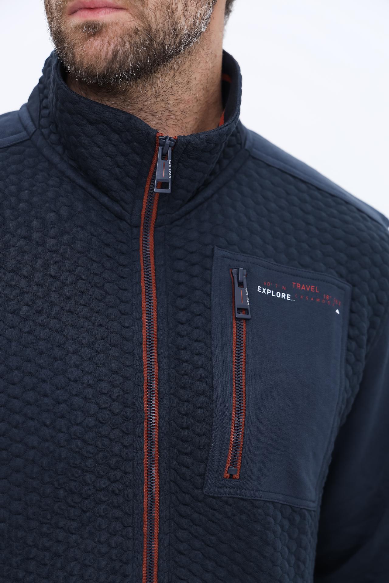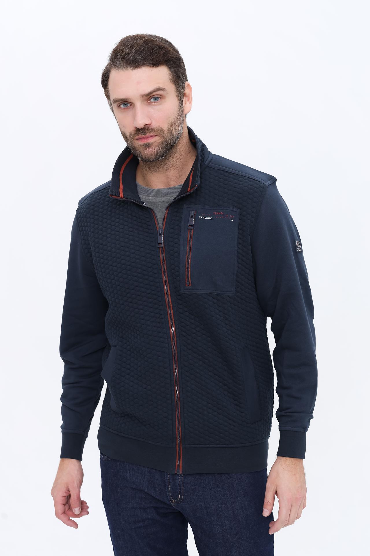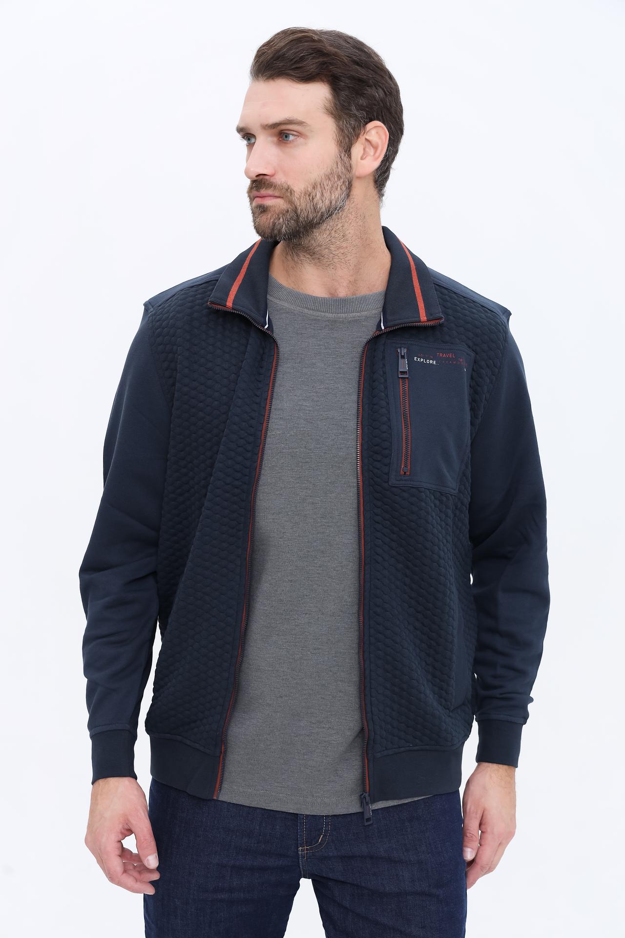 Кардиган отличается современным дизайном с фактурным плетением в виде сот, что придает ему неповторимый вид. Застежка-молния, удобные карманы, а также стильный контрастный оттенок на воротнике и молнии – детали, которые подчеркивают безупречный стиль изделия.