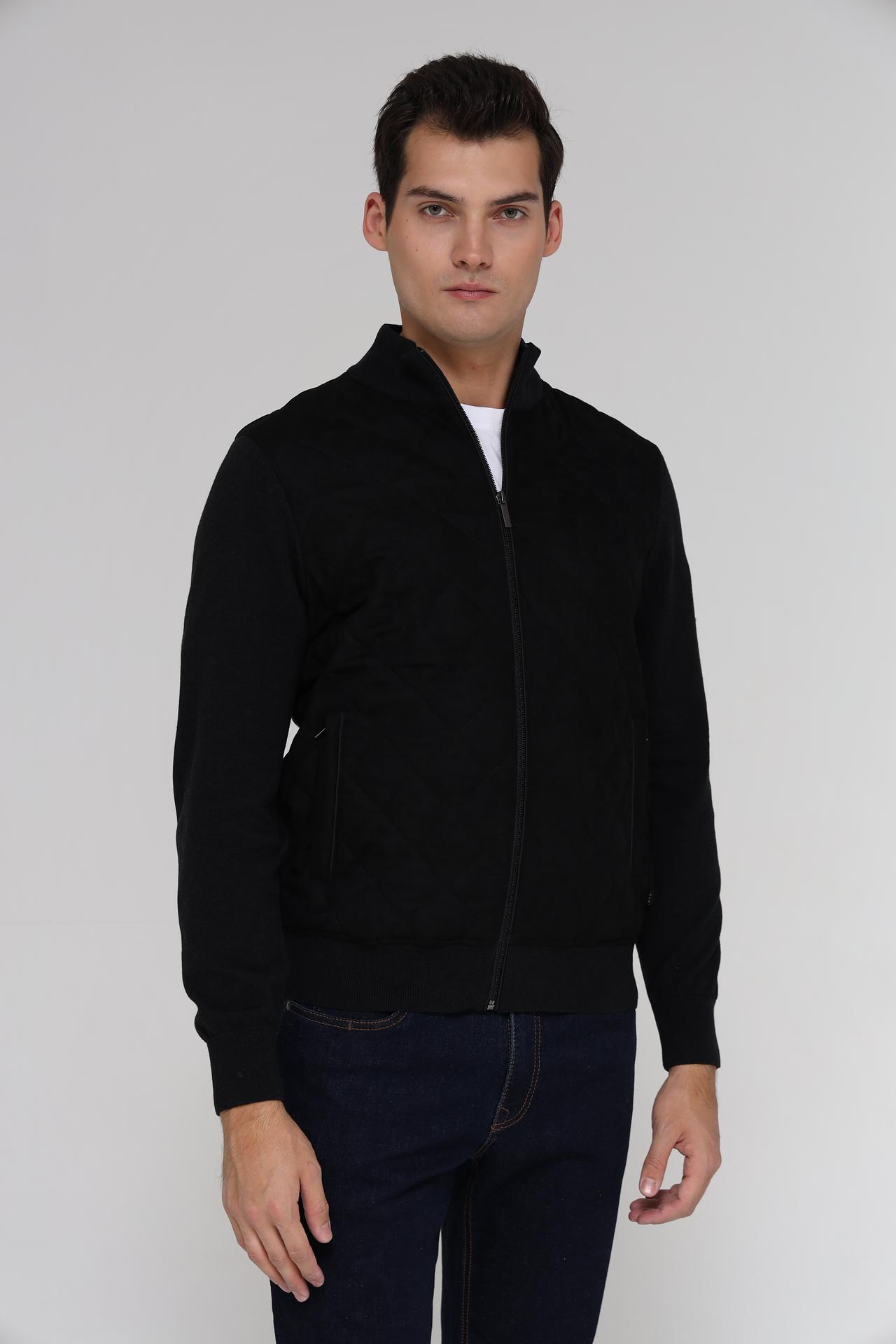 Чёрный хлопковый кардиган Bugatti на молнии с ромбами