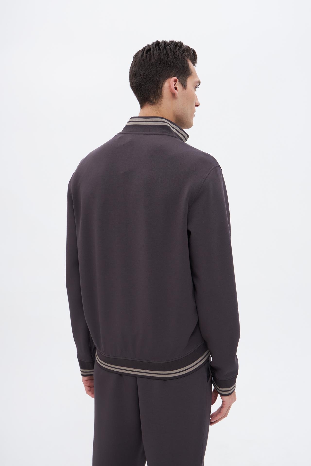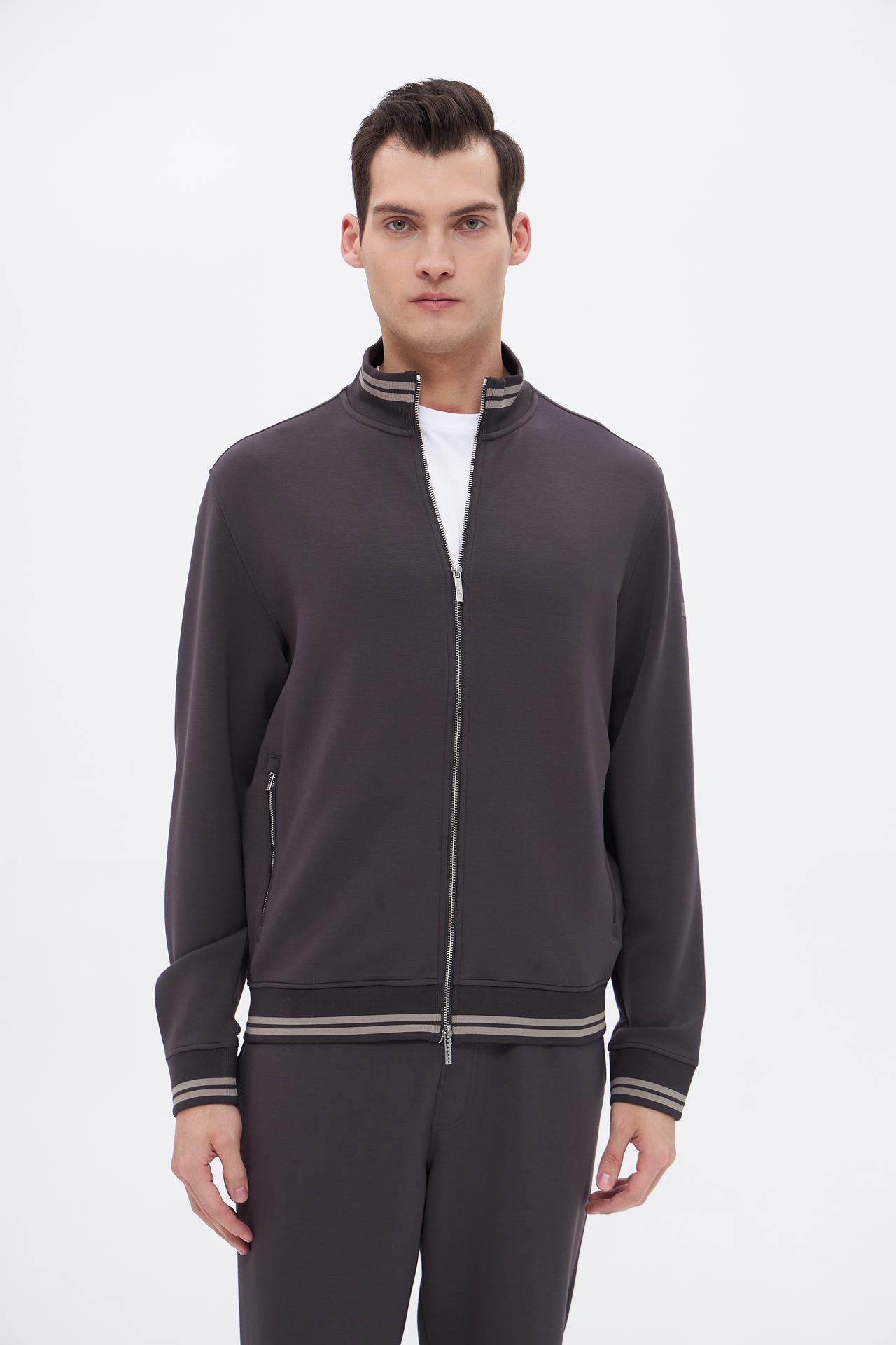 - Дизайн: Классический прямой крой с воротником-стойкой, молнией по центру и декоративными полосами. Минималистичный дизайн делает кардиган универсальным для различных комбинаций.