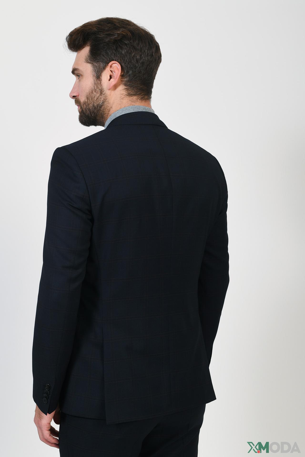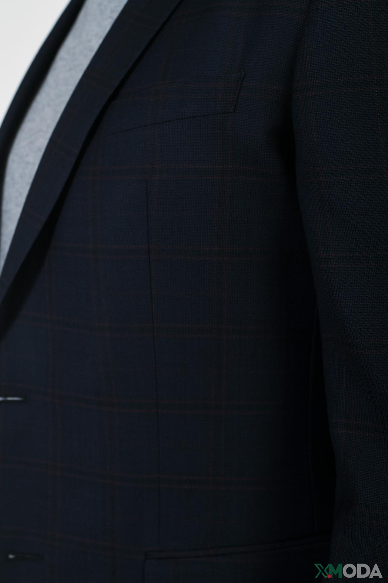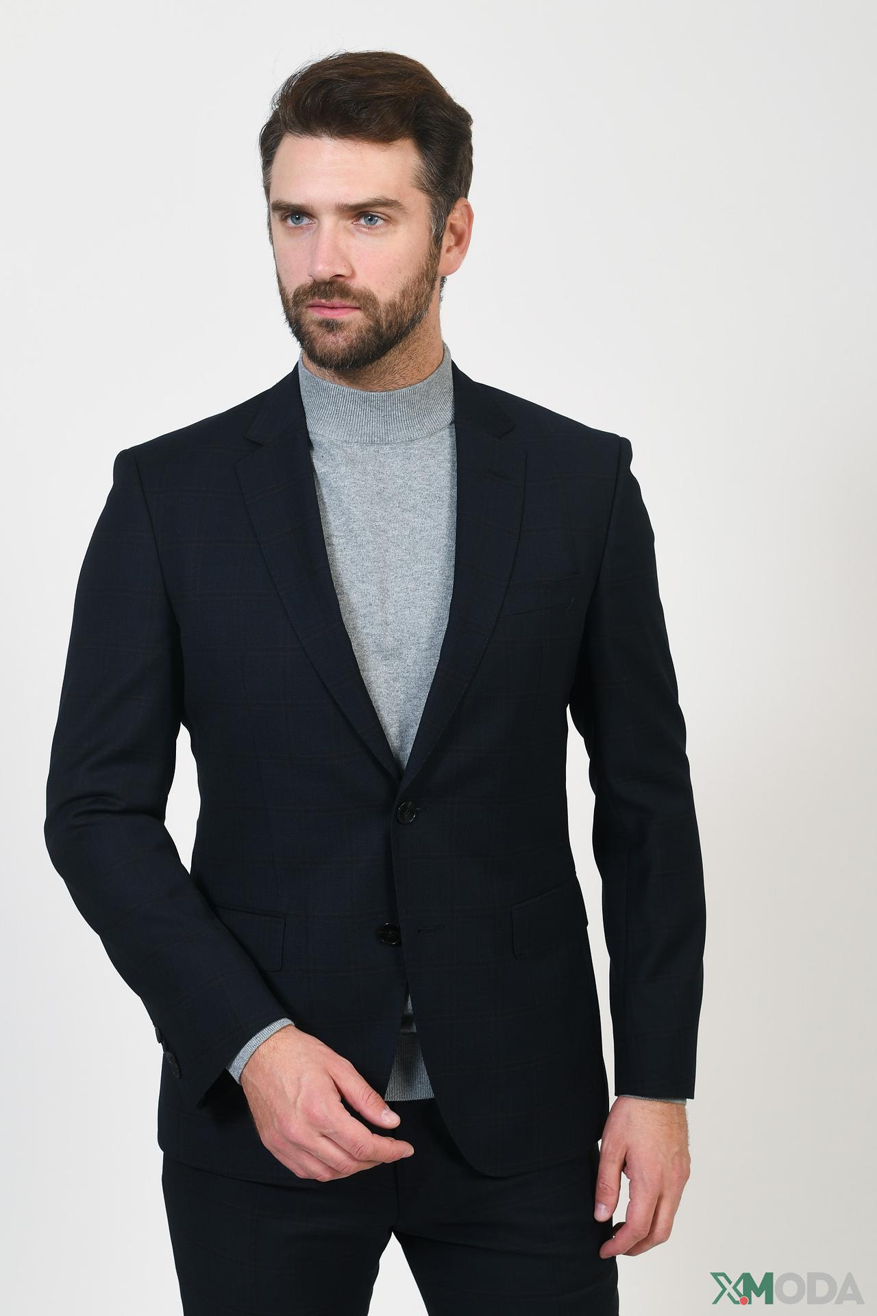 - Элегантный дизайн: Темно-синий цвет дополнен изысканной бордовой клеткой, что придает костюму уникальность и утонченность. Такой дизайн делает костюм универсальным для деловых встреч и торжественных мероприятий.