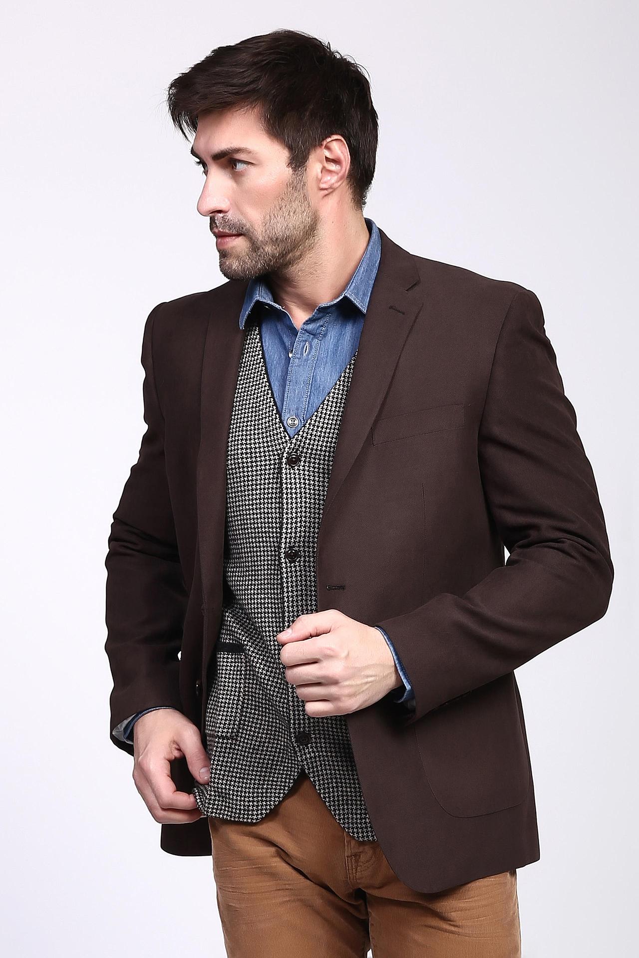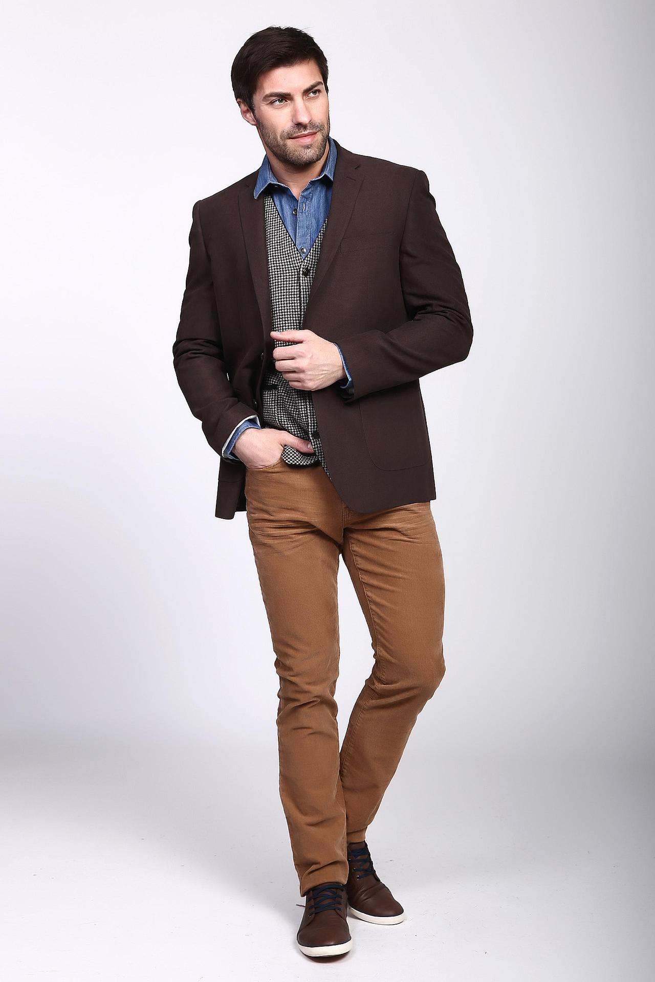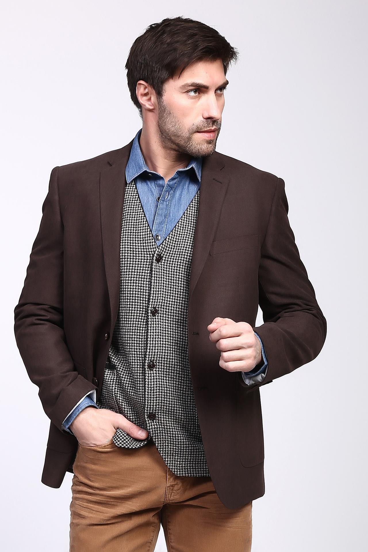 Пиджак мужской коричневого цвета от бренда Pezzo. Модель выполнена прямым фасоном. Изделие дополнено откладным воротом, застежка на пуговицы, накладными карманами, верхним, прорезным карманом, задними разрезами, втачными, длинными рукавами, на лацканах пуговицы. Ткань состоит из 90% полиэстера, 10% нейлона. Подкладка -100% полиэстер. Комбинировать можно с различными рубашками, брюками.