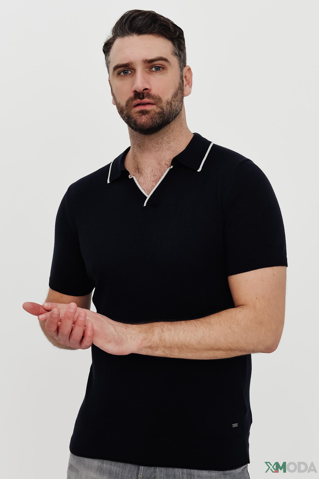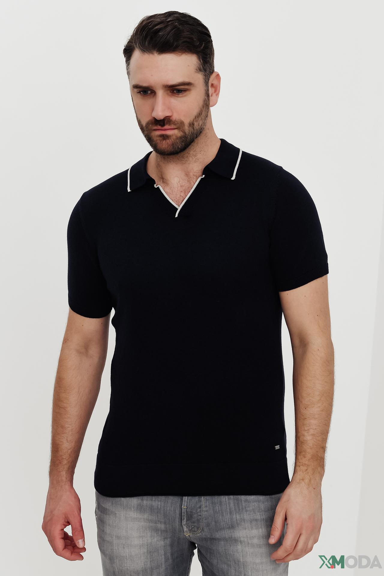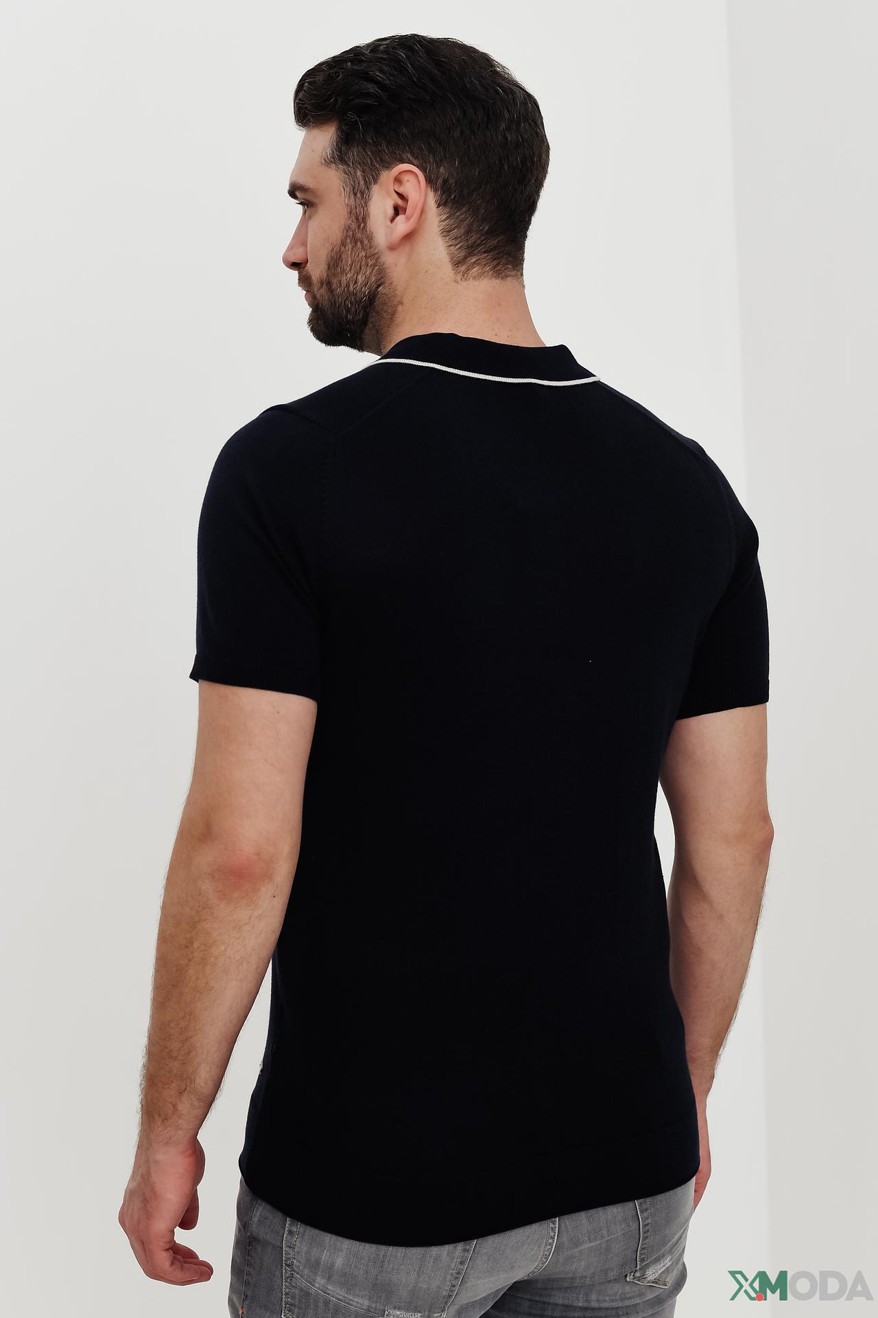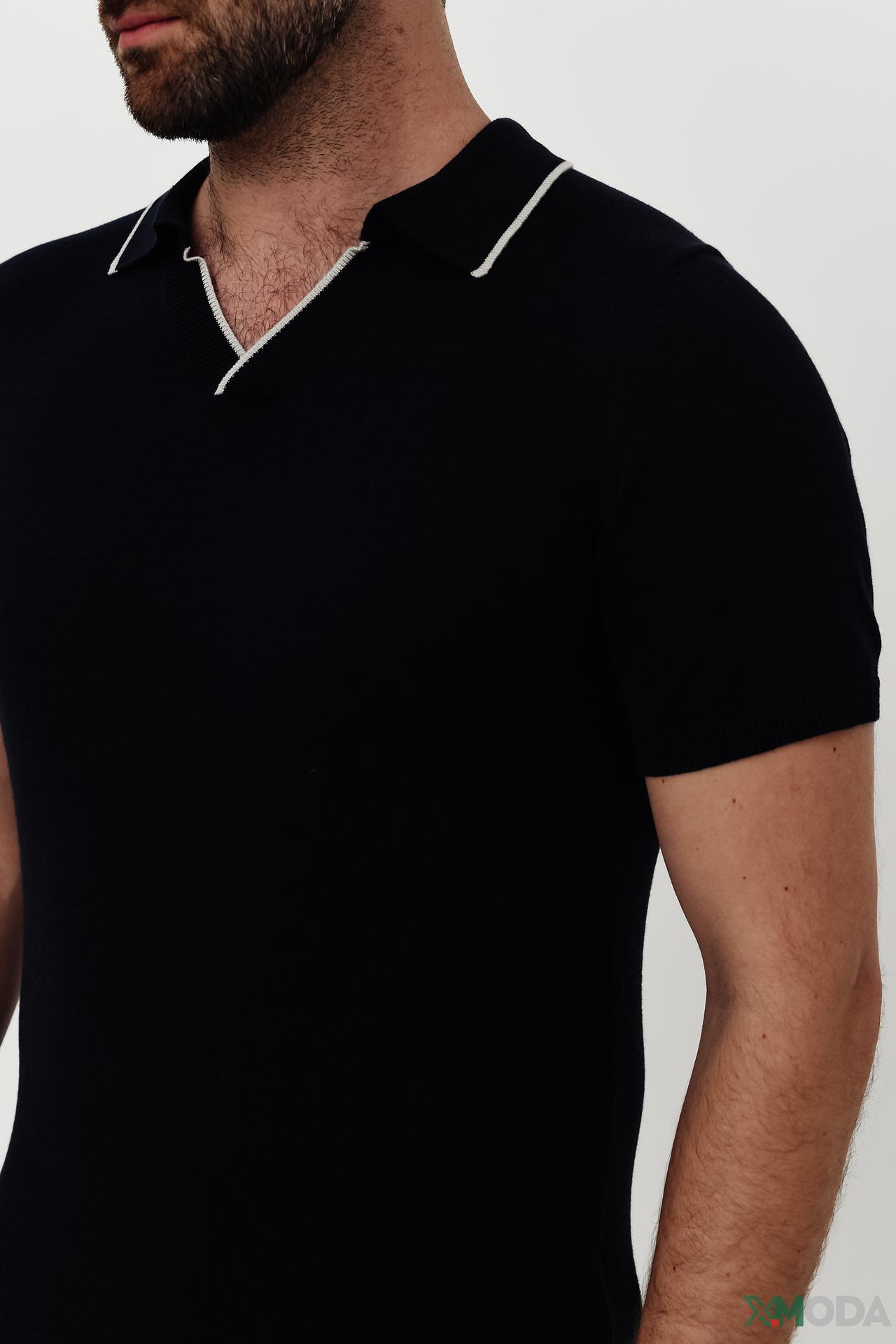 - Изящный дизайн: Глубокий черный цвет в комбинации с контрастным белым кантом по воротнику и V-образному вырезу придает поло утонченный и стильный вид. Это классическое поло легко впишется в различные образы, от деловых до расслабленных.