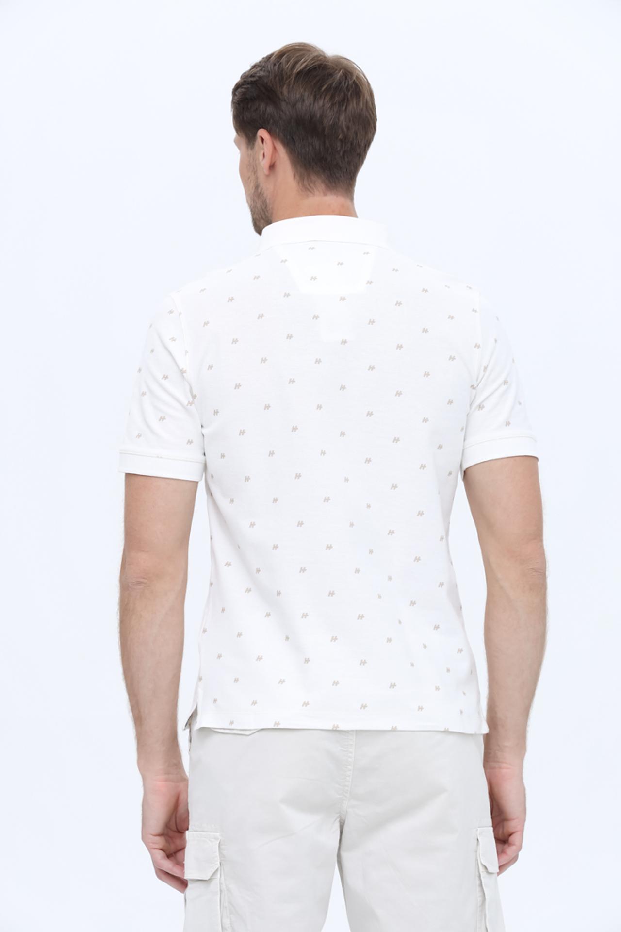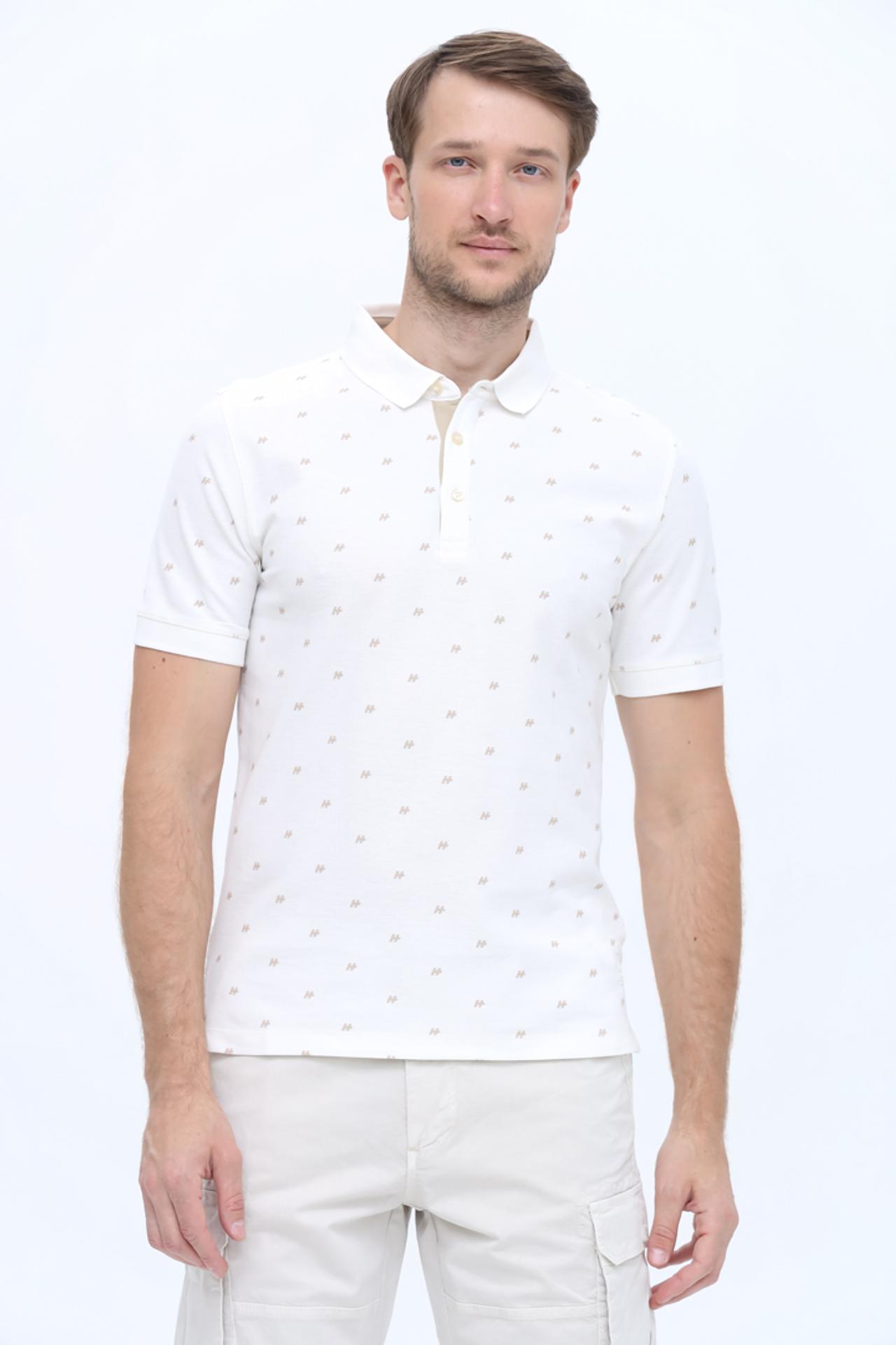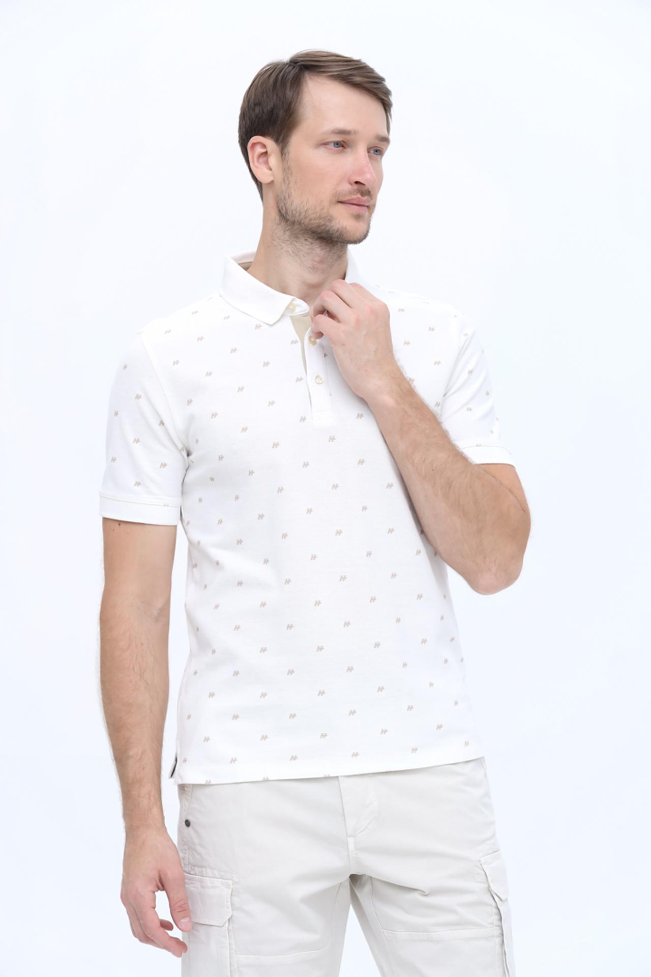 Оригинальный принт, состоящий из мелких повторяющихся элементов, добавляет изделию изюминку, не перегружая общий вид. Воротник-поло и планка с пуговицами подчеркивают традиционный стиль, а короткий рукав гарантирует свободу движений. Эта модель идеально сочетается с шортами, джинсами или чиносами, позволяя создавать актуальные летние ансамбли.