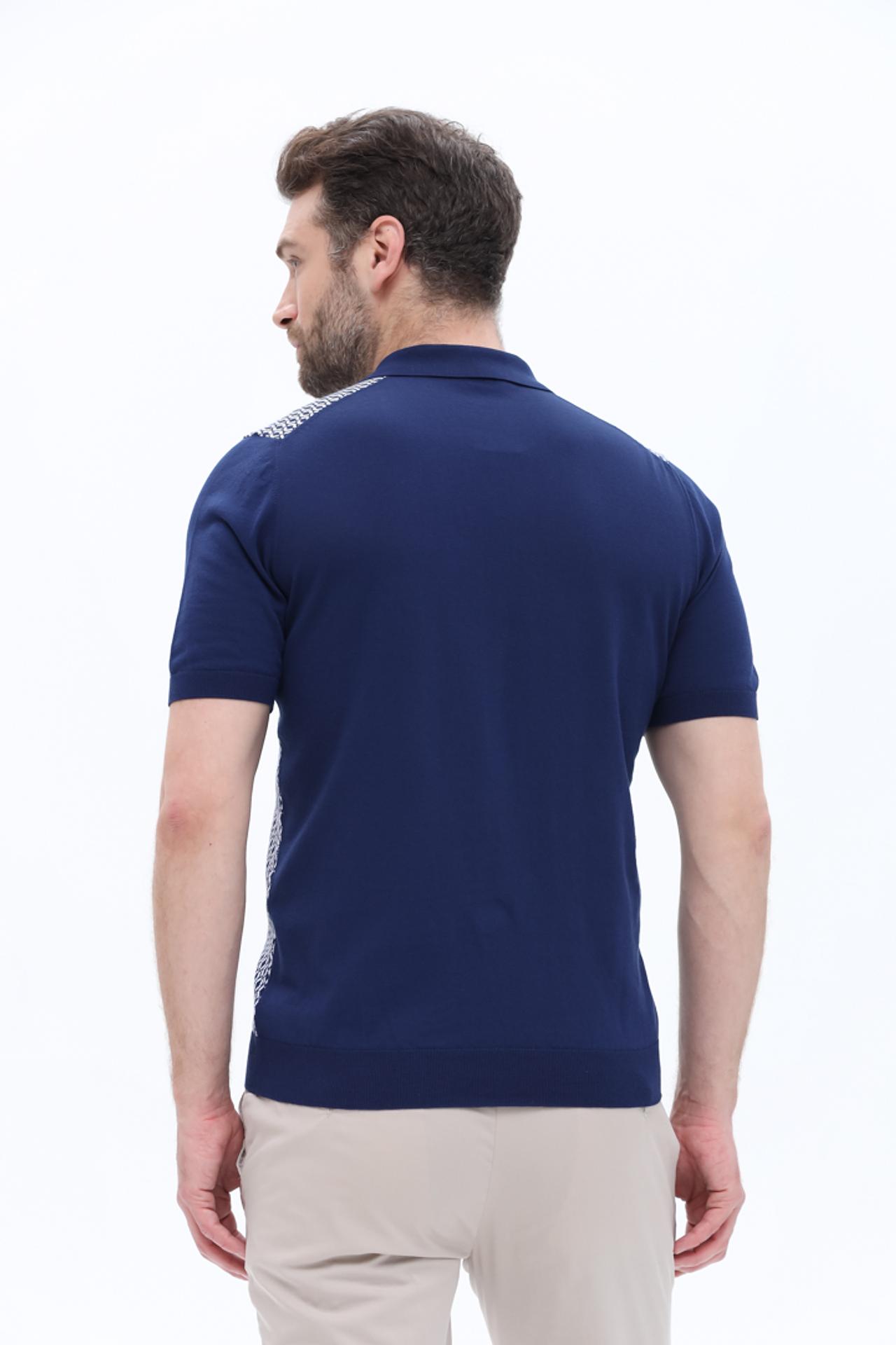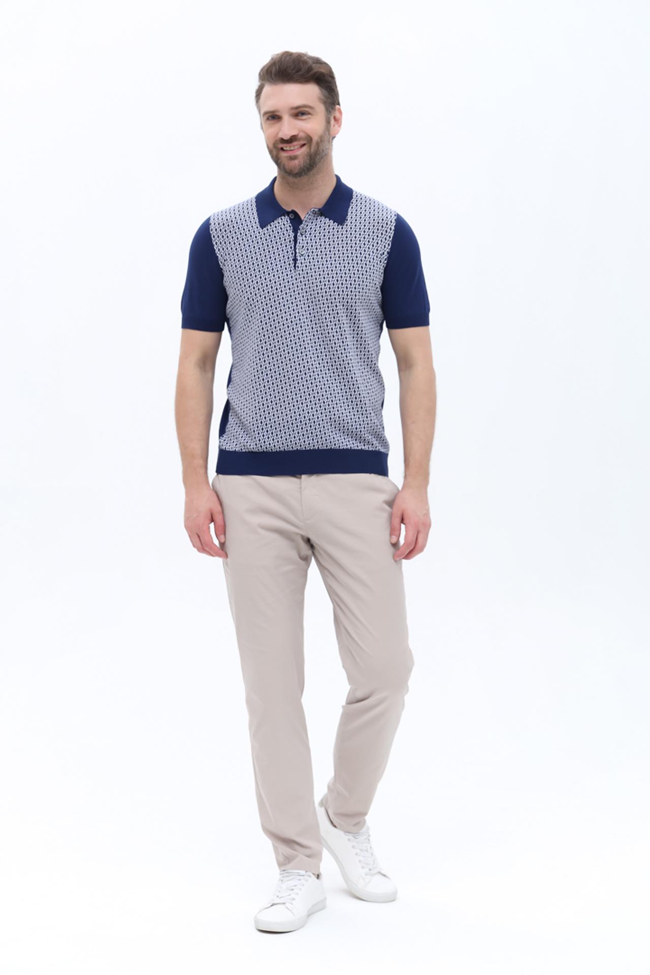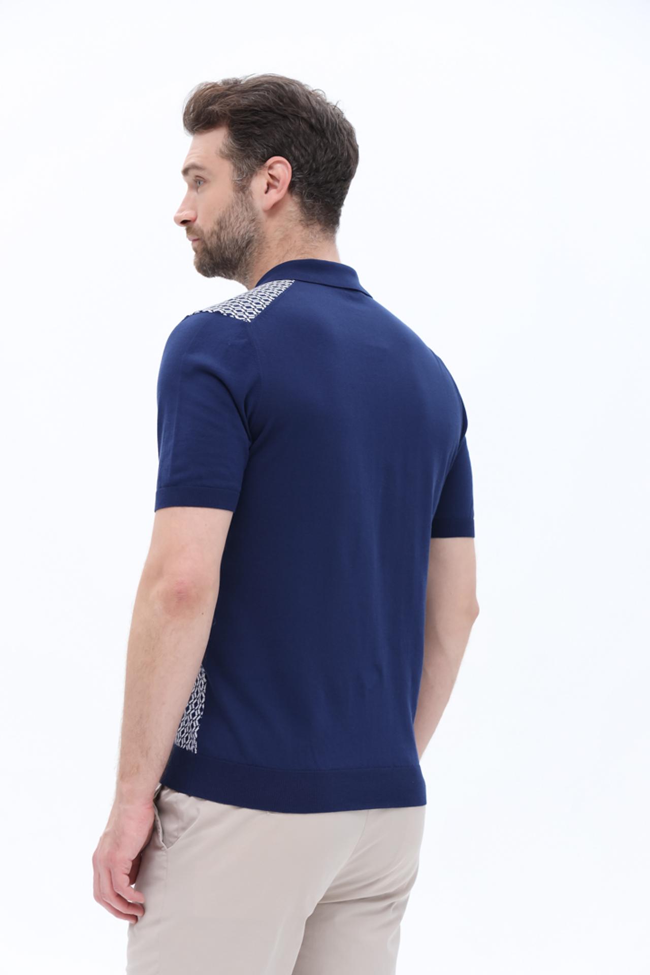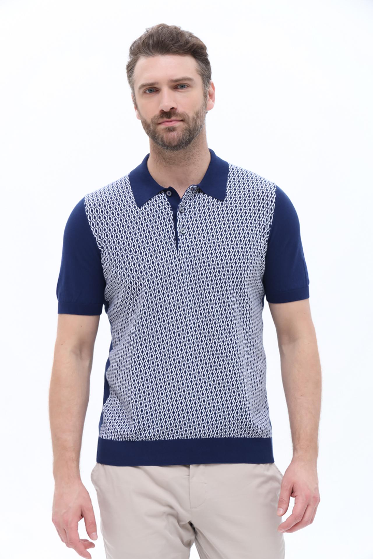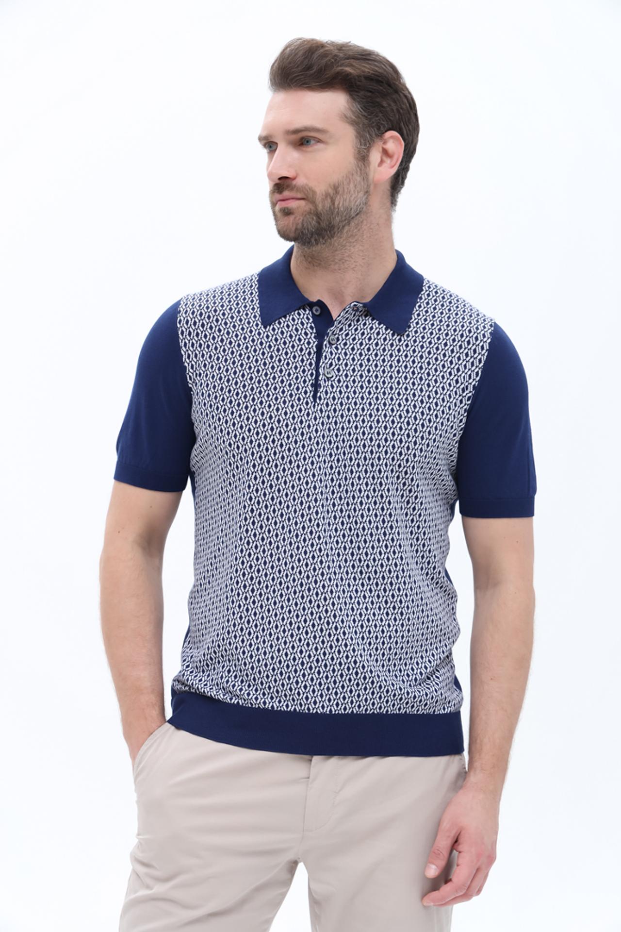 Стильная мужская футболка поло темно-синего цвета с оригинальным геометрическим узором – идеальный выбор для создания элегантного и современного образа. Эта футболка прекрасно подойдет как для повседневной носки, так и для особых случаев, подчеркивая ваш безупречный вкус. Классический крой и качественные материалы обеспечивают комфорт и уверенность в любой ситуации.