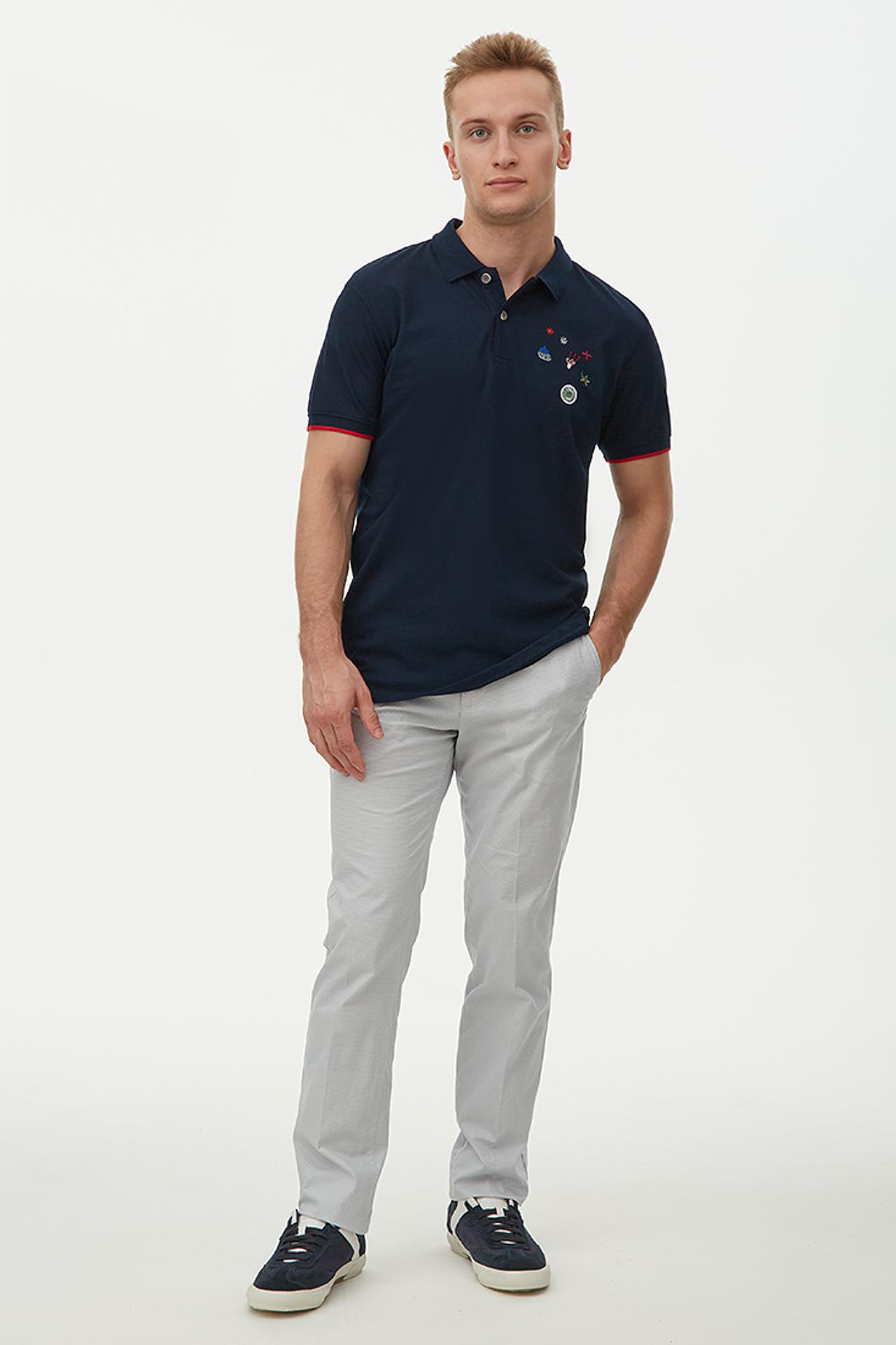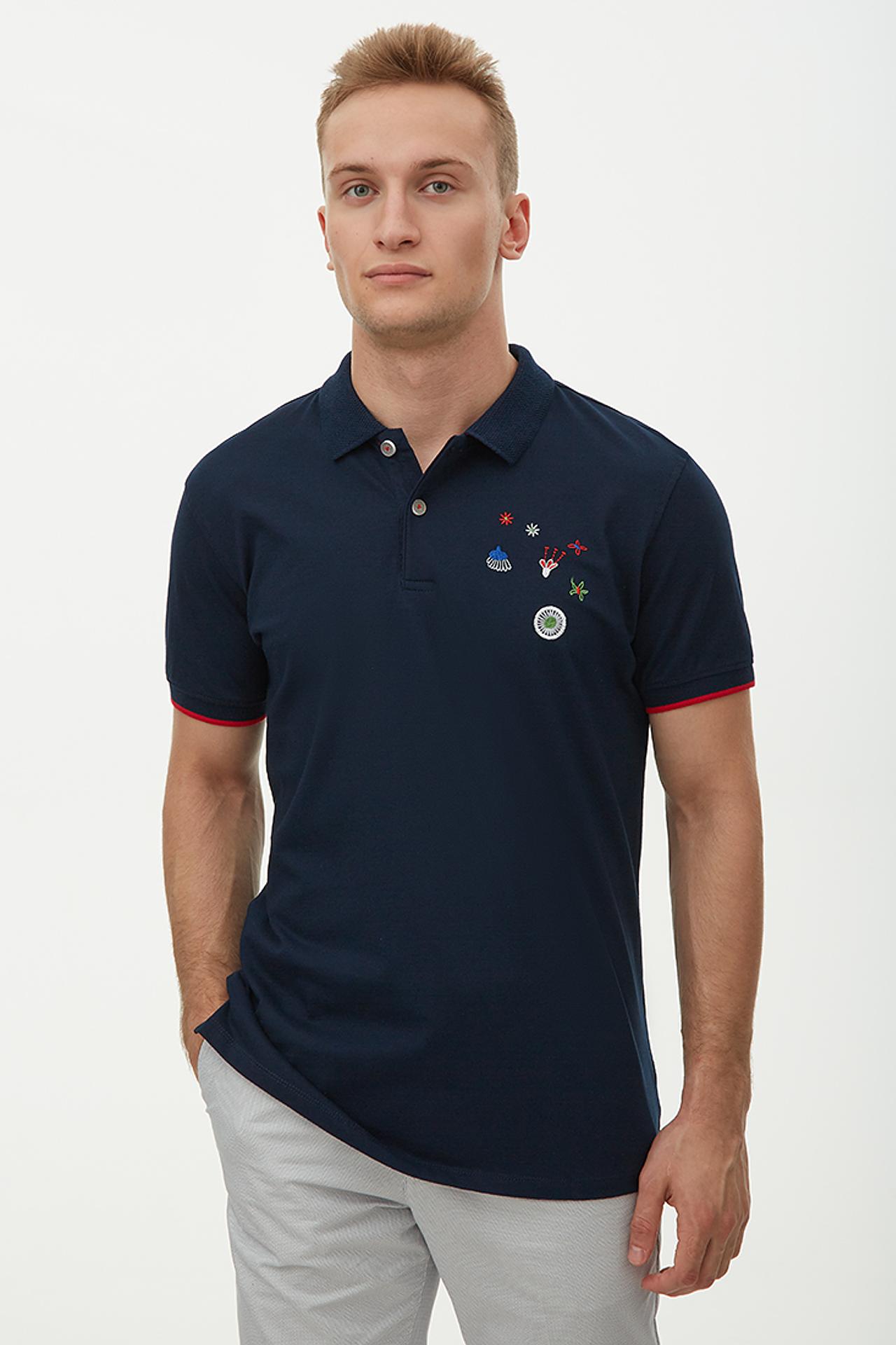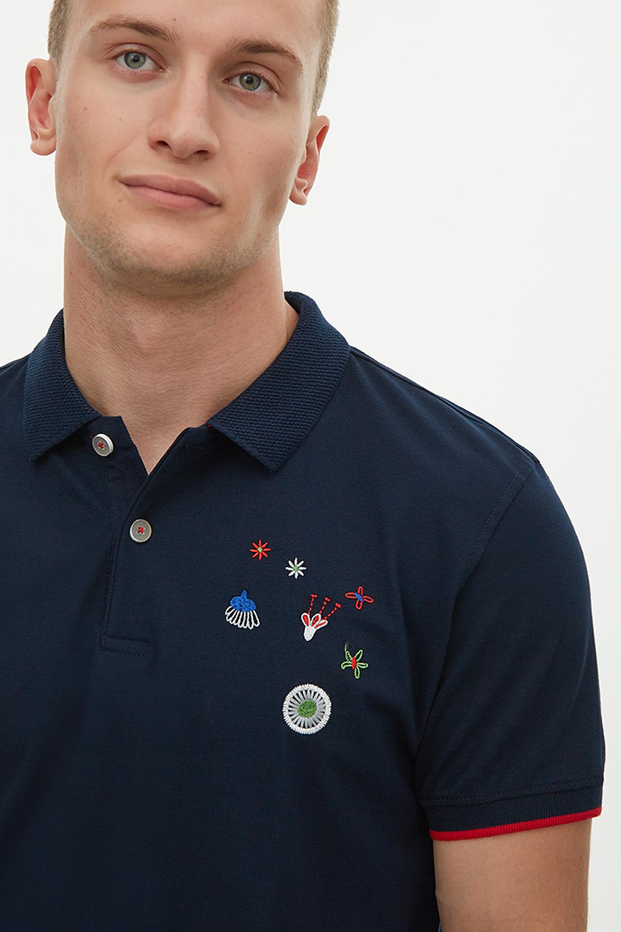 Элементы вышивки добавляют поло индивидуальность и неповторимый шарм. Красная отделка манжет привносит интересный акцент.