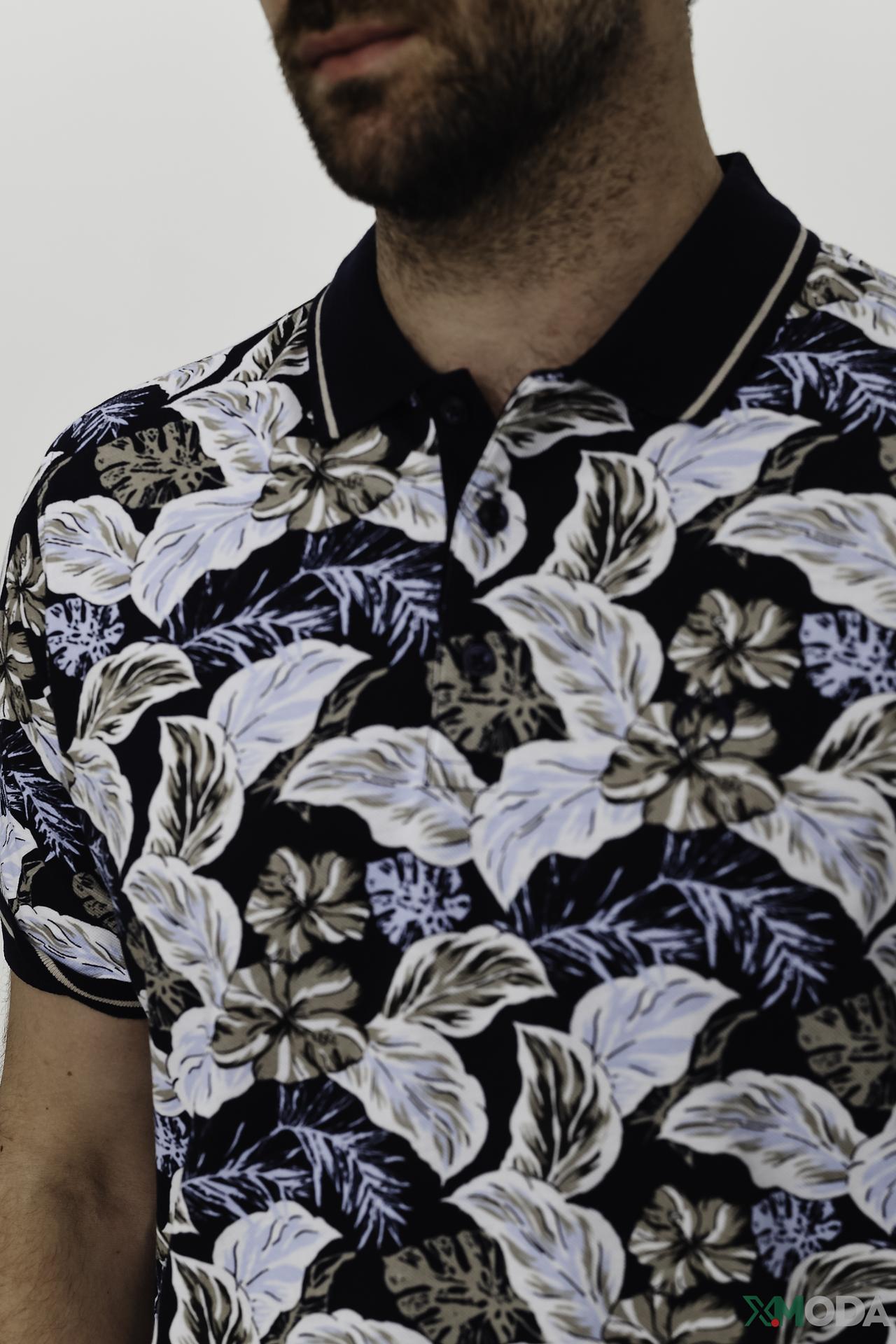 - Дизайн: Элегантный цветочный принт придает поло оригинальность и делает его запоминающимся.