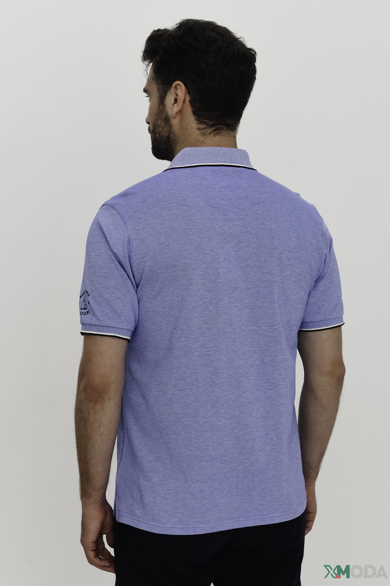 - Дизайн: Классический фасон поло с отложным воротником и короткими рукавами.