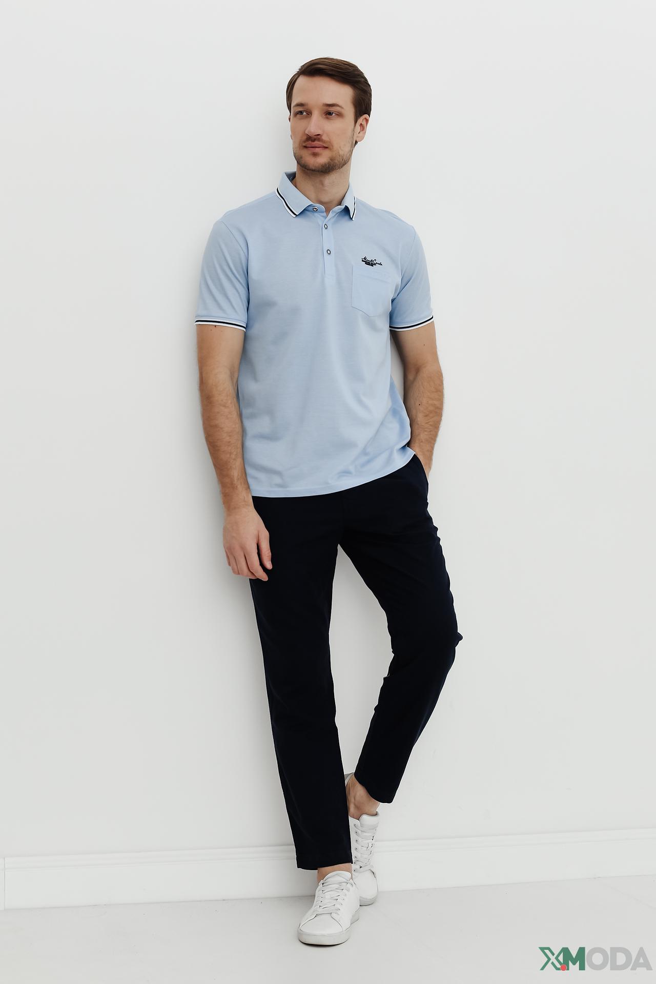 Поло Monte Carlo голубое с карманом и логотипом