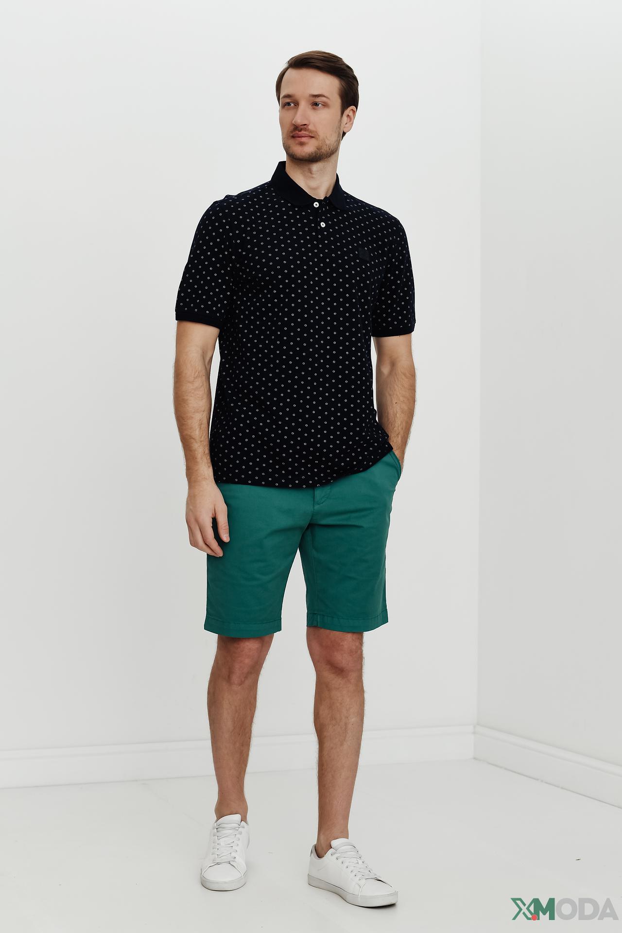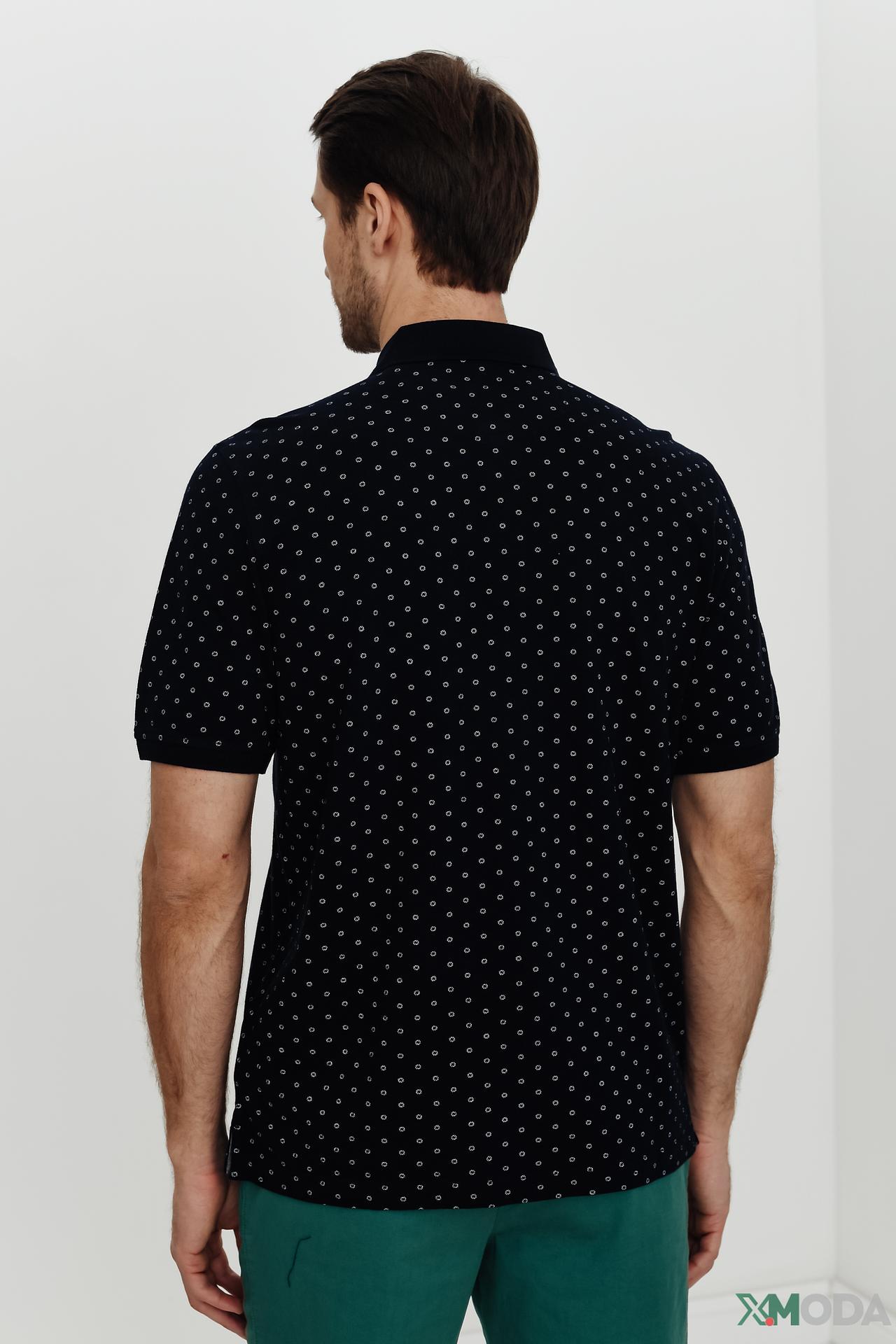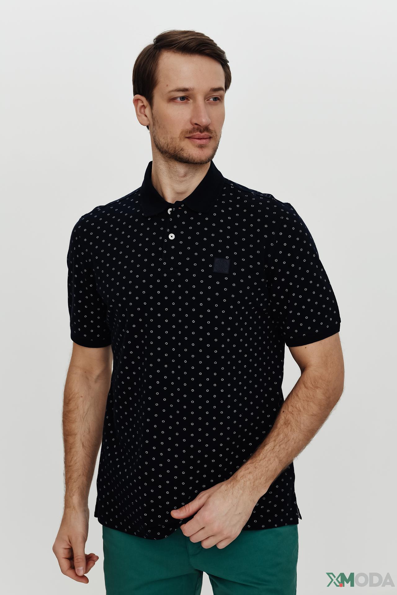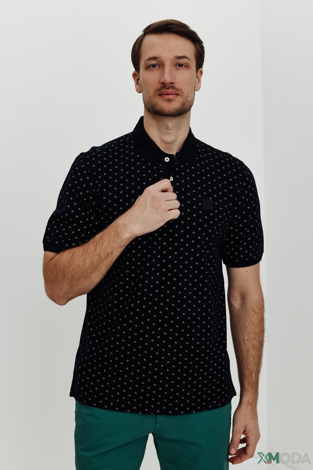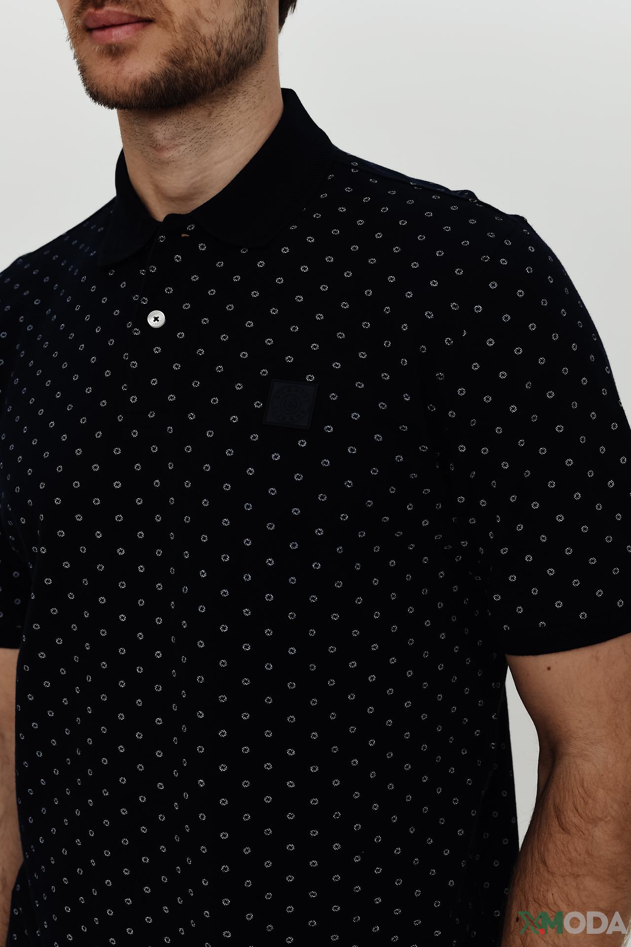 - Универсальный дизайн. Классический крой и элегантный чёрный цвет с мелким геометрическим принтом делают это поло подходящим для самых разных ситуаций. Модель легко впишется как в деловой, так и в неформальный гардероб.