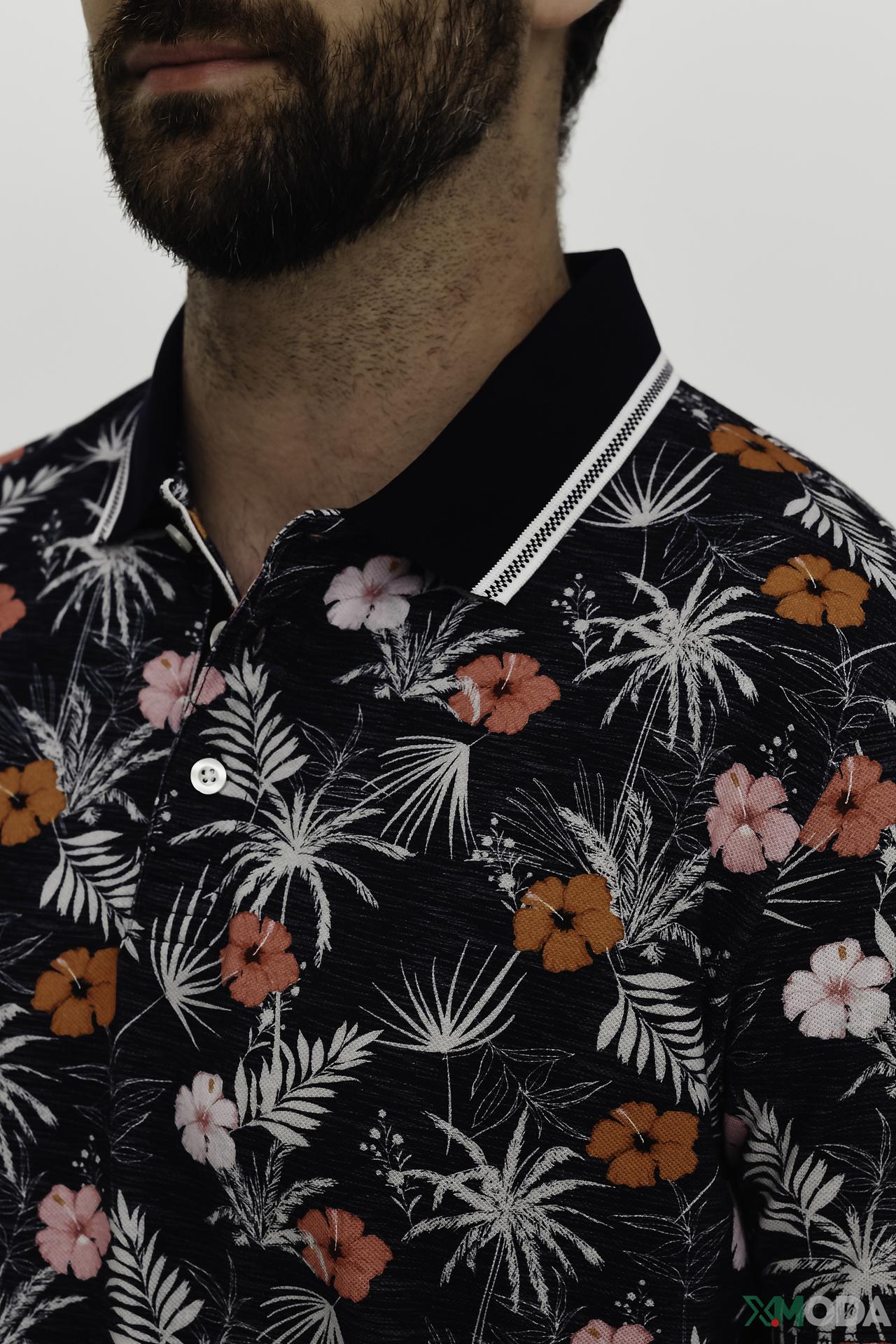 Принт с тропическими цветами добавляет яркости и индивидуальности. Классический крой поло отлично сочетается с любым стилем одежды – от повседневного до smart casual.