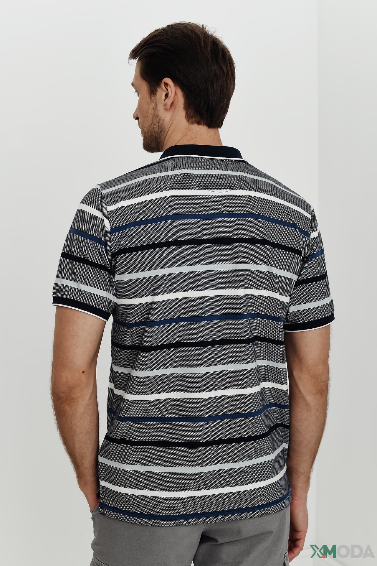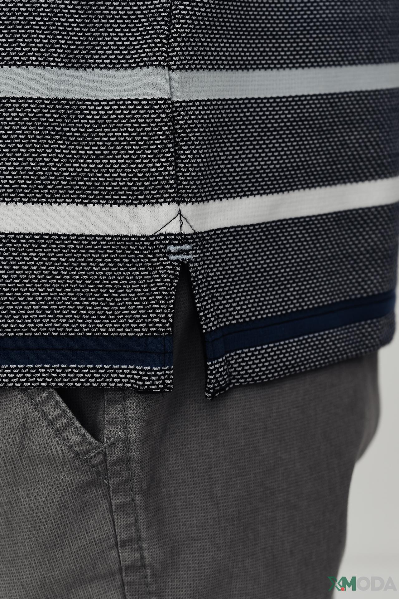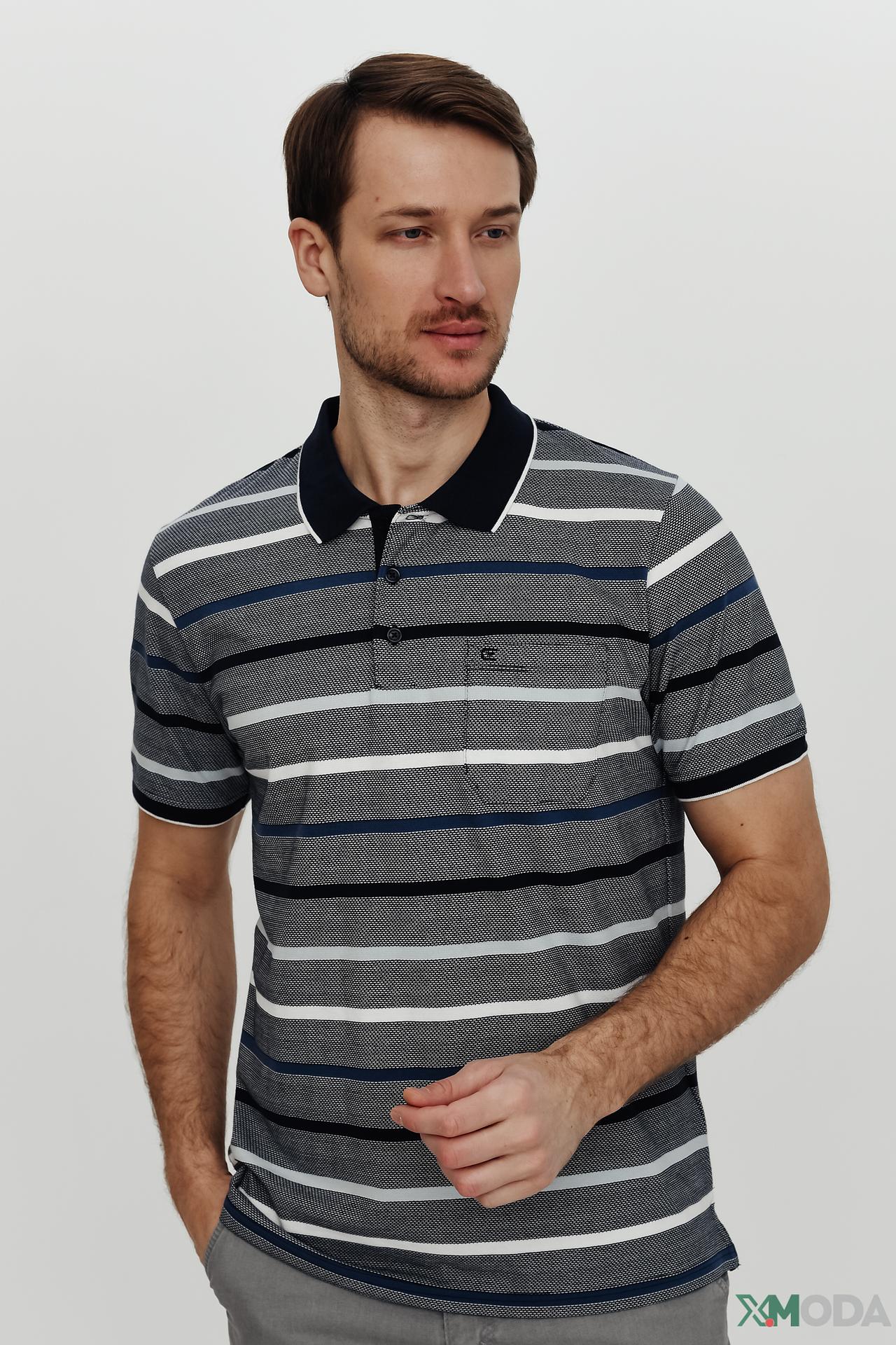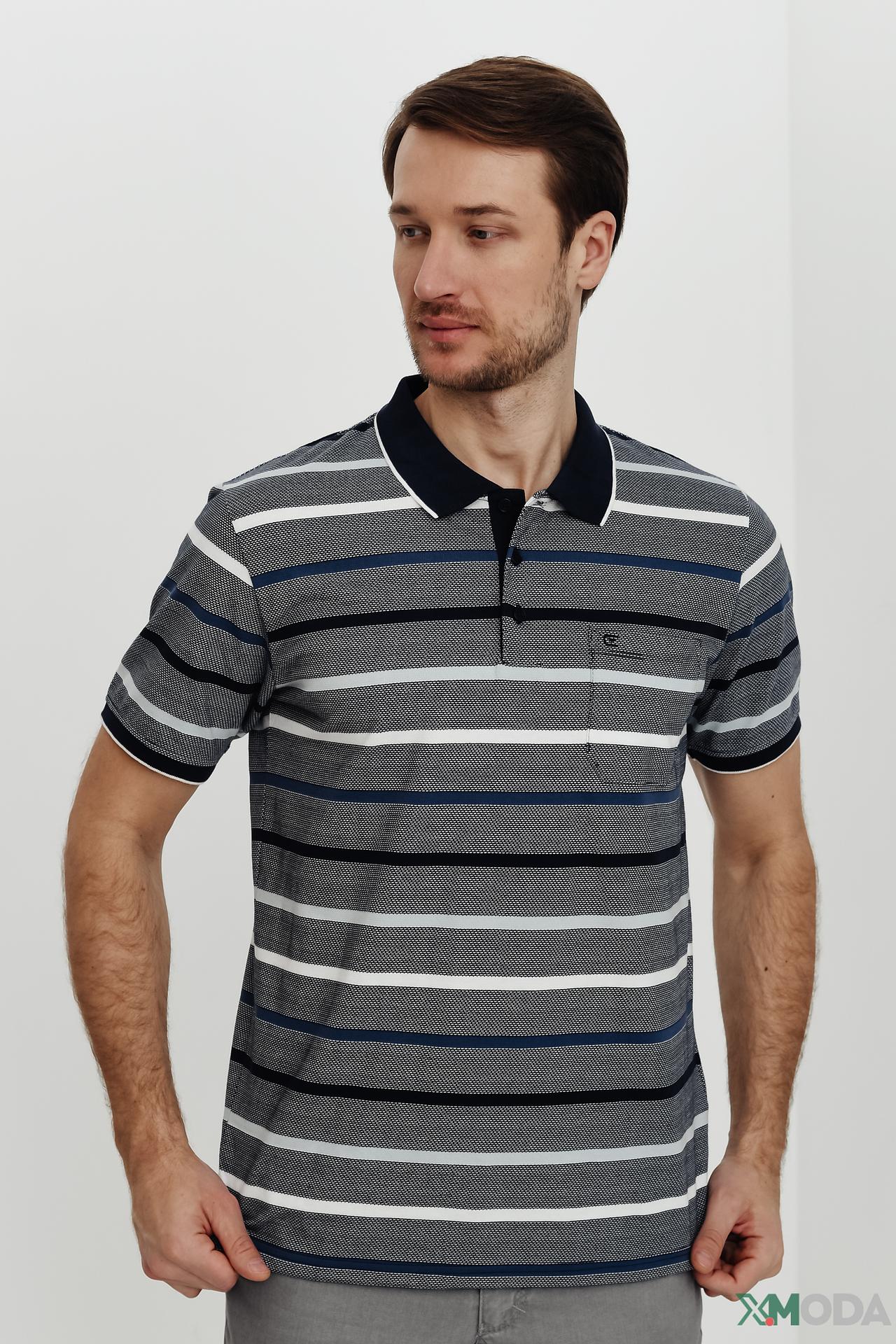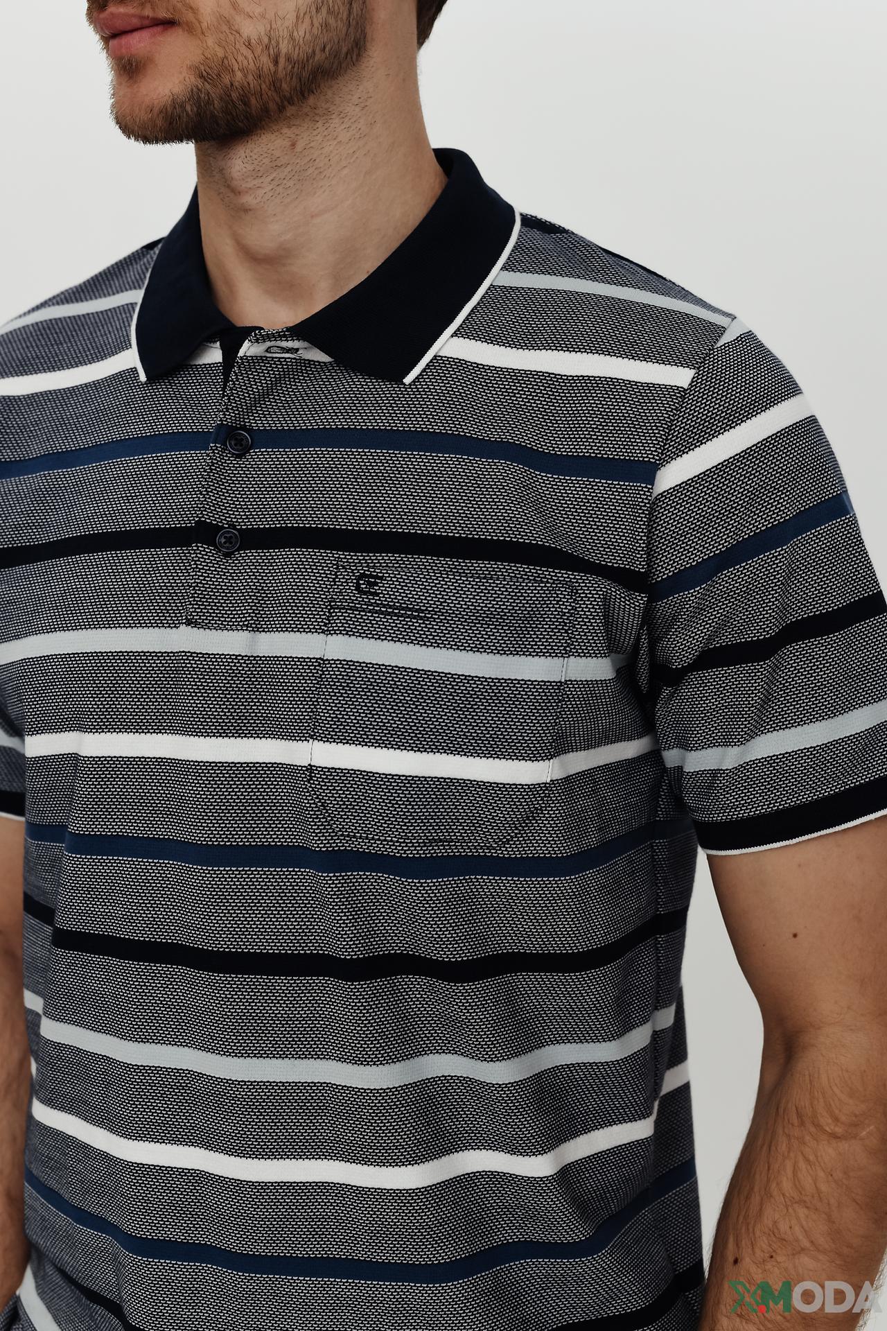 Поло Casa Moda серое в полоску с карманом и вышивкой
