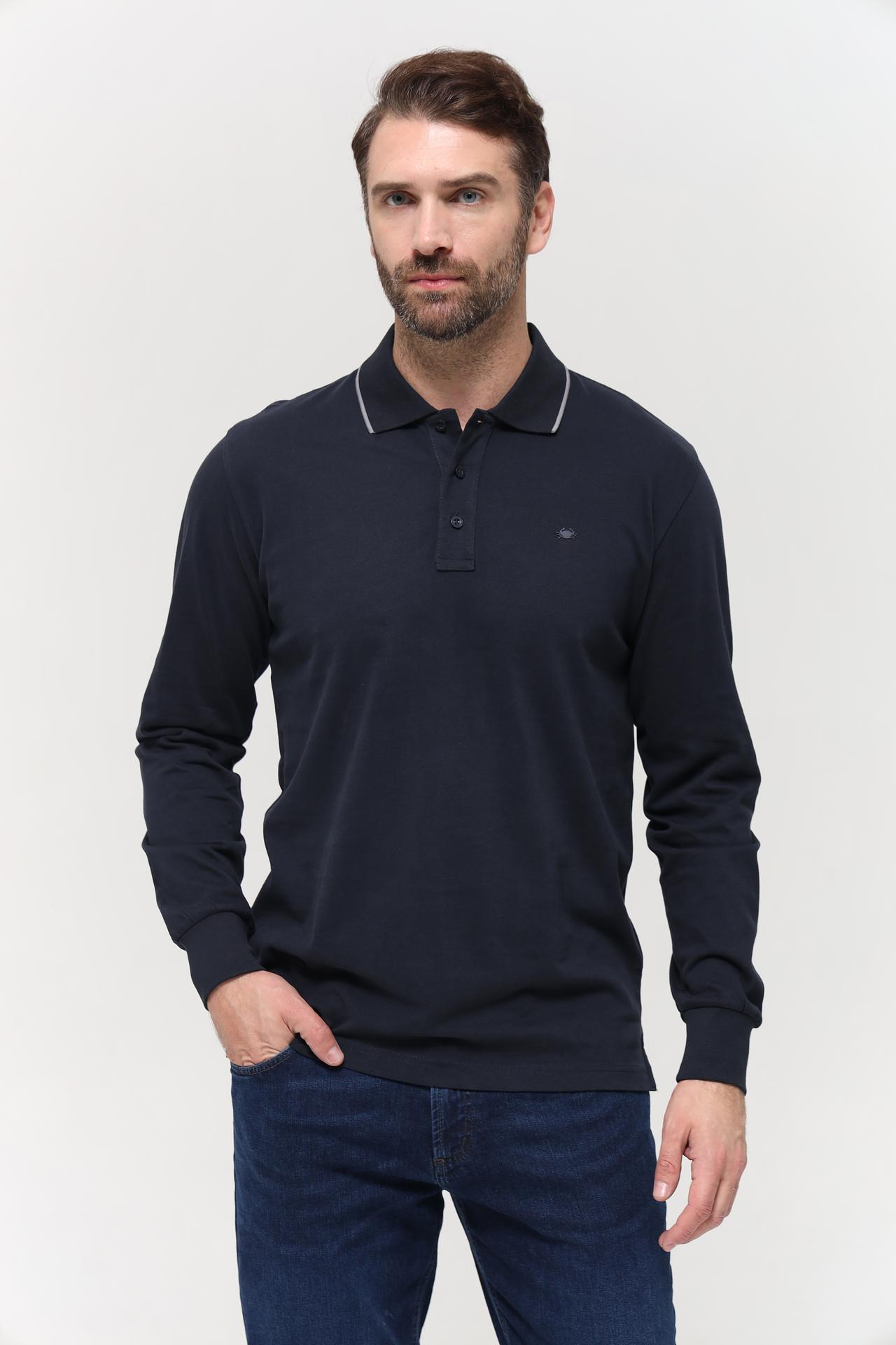 Классический крой и элегантный темно-синий цвет с контрастной отделкой воротника придают этой модели изысканный вид. Лонгслив поло станет отличным дополнением к вашему гардеробу и подчеркнет ваш безупречный вкус. Не упустите возможность купить мужское поло высокого качества!