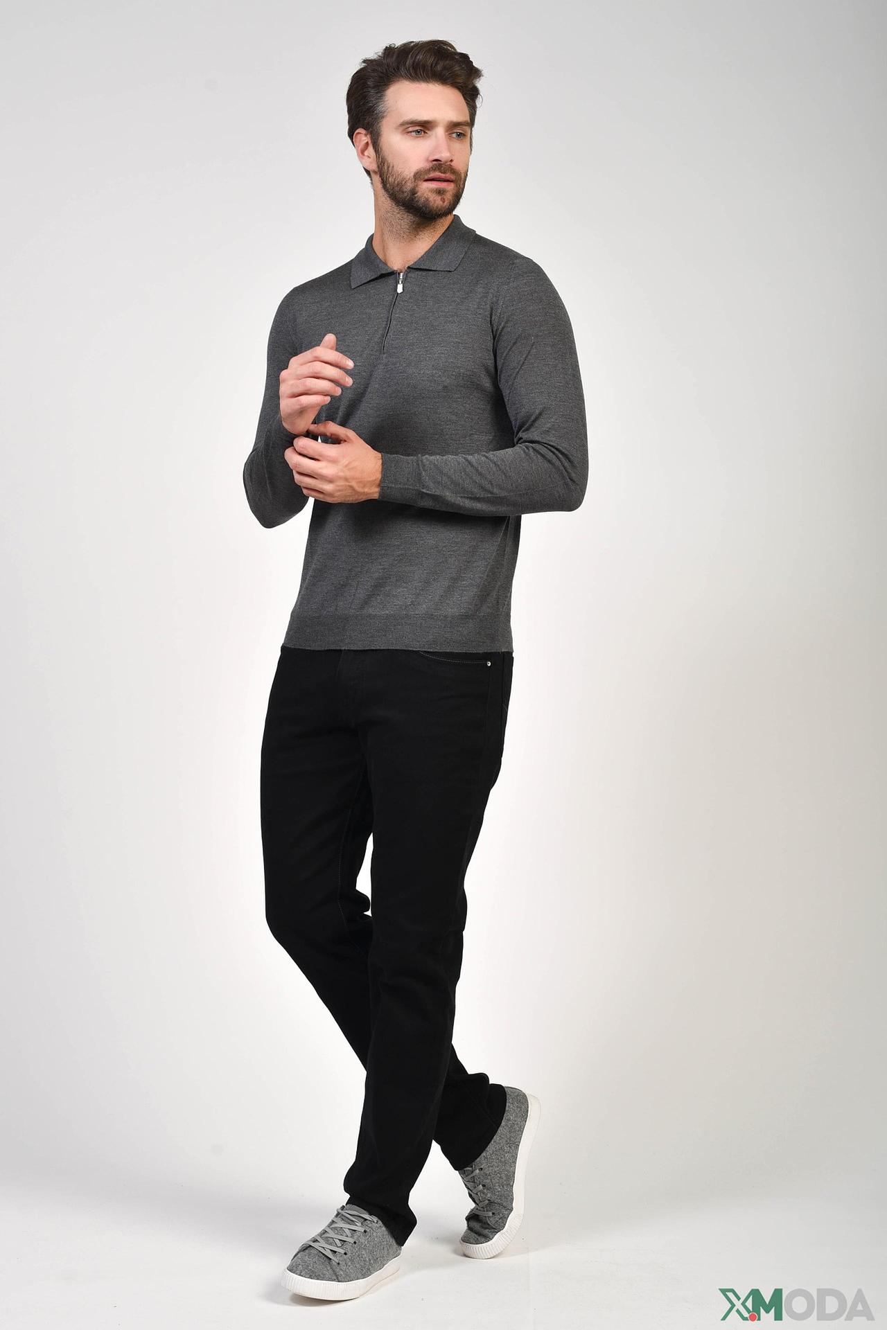 - Дизайн: Классический крой поло с длинным рукавом и воротником-стойкой. Современная деталь – молния на воротнике – придает образу динамичность.