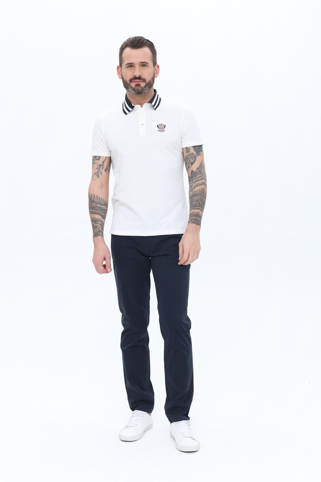 Модель дополнена контрастной синей полоской на воротнике, что придает ей оригинальности и спортивного шика. На груди расположены вышитый логотип Alcott, подчеркивающий качество и принадлежность к бренду.