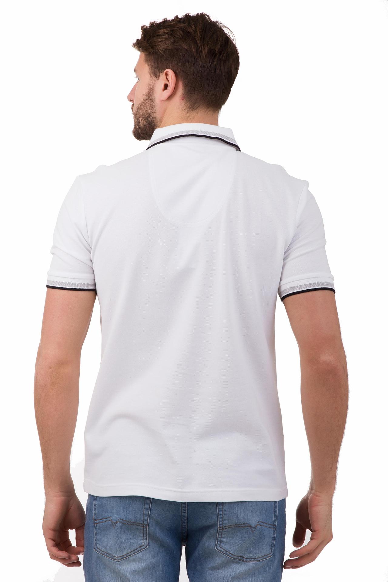 Это мужское поло от Just Valery пригодится практически каждому, ведь белый цвет идеально подходит практически под всё. Поло средней длины, имеет V-образный вырез, который застёгивается на пуговицы. Воротник изделия и рукава дополнительно украшены тонкими полосками разных цветов – белого, серого и чёрного. Также сбоку есть фирменная нашивка. Состав – 100% хлопок.