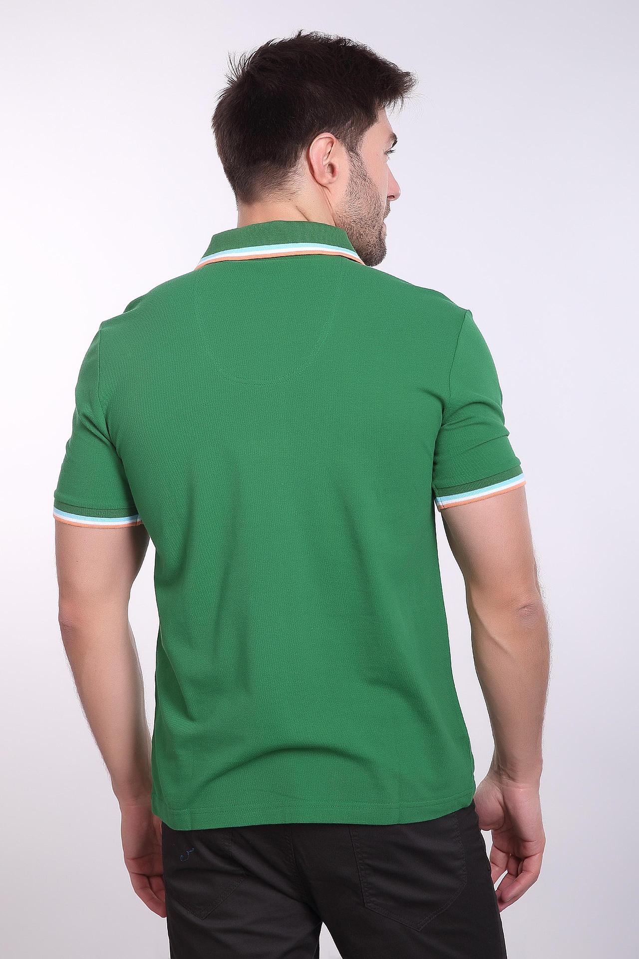 Зелёный цвет ассоциируется с летом и тёплой погодой. Зелёное мужское поло от Just Valery как раз идеально подойдёт для тёплых, летних дней. Поло средней длины, имеет V-образный вырез, который застёгивается на пуговицы. Воротник изделия и рукава дополнительно украшены тонкими полосками разных цветов – белого, голубого и оранжевого. Состав – 100% хлопок.