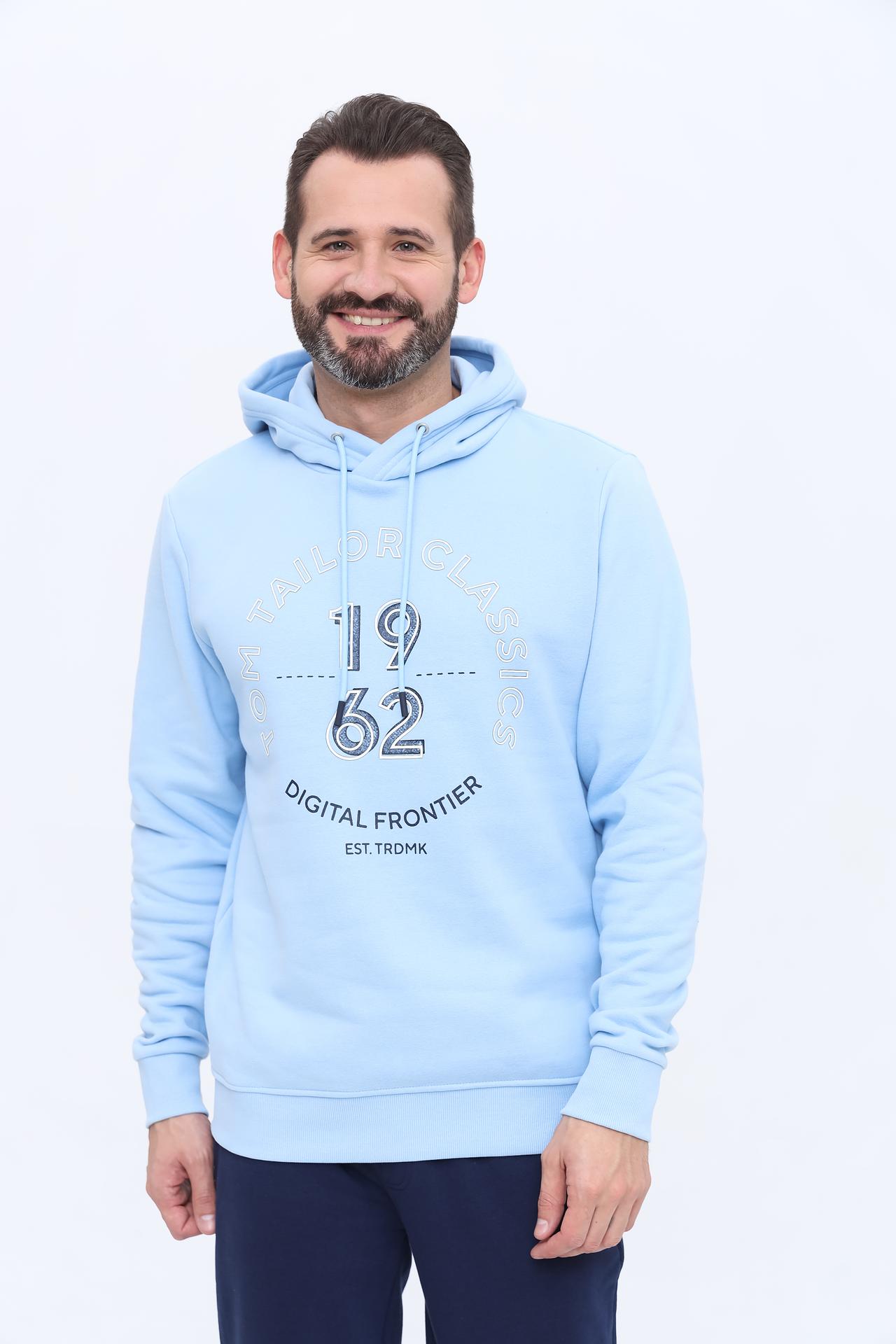 - Стильный дизайн: Голубая расцветка в сочетании с контрастным графическим принтом на груди "TOM TAILOR CLASSICS 1962" придает толстовке актуальный и модный вид, легко комбинируемый с джинсами или спортивными брюками.