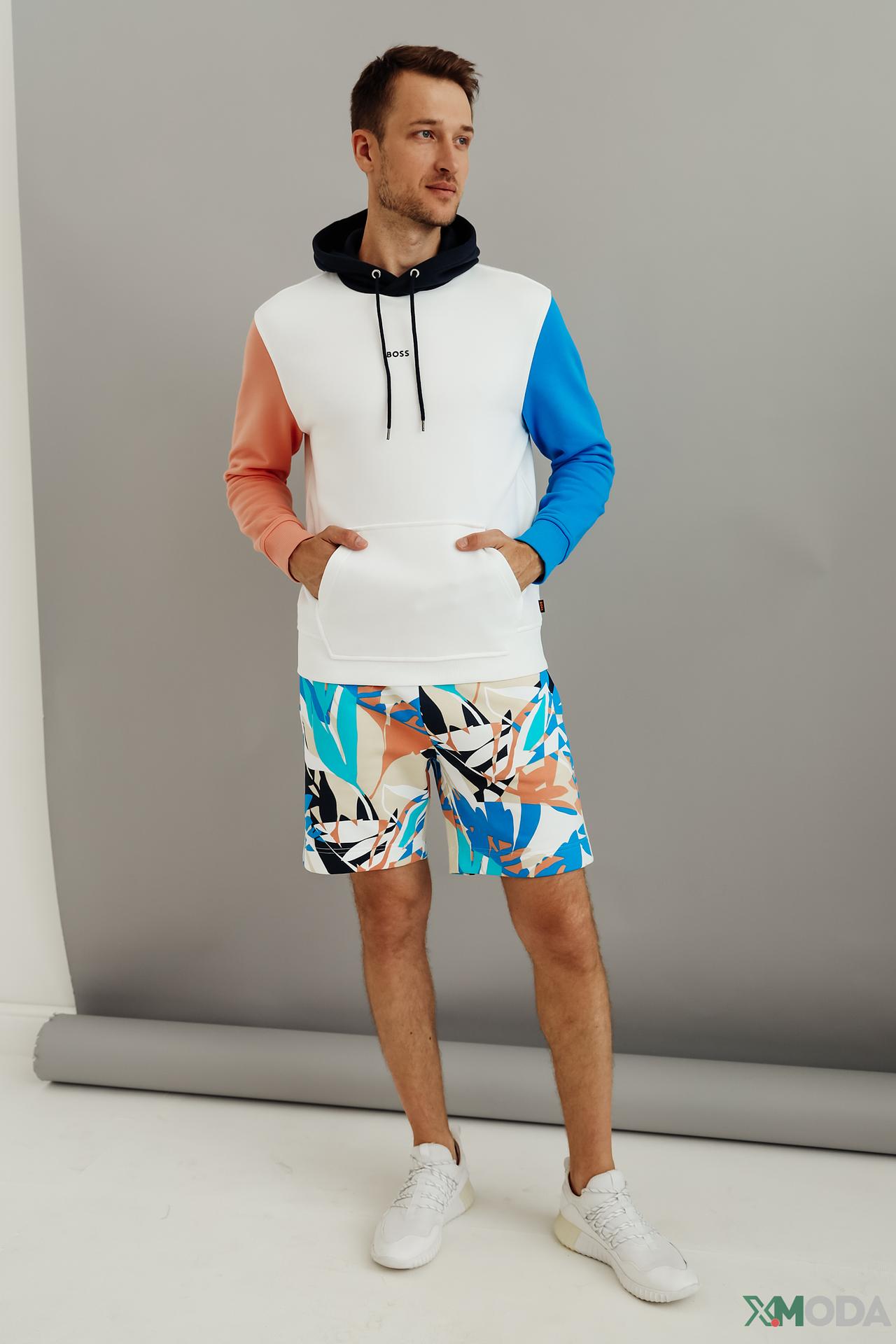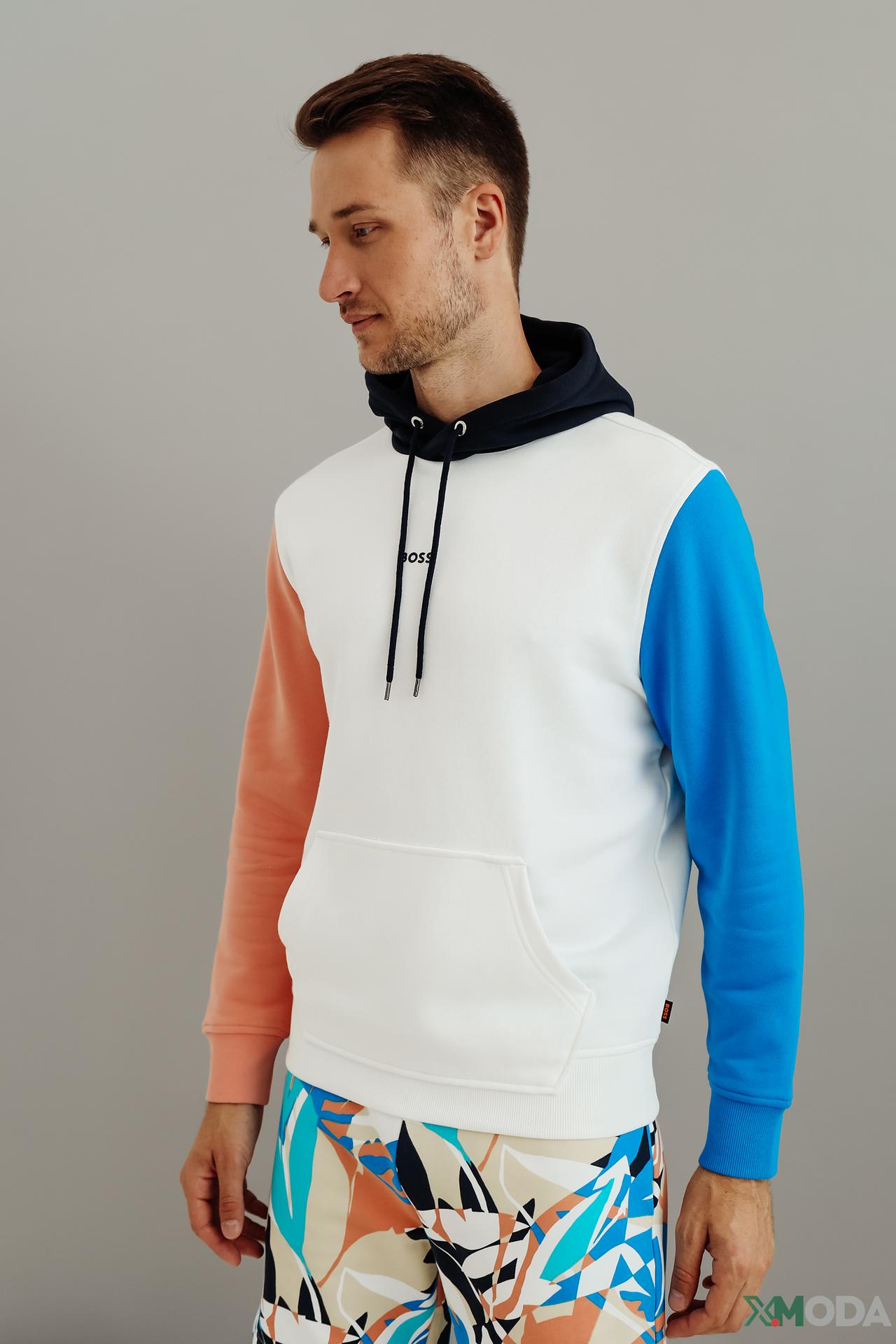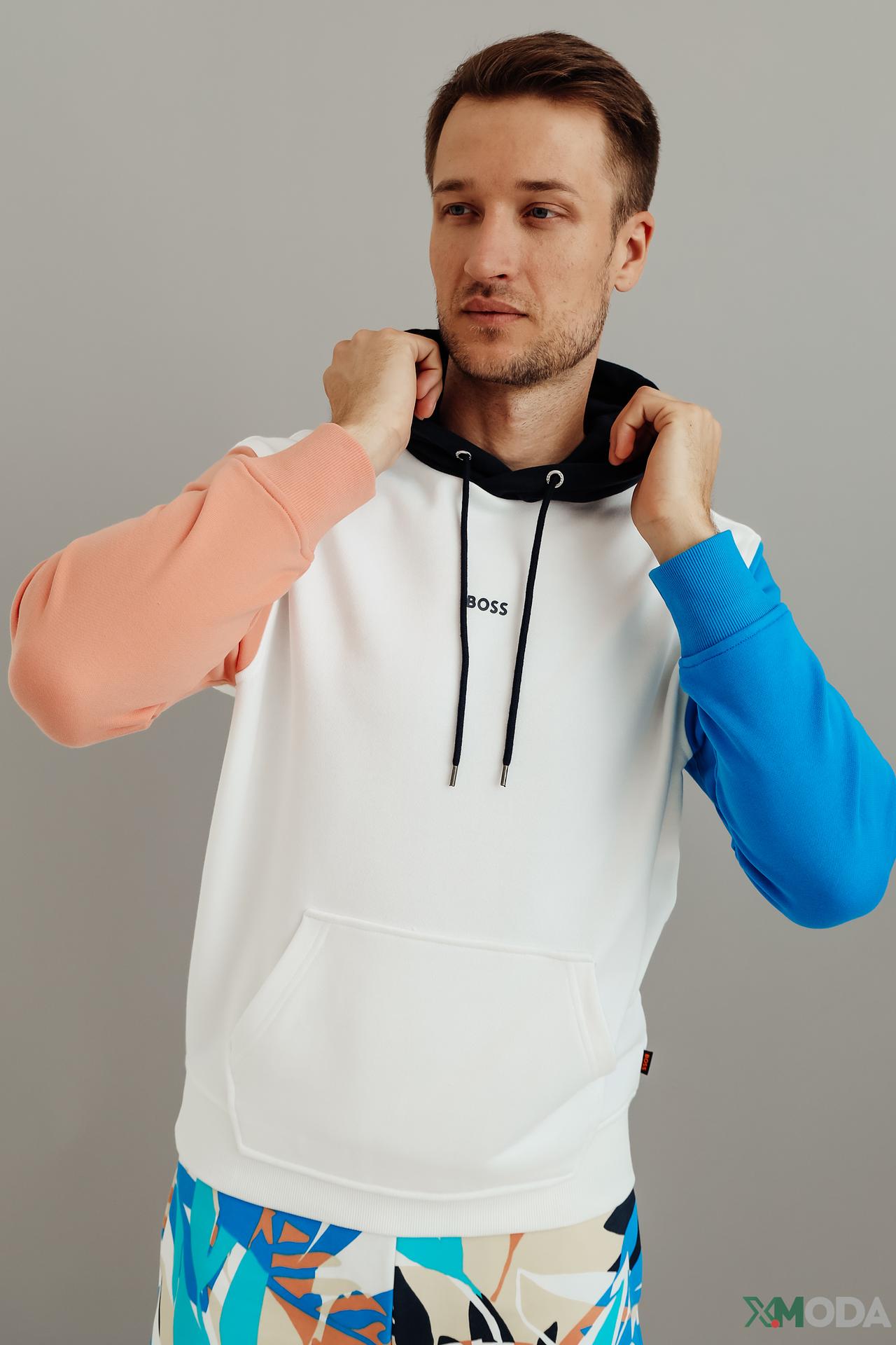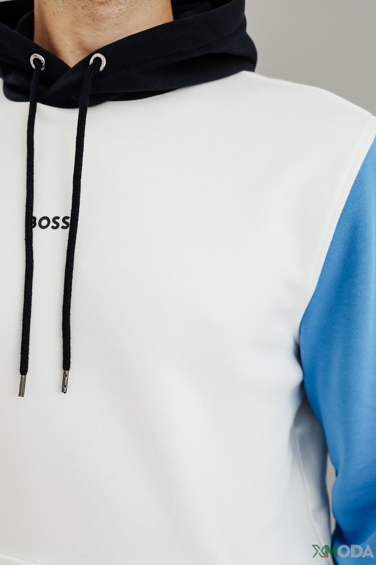 Белая толстовка Boss Casual с цветными блоками и логотипом