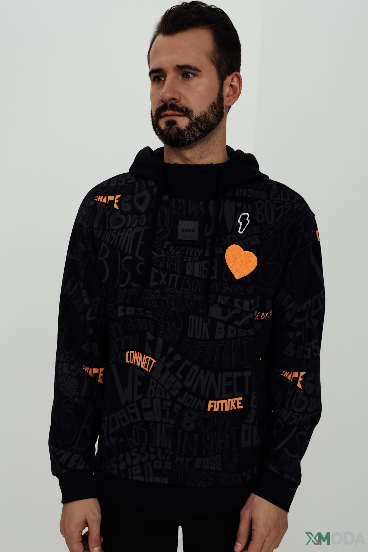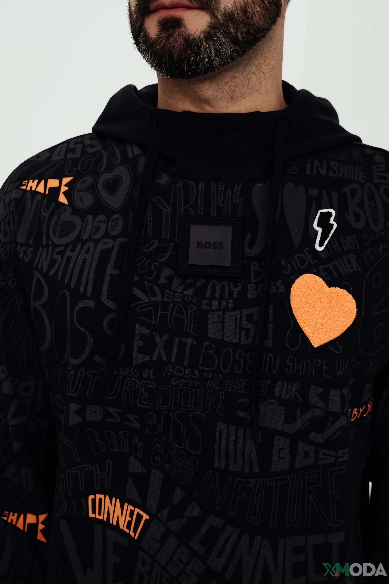 Мужская толстовка Boss Green – стильный и комфортный выбор для повседневной жизни. Модель выполнена из 100% хлопка, что обеспечивает мягкость и приятные тактильные ощущения. Оригинальный дизайн с графическим принтом и аппликациями добавляет неповторимый характер образу.