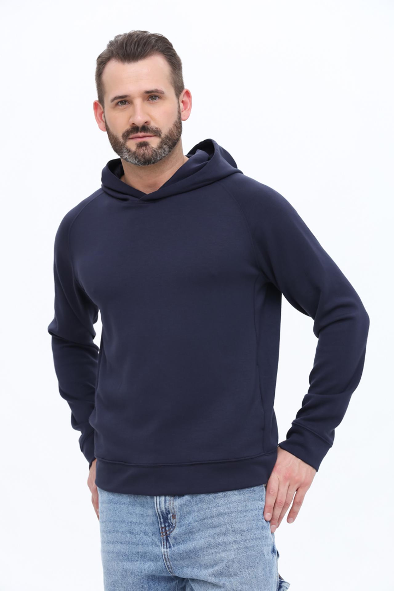 Эта толстовка идеально подходит для создания непринужденных образов как для дома, так и для прогулок. Мягкая ткань и удобный капюшон обеспечивают максимальный уют, а классический темно-синий цвет легко вписывается в любой стиль.